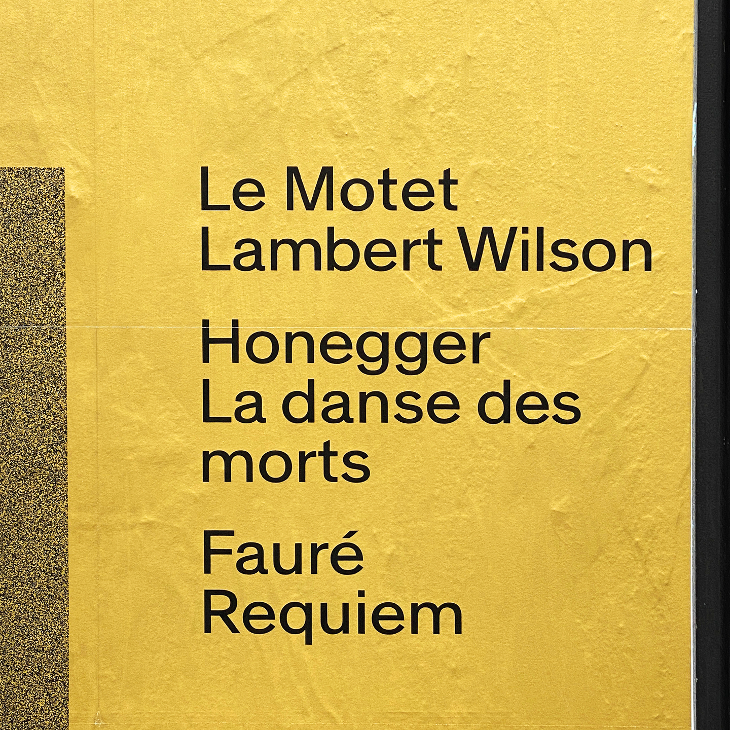 Le Motet / Lambert Wilson poster Contributed by newglyph on Nov 21st, 2022. Artwork published in November 2022. Chris Gautschi. License: All Rights Reserved. Swiss designer Chris Gautschi is continuing his poster series for classical music choir Le Motet, using Crystal from newglyph. Chris Gautschi. License: All Rights Reserved. Typefaces More about Crystal (Newglyph)Get Crystal (Newglyph) Formats Posters/Flyers (5644) Topics Music (6215) Designers/Agencies Chris Gautschi (17) Tagged withgold (376)gold and black (61)Swiss International Style (73)screen printed (336)one typeface (1741)geometric (124)metallic paper or ink (218)choirs/vocal ensembles (22)Le Motet (2) Artwork location Switzerland (1099) Genève (87) Post a comment Name Email – will not be published Website Your response Submit Comment More Crystal (Newglyph) in use Le Motet – Brahms & Mendelsohn: Lieder pour chœur et piano posterc. 2022Chris GautschiContributed by newglyph Staff Pick Marylia Scott Cosmetics2024Marylia ScottContributed by NaN Aude De Nexon exhibition catalogc. 2022Chris GautschiContributed by newglyph Sponsor More in Music “So Damn Funky” – Mosey x Bonita2018Sweet StudioContributed by mikel antonio Homowo – Basa Basac. 2018Edgar WalthertSusan E. St. GeorgeContributed by Edgar Walthert Poomclap brandingc. 2017Studio OUAMContributed by Connary Fagen Discwoman gig poster2018Sindre AnnweilerContributed by Quentin Schmerber More in Posters/Flyers Asinine – La jetée animated posters2025Simon ConusContributed by Alexandre Créquer Thriller (1974) Italian movie posters1974unknownContributed by Florian Hardwig Future Perfect Tense2018Chase BodyContributed by Chase Body Sam Fox Fall 2017 calendarc. 2017Sang-Jin LeeContributed by Sang-Jin Lee More Fonts In Use Antike und Ägypten, Alten Museum2007Ott+SteinPhoto(s) by Stephen Coles on Flickr. Staff Pick The Anderson Tapes title sequence1971F. Hillsberg, Inc.Frank HillsbergContributed by Patrick Concannon Staff Pick This Little World2015Chil3Becky Chilcott (AUS)Contributed by Ramiro Espinoza Staff Pick Career Expo2015John ProvencherContributed by John Provencher Staff Pick