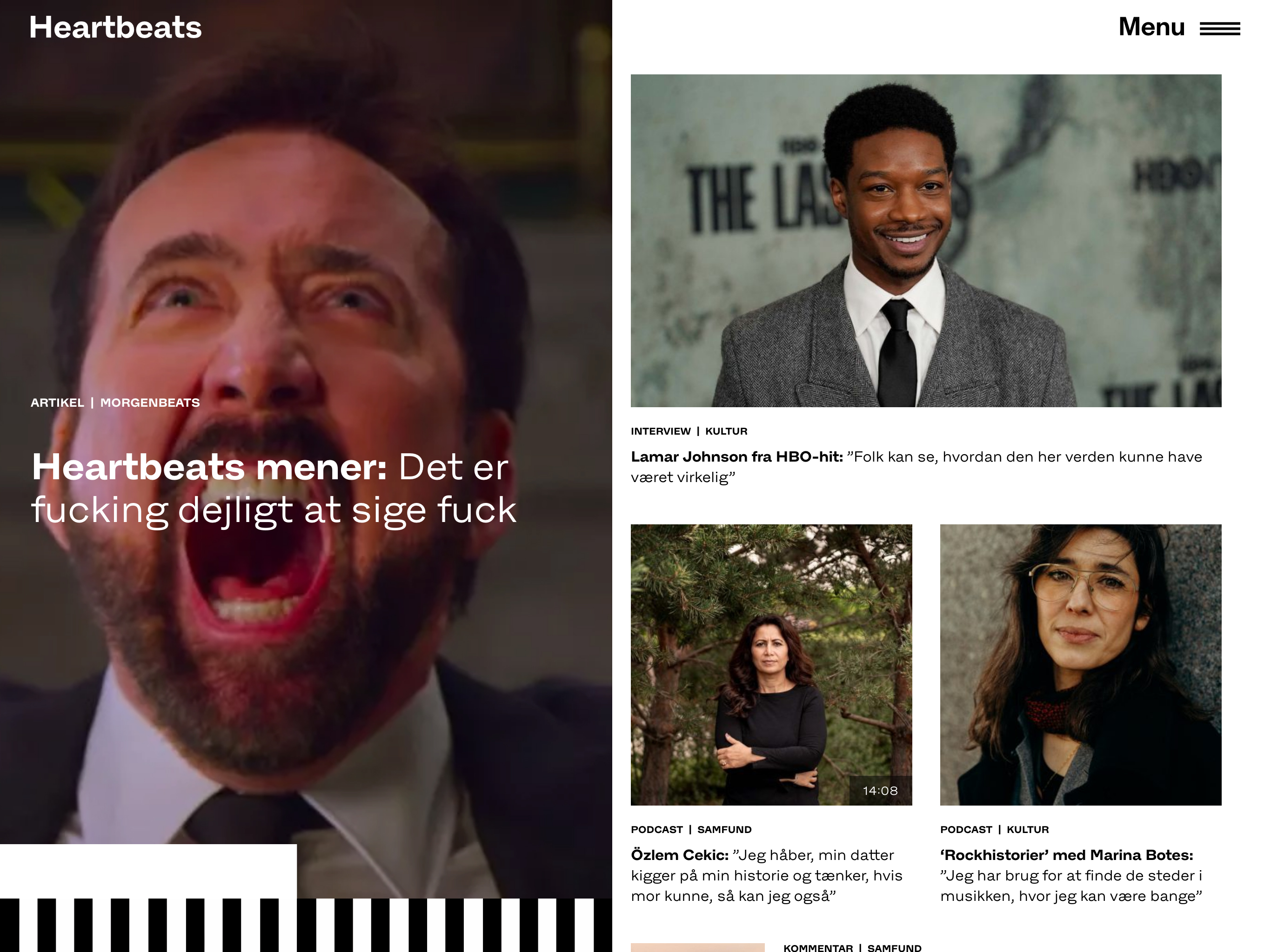 Going from being a radio station towards being an online culture site and content agency, Heartbeats needed a new brand identity. e-Types created a new visual identity and a digital design concept for the media based company. The main goal was to secure a recognizable and strong identity across all platforms going from physical products towards online platforms such as presence in iTunes, web and SoMe.