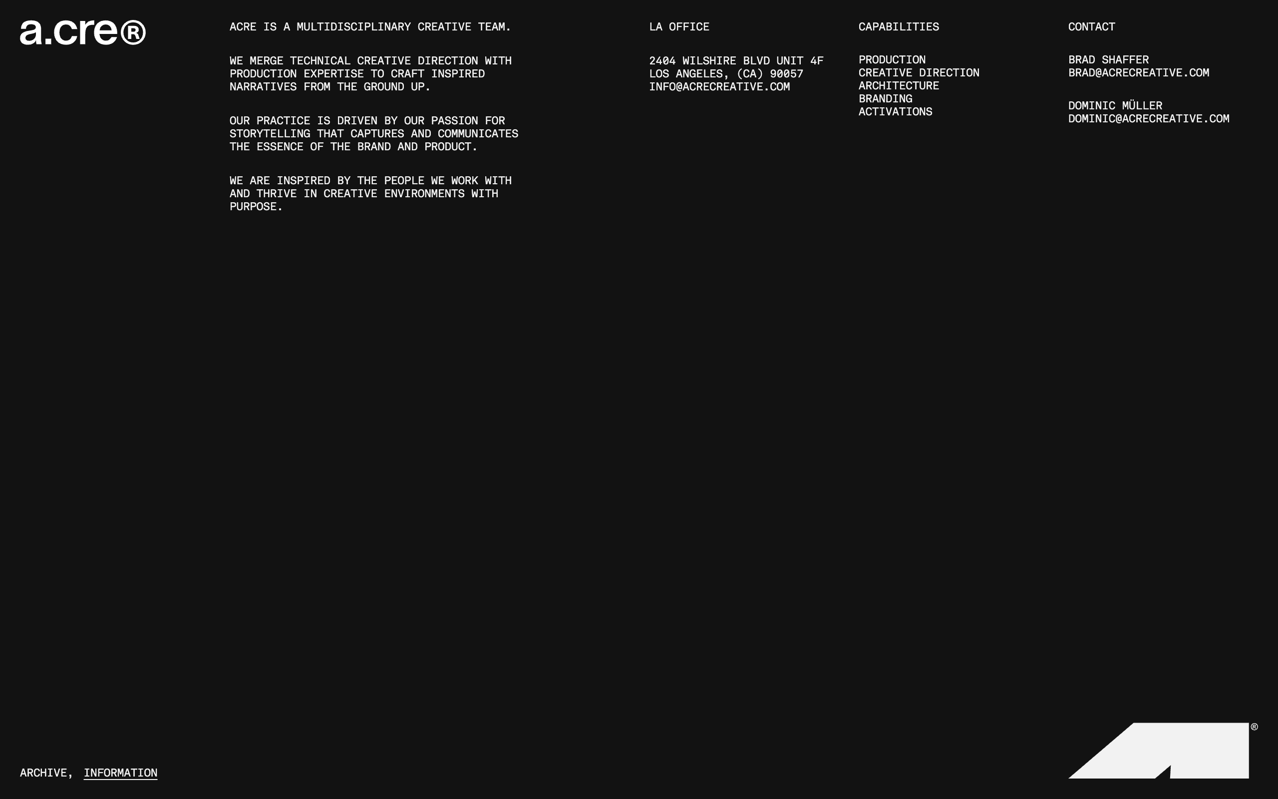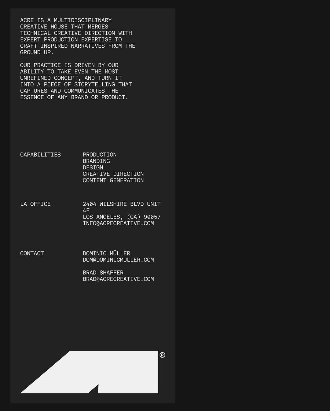 Acre is a multidisciplinary creative house that merges technical creative direction with production expertise to craft inspired narratives from the ground up. From Mouthwash Studio: