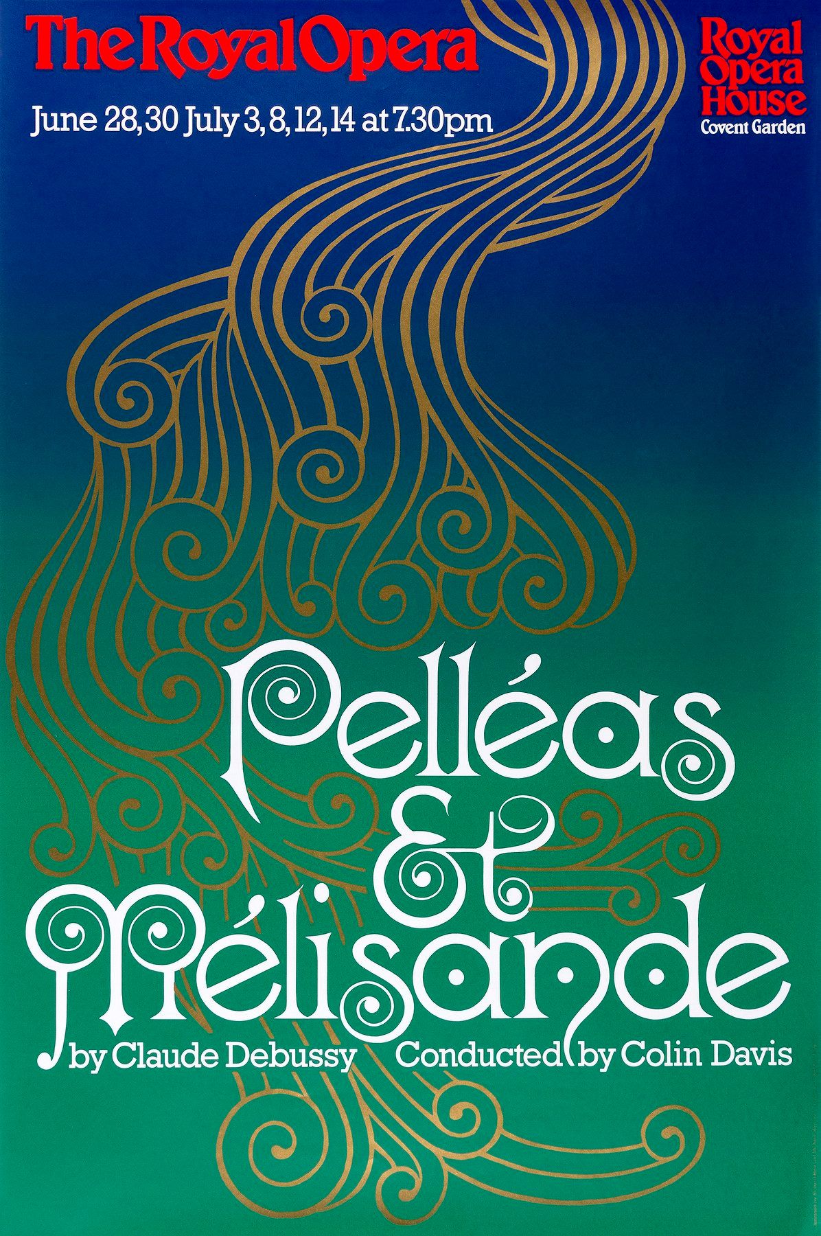 John F. Cumming’s 1879 design for the Boston Type Foundry foundry can here be seen in use on the poster for Claude Debussy’s opera Pelléas et Melisande, performed at the Royal Opera House, Covent Garden, in 1978. Richard Bird and Michael Mayhew combined it with golden scrolls that resemble flowing hair or water, echoing its spiraling forms. The central “et” is neither the ampersand glyph as included in the typeface, nor a combination of E and t: it rather is a custom ligature consisting of the left part of Kismet’s & and a t, with the ampersand’s swash transplanted to the right of the latter.