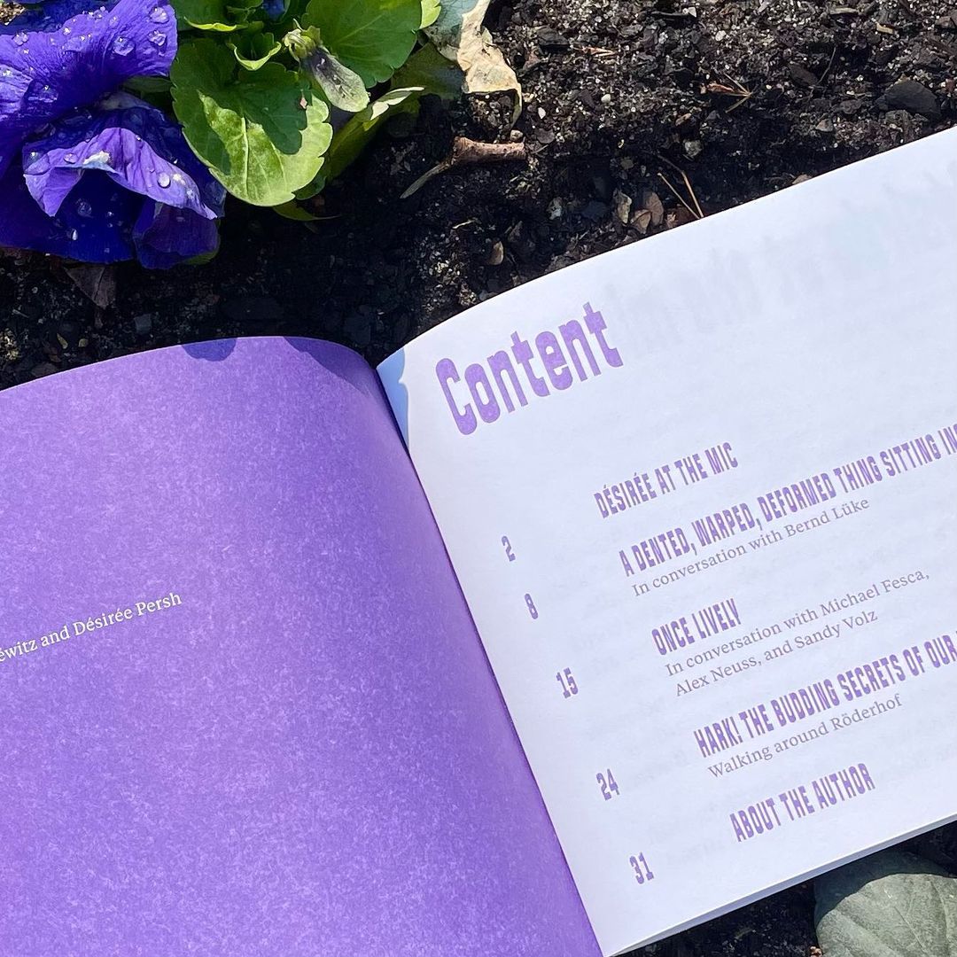 In 2022, the project materialized in a zine/book published by Edition Error. Sibel Beyer provided the graphic design. The publication includes drawings by Michael Fesca and photographs by Sandy Volz. It has 36 pages and was printed in a single color.