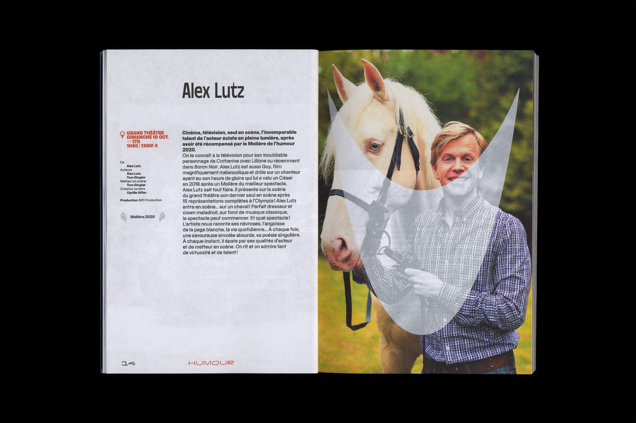 PVC Banner is an ultrawide sans that serves for the institution’s logotype. Together with PVC Promo and PVC Menu, it layed the foundation of the PVC family, a heterogeneous type series continually created by Hélène Marian. PVC Menu is her personal take on typical French brush lettering styles. Marian intended it as the family’s go-to style: it’s the least eccentric and most versatile one. We get to see Menu again for the 2021/22 season, where it’s used for headlines and banner text. The spiky PVC Dynasty – which debuted in the 2019/20 season – takes a break.
