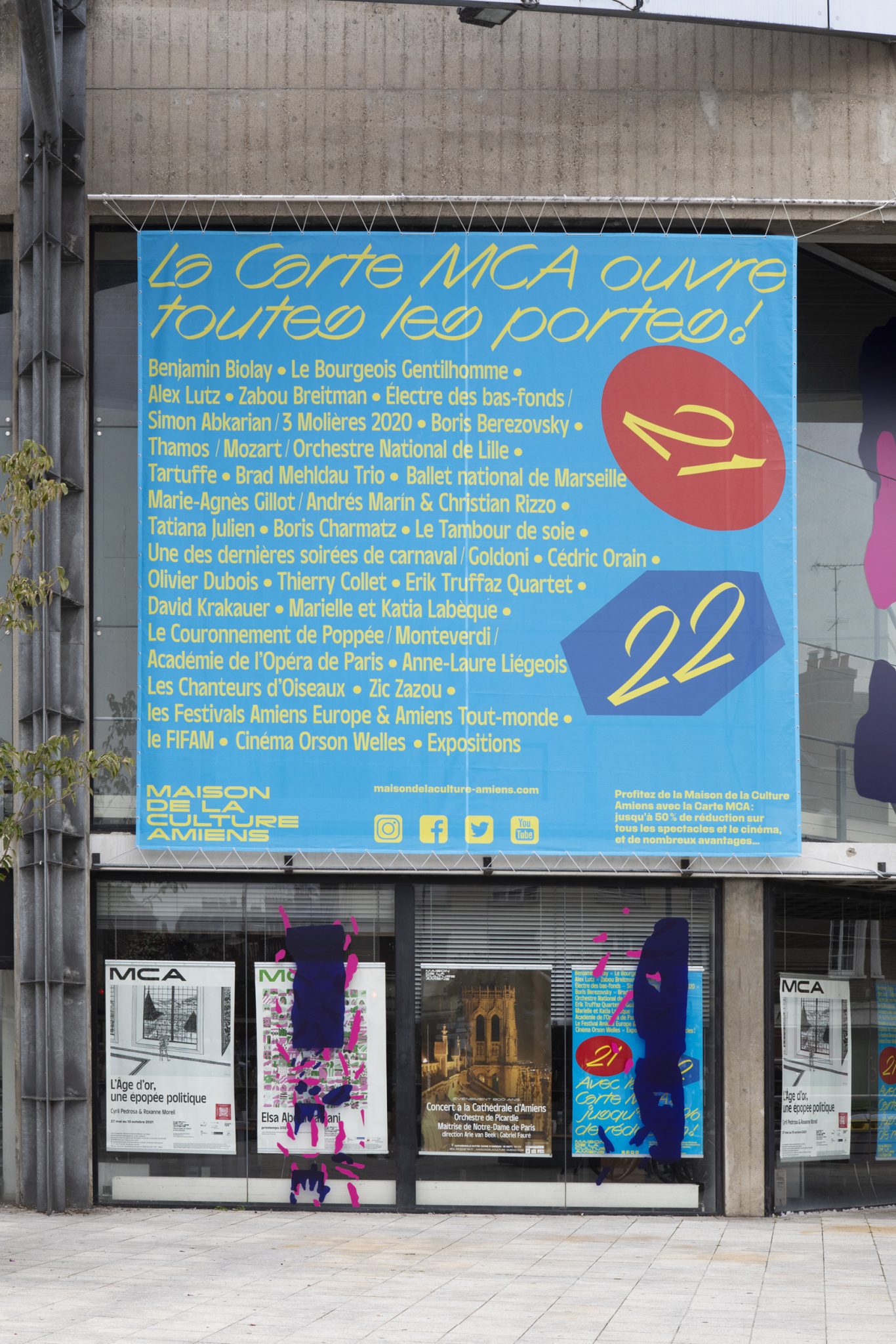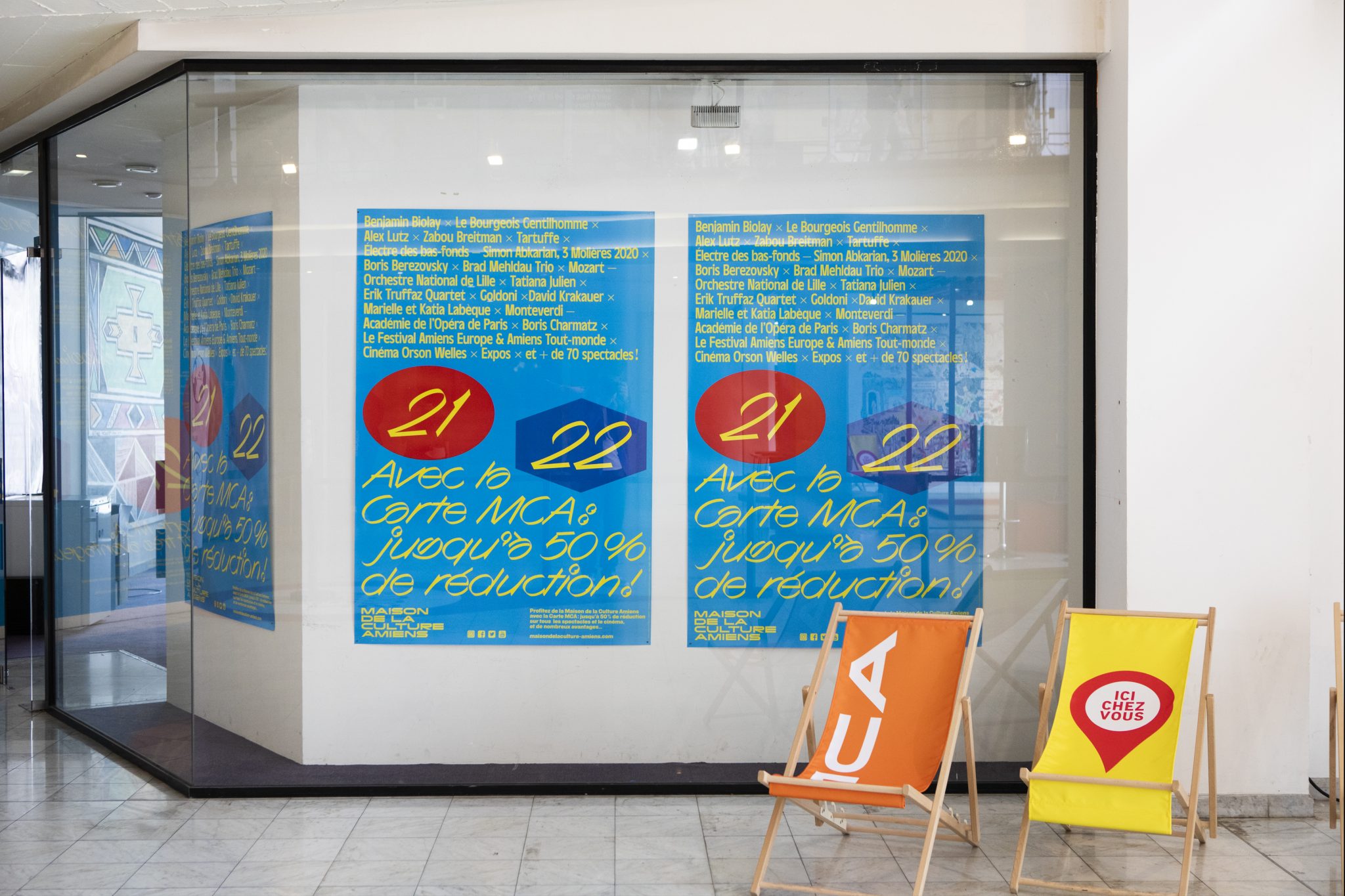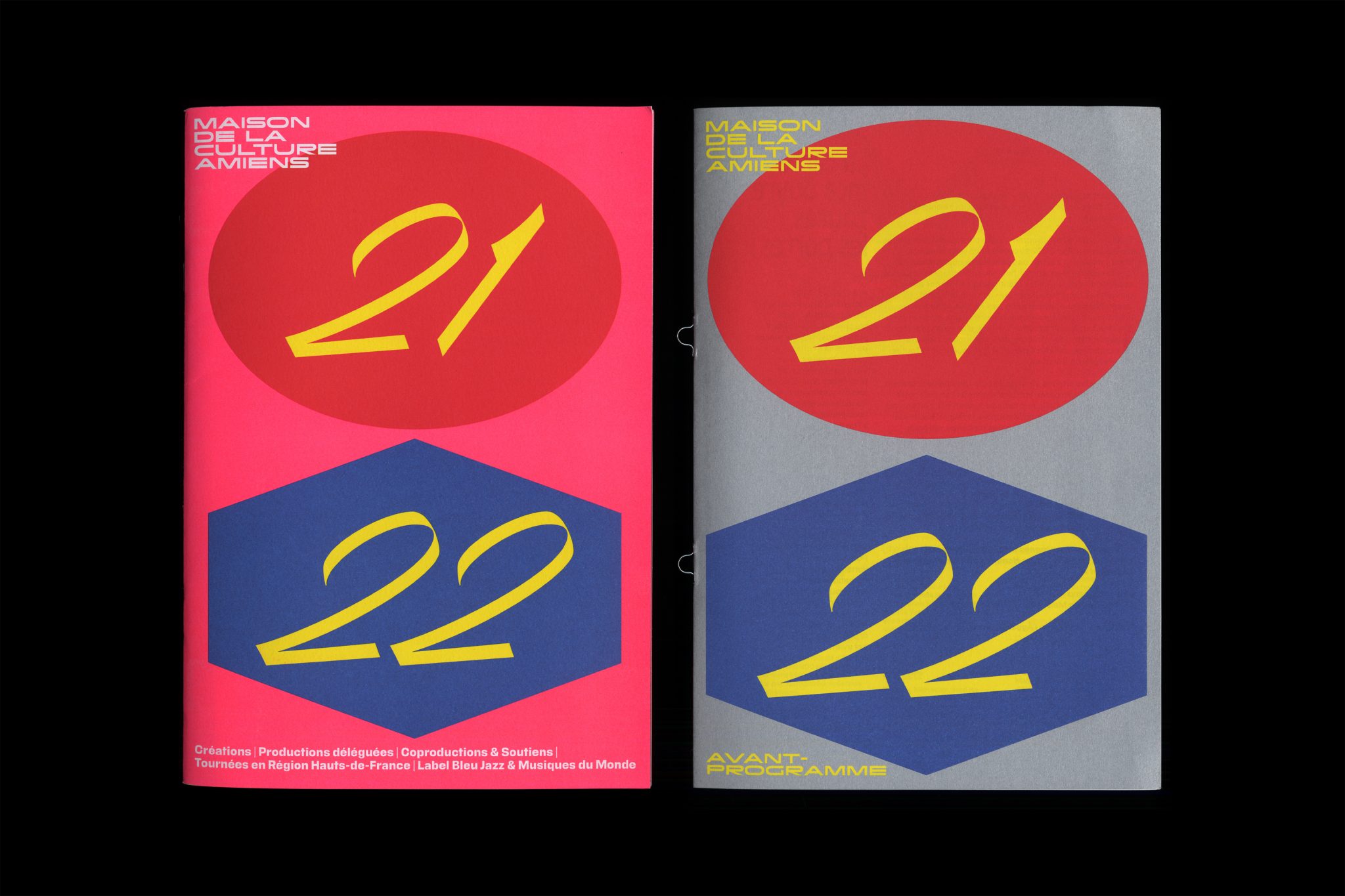 The Maison de la Culture of Amiens (MCA) is the major hub for cultural events in this northern French city. MCA’s visual identity is being created by graphic designer Julien Lelièvre in collaboration with Bureau Jigsaw and type designer Jean-Baptiste Levée from Production Type. We previously showed the new visual identity that was introduced in 2018, and the iterations of the following years. This post is concerned with some of the items designed by Lelièvre for the 2021/22 season.
