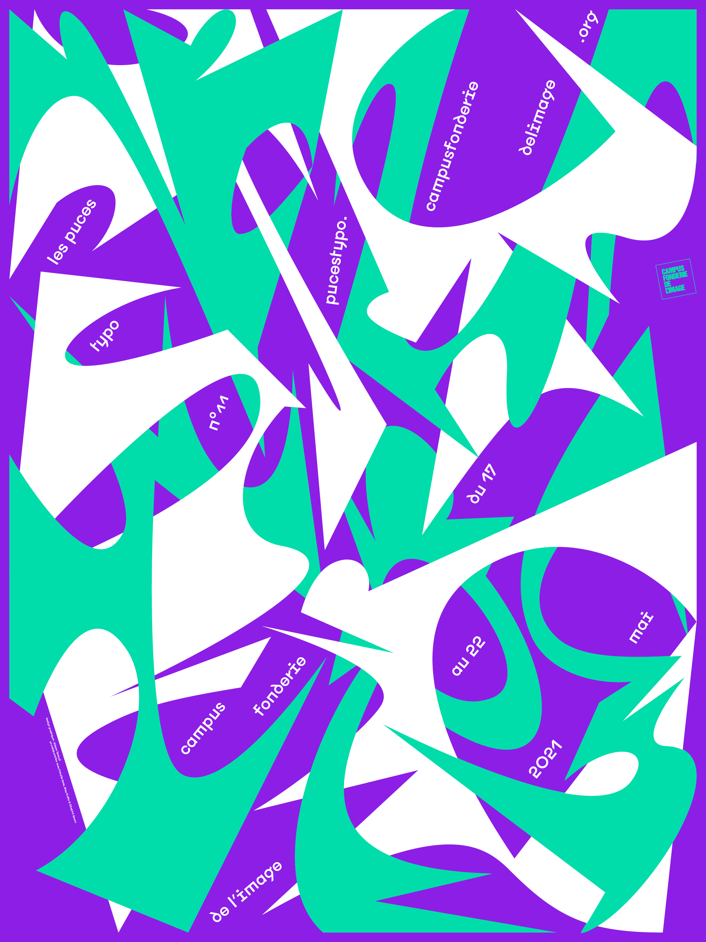 The visual identity of the typographic event Les Puces typo nº11 – held in in 2021 – was designed by Simon Renaud in collaboration with Natalie Deas, Elsa Duffo and Dimitri Senac. For the typography, Renaud used an early version of his Augure typeface.