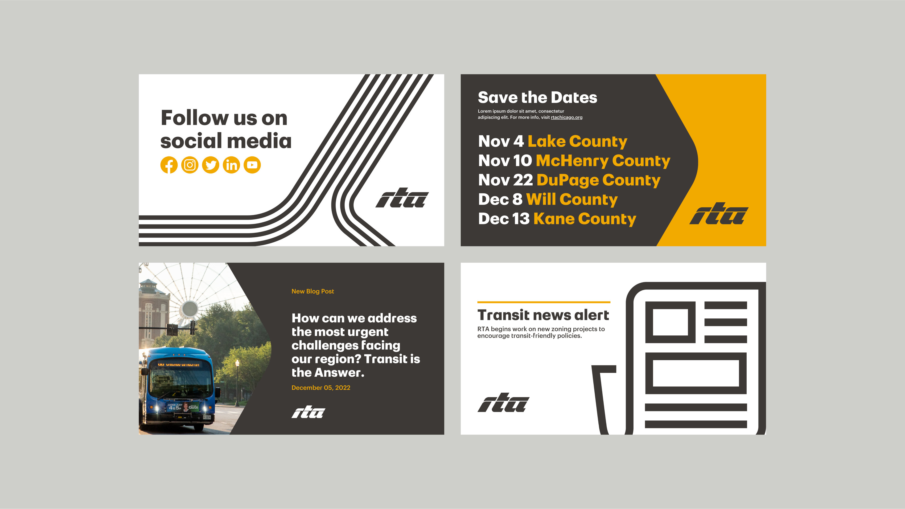 The Regional Transportation Authority is responsible for coordinating the Chicago region’s transit system, including overseeing financing and planning together with the three major transit operators: CTA, Metra, and Pace. Span was invited to refresh the brand identity for the organization in advance of announcing the RTA’s next strategic plan — a multi-year vision of how to achieve a safe, reliable, accessible public transportation that connects people to opportunity, advances equity, and combats climate change.