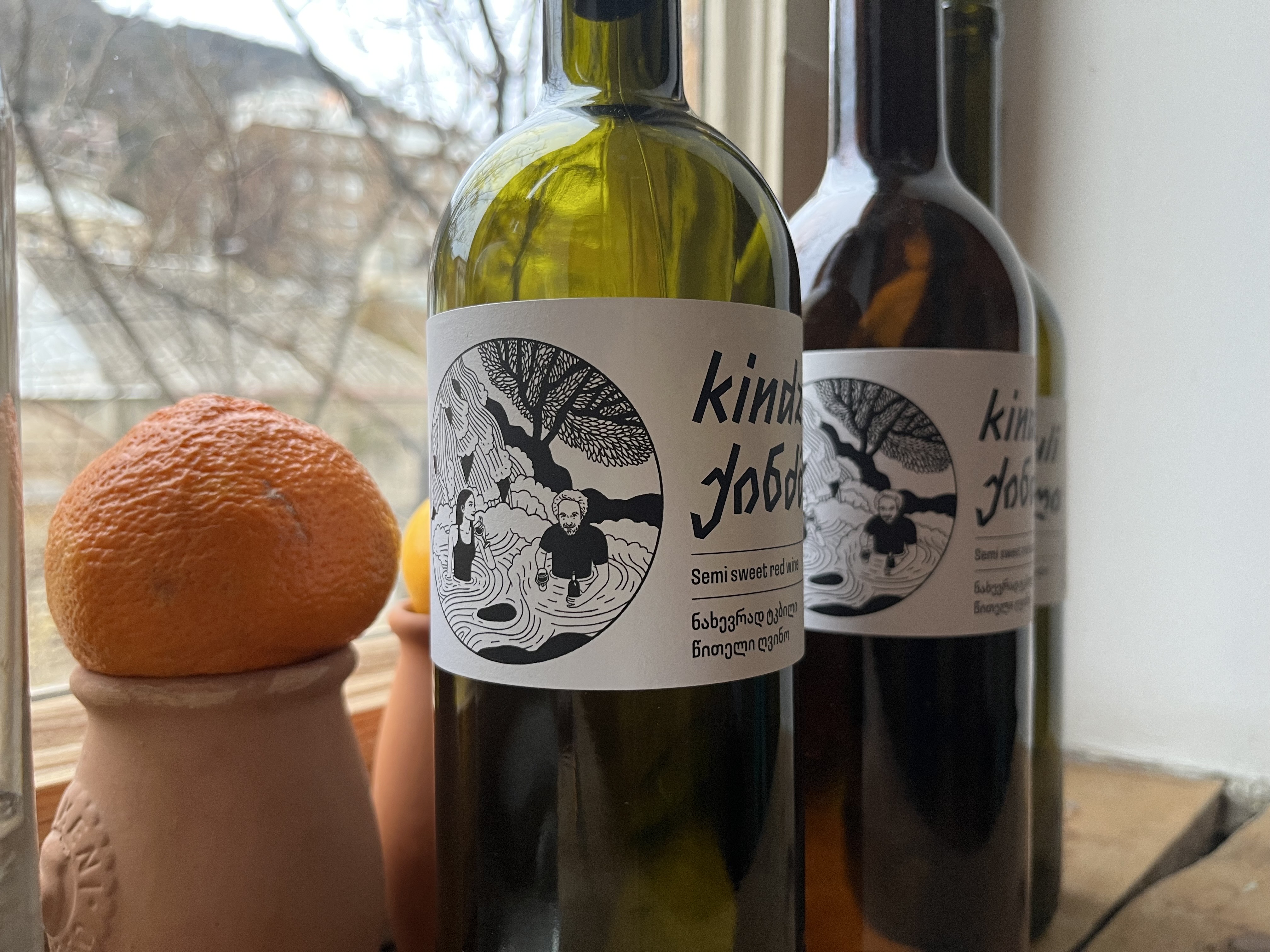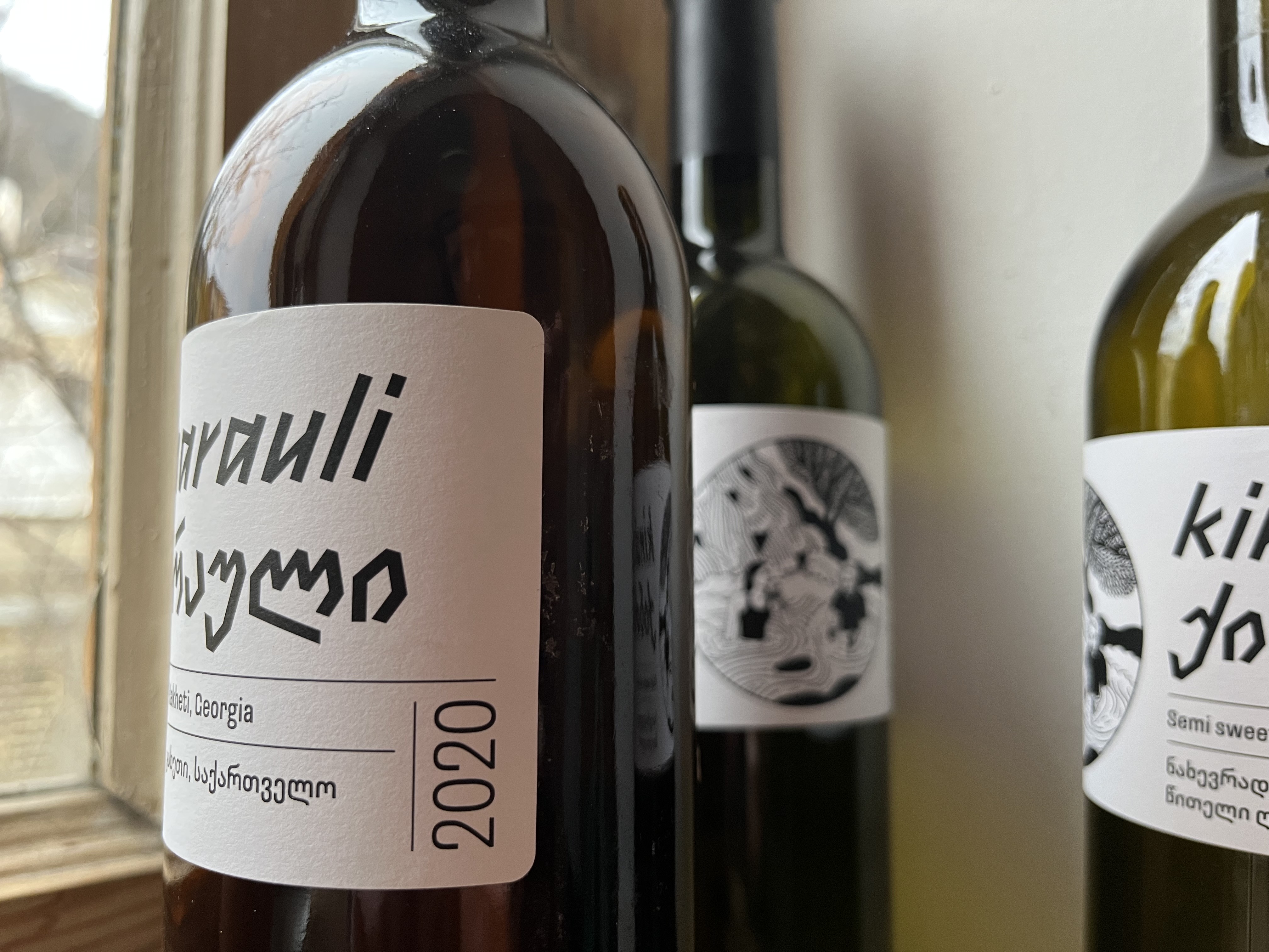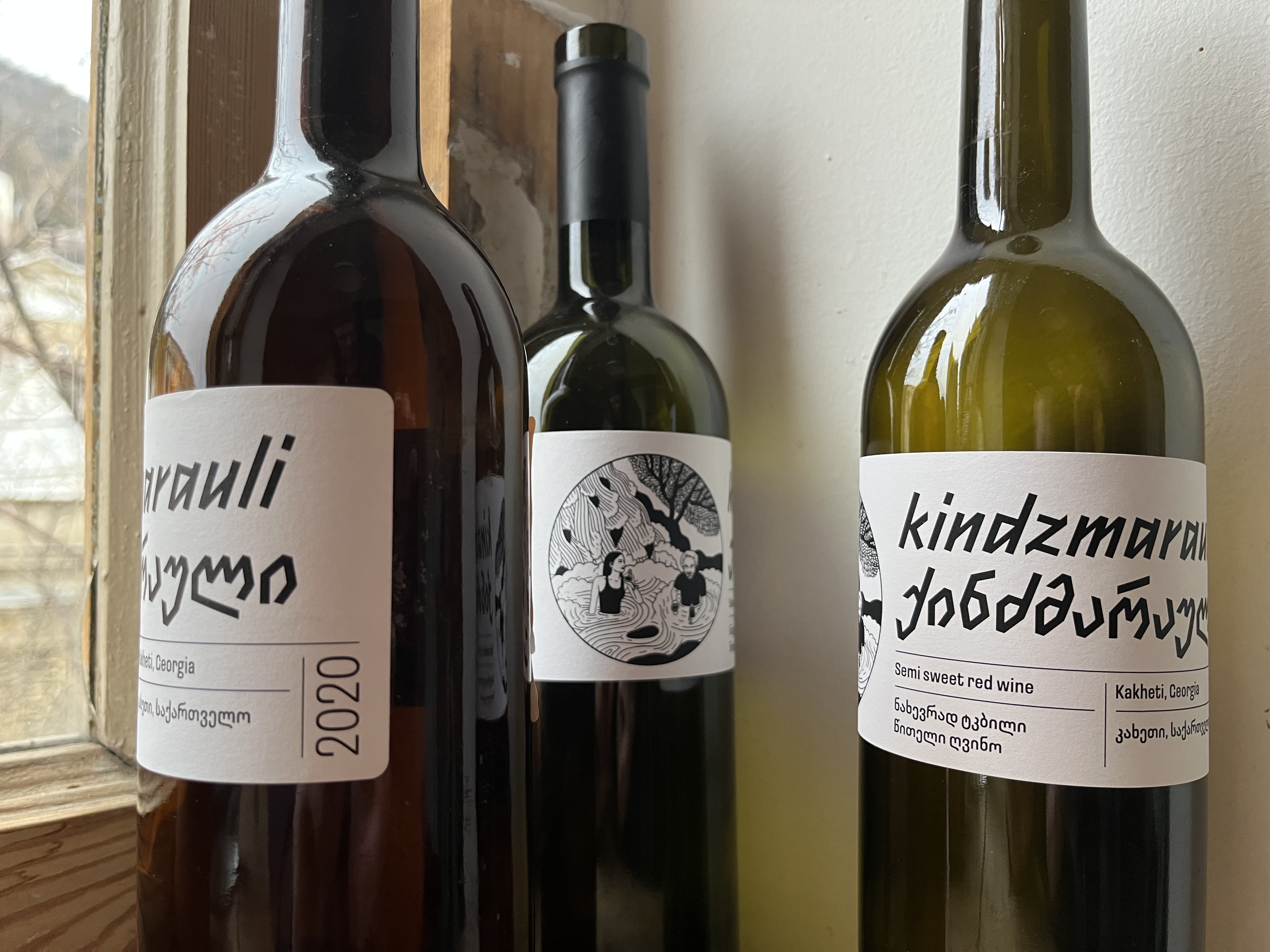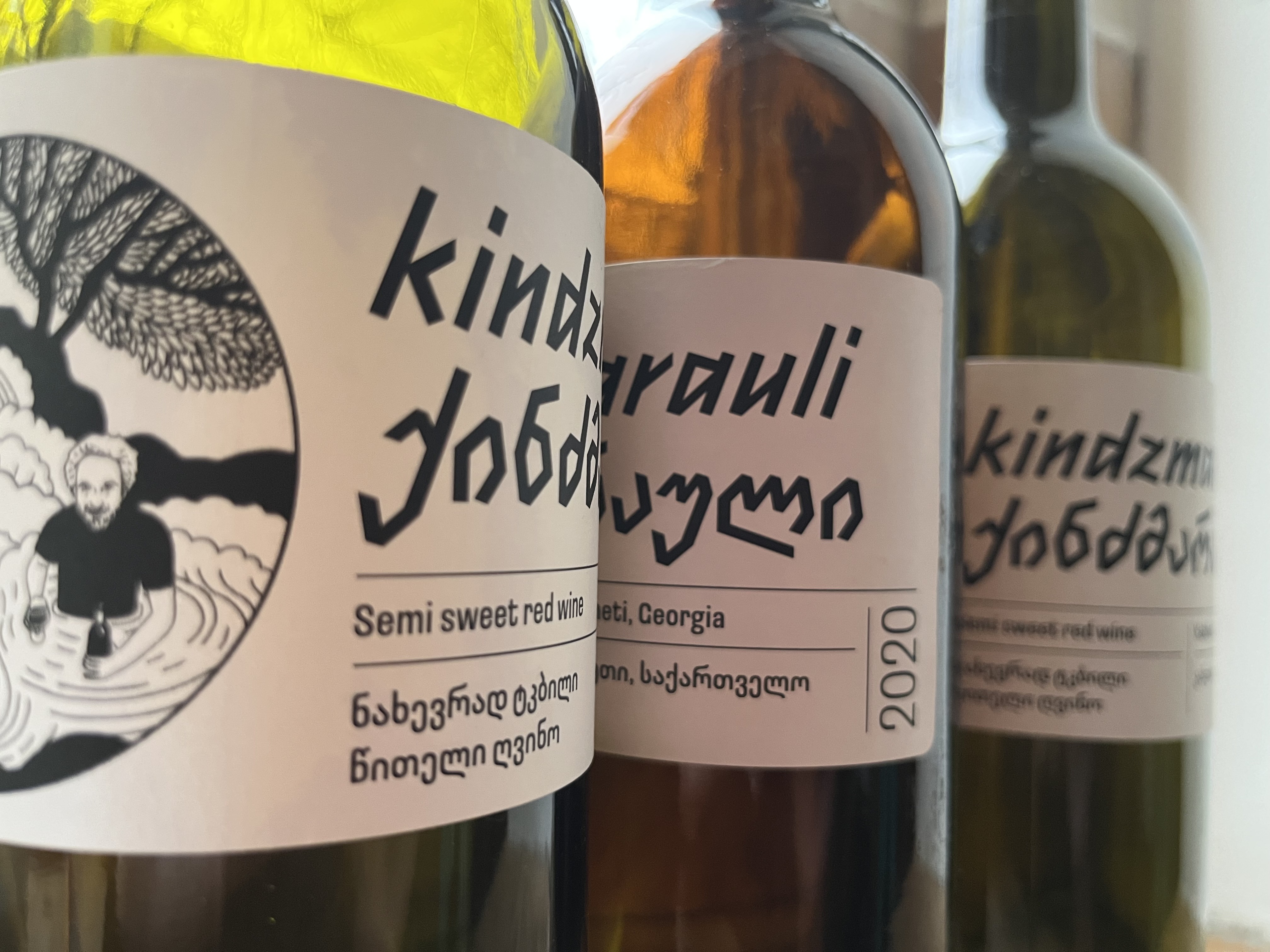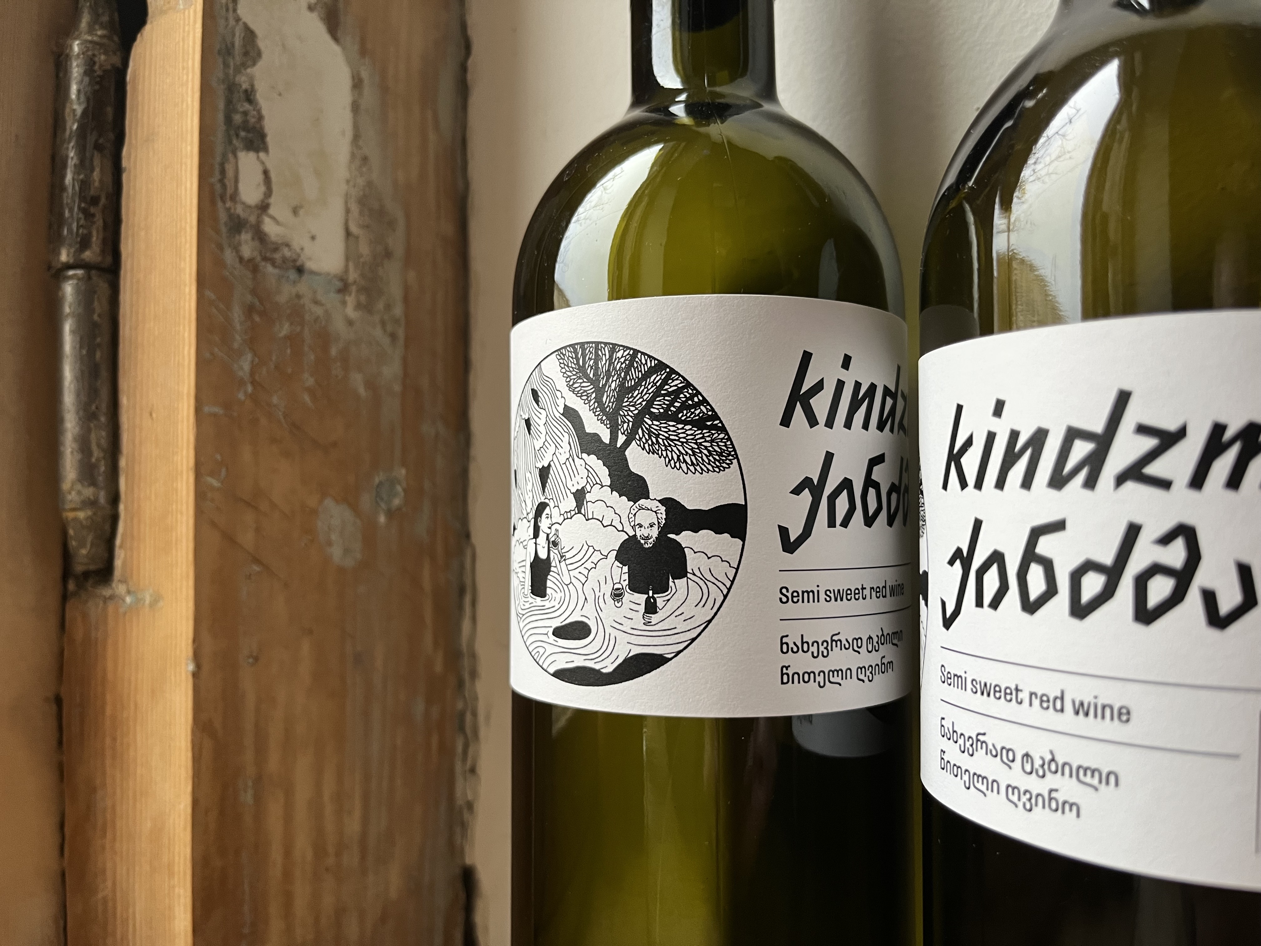 Dadi wine bar works with small Georgian wineries and regularly expands its wine list. The new Kinzmarauli labels feature narrow Loos by CSTM Fonts for English and Georgian, the display typeface Ara Oms (designed by anonymous authors to support Ukrainian refugees in Georgian), and an illustration by Daria Rychkova.