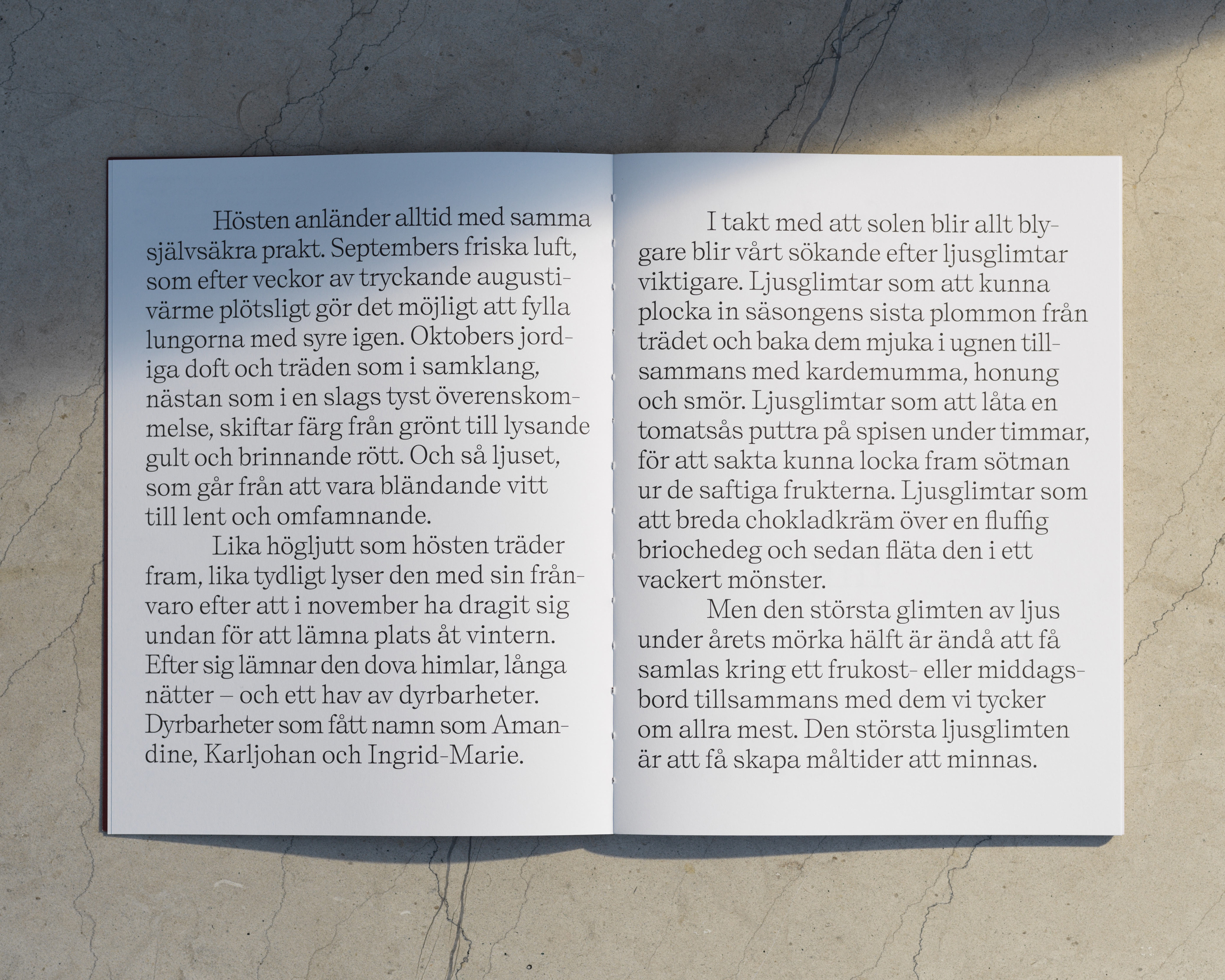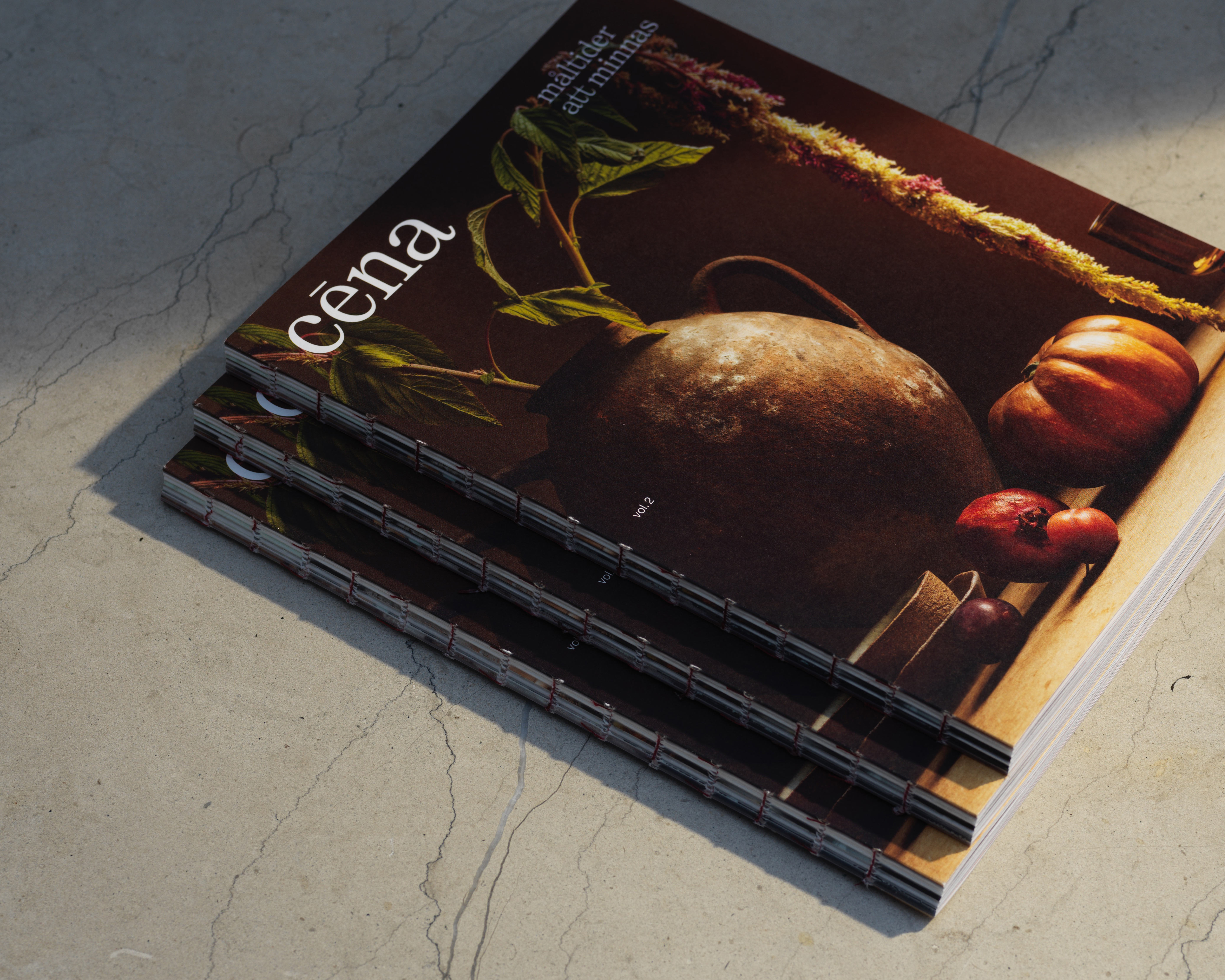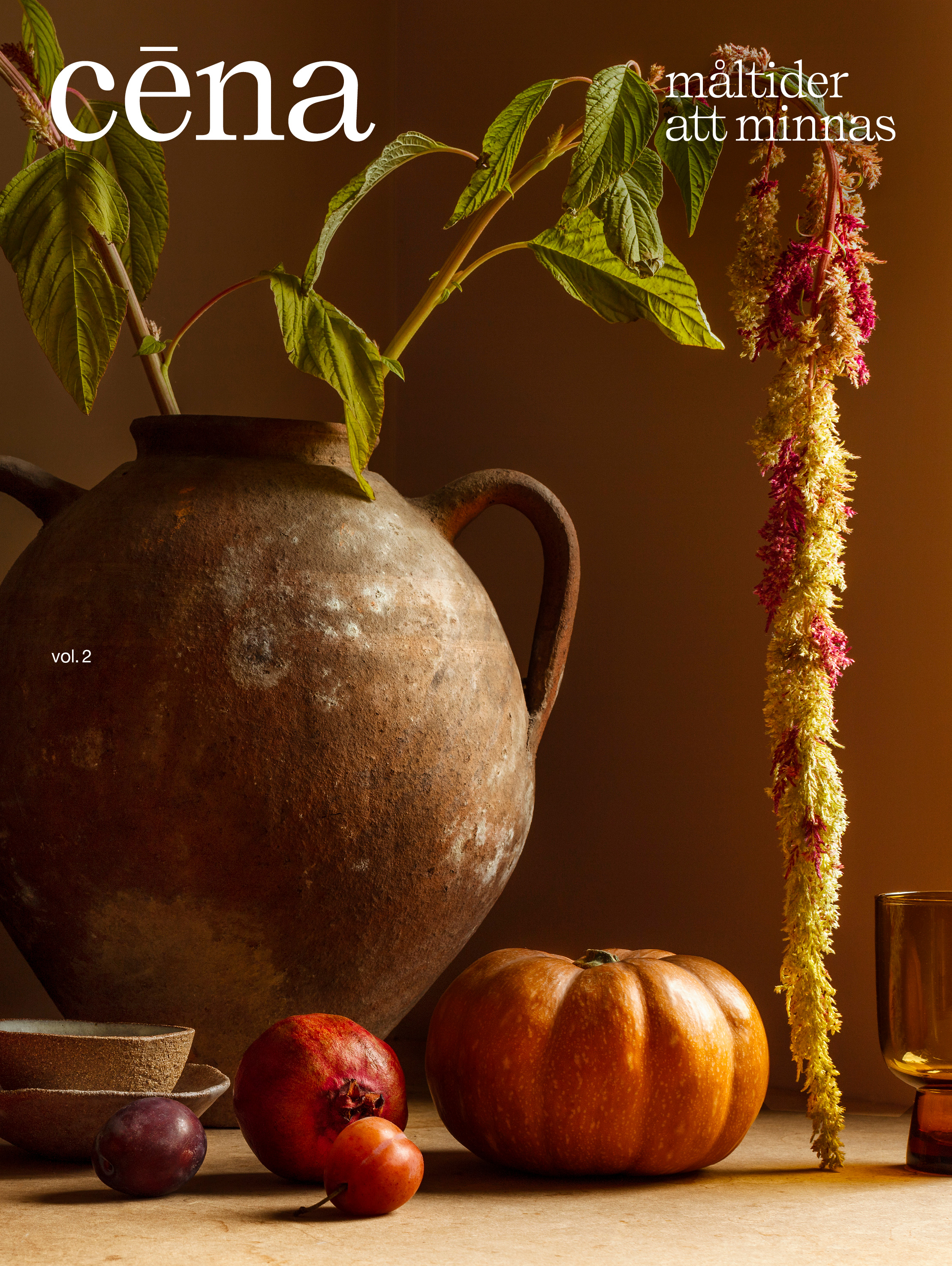 Cēna – måltider att minnas vol 2 (“Cēna – meals to remember volume 2”) was designed by Josephine Johansson, with styling by Linda Berlin and photos by Lennart Weibull.