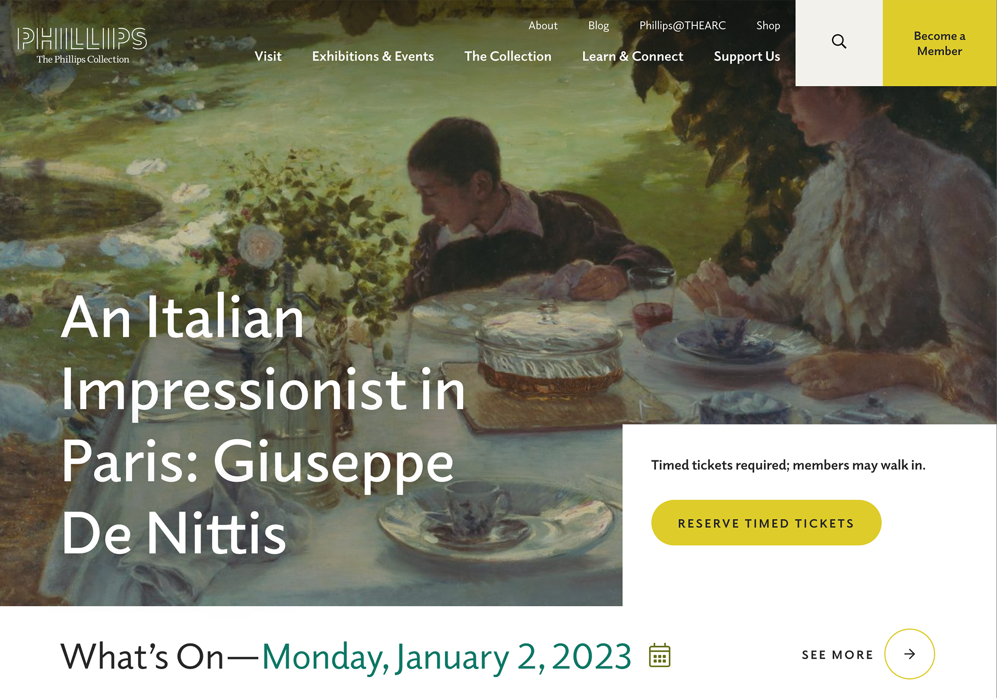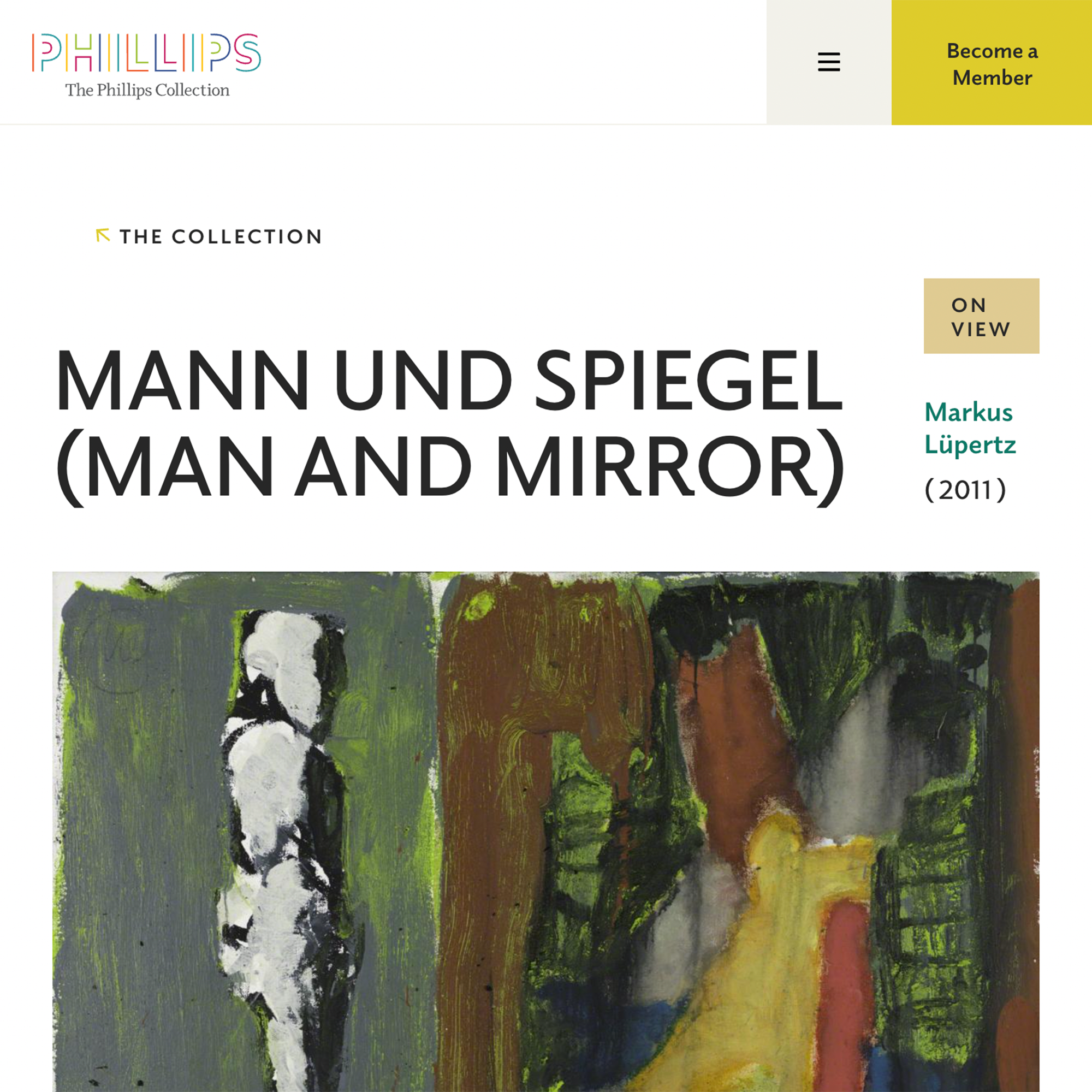 The Collection website was designed under direction of Vivian Djen – Head of Editorial and Design at The Phillips Collection. The typography primary uses Elido, a humanist sans serif type family with a wide range of variations for editorial use. The tag line of the logo is set in Odile (Elido in reverse) – the serif companion of Elido. The design concept for the sans/serif superfamily draws inspiration from an experimental typeface named Charter, originally designed by the American book and type designer William Addison Dwiggins.