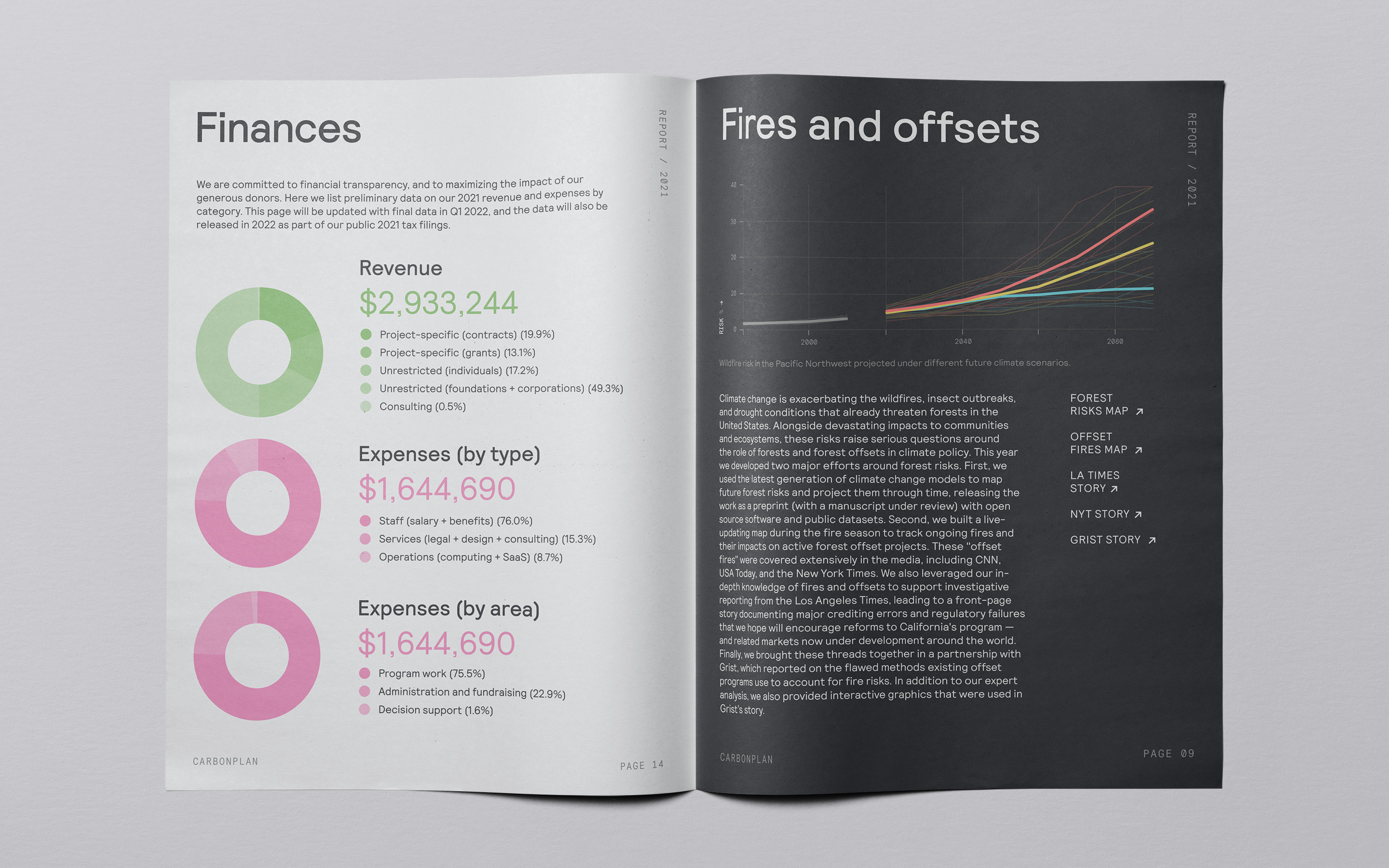 In a field rife with overwhelmingly complex data and lofty solutions, CarbonPlan creates tools and resources to “improve the transparency and scientific integrity of climate solutions.” We developed a brand optimized for data visualization and comprehension with a touch of cheeky geek.