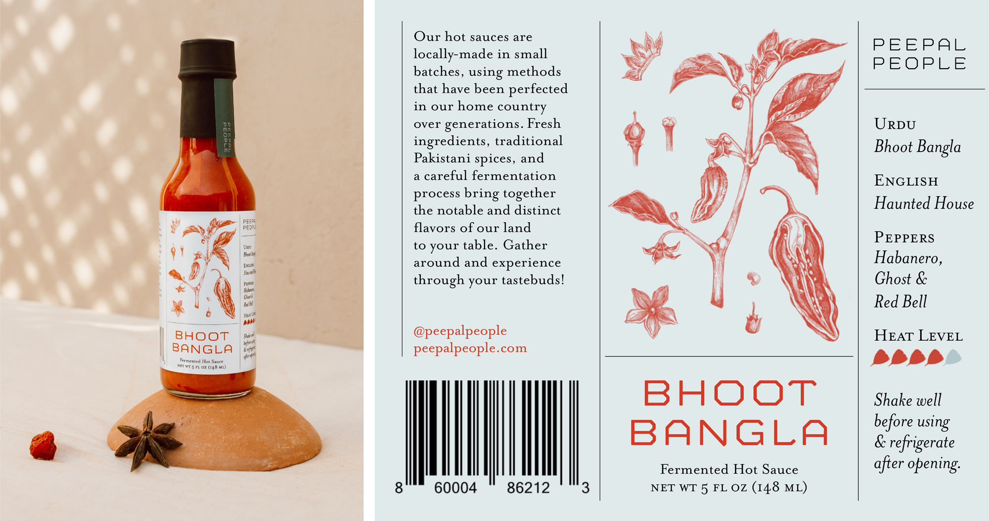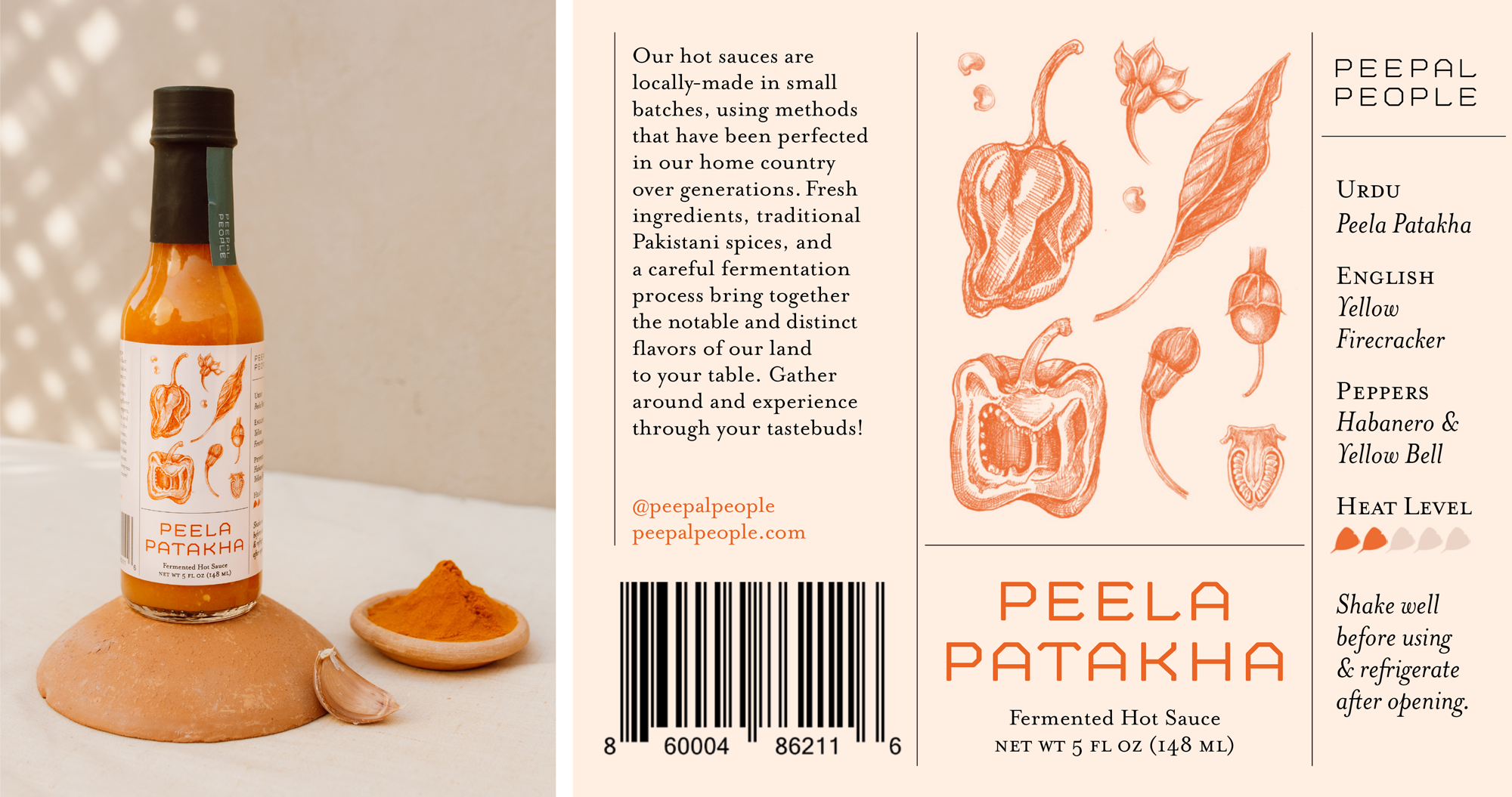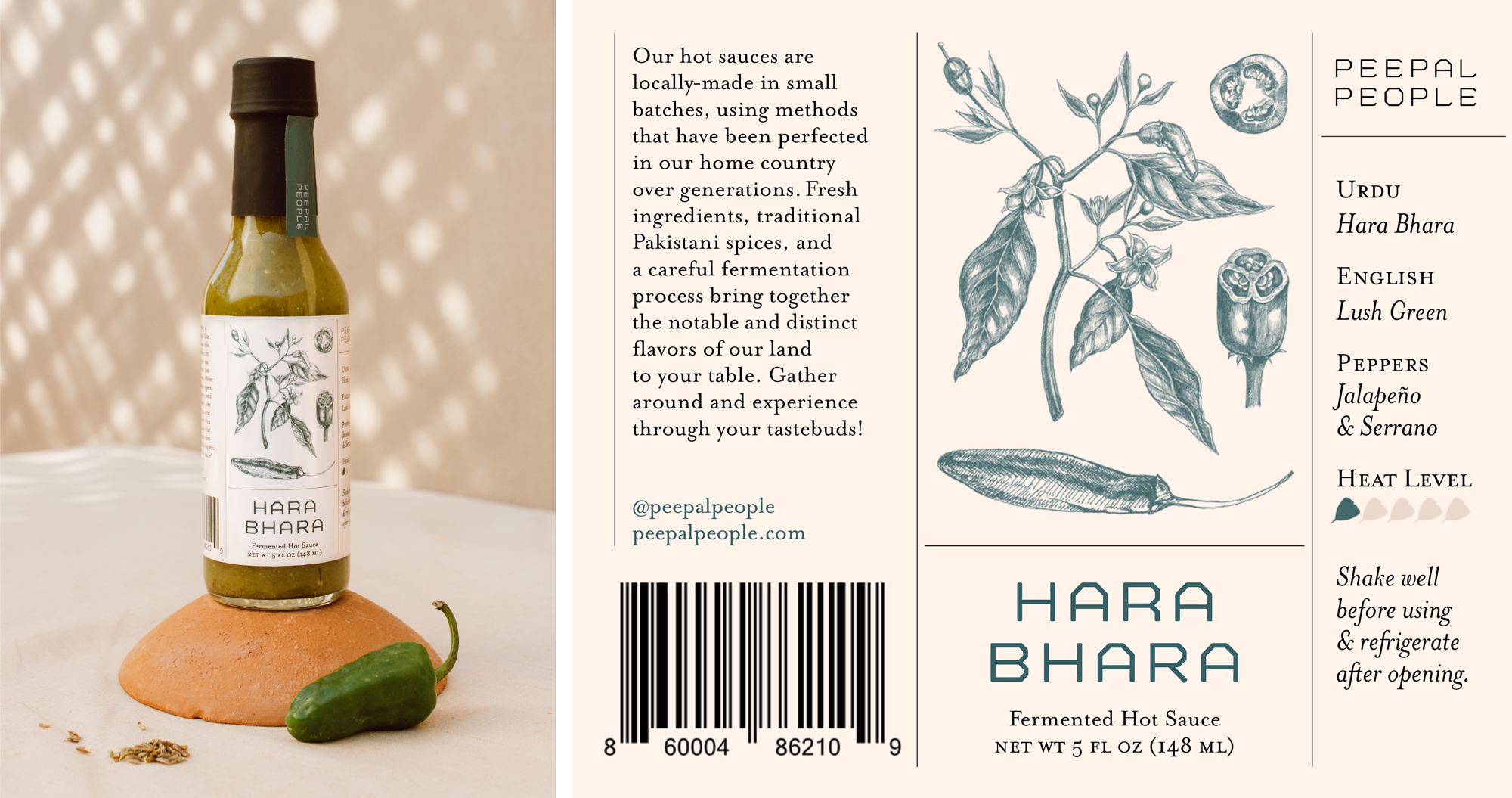 Peepal People was launched with great success in 2021 by Alyzeh and Ahmer, a Pakistani-American couple committed to sharing the flavors and traditions of South Asian culture. The visual identity of their brand is rooted in heritage, celebrating the agricultural provenance of their small-batch fermented hot sauces.