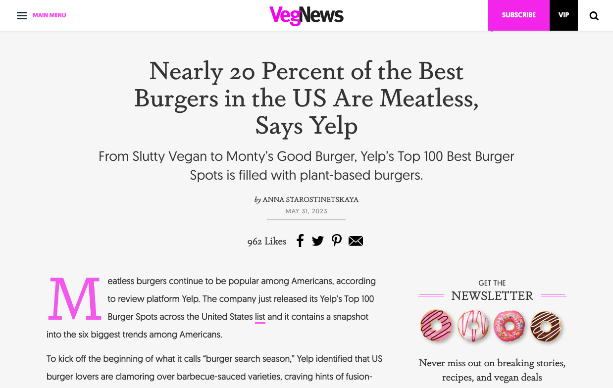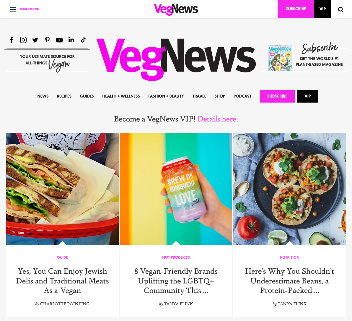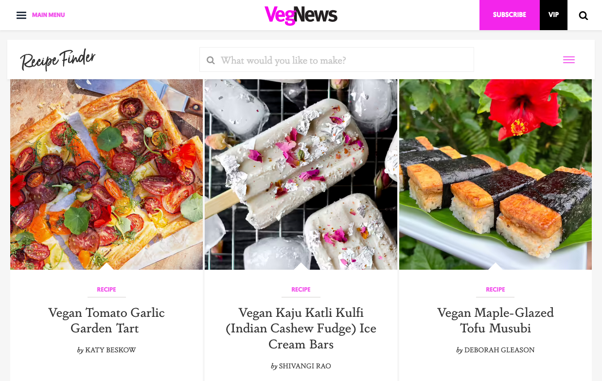 Founded in 2000, VegNews aims to be “the ultimate source for all things vegan”. The world’s largest plant-based media brand [Wikipedia] encompasses a flagship magazine, international vacations, a podcast, and more. On their award-winning website, VegNews uses Atipo’s sans-serif Geomanist for body copy and menu items. Headlines are shown in Dapifer.