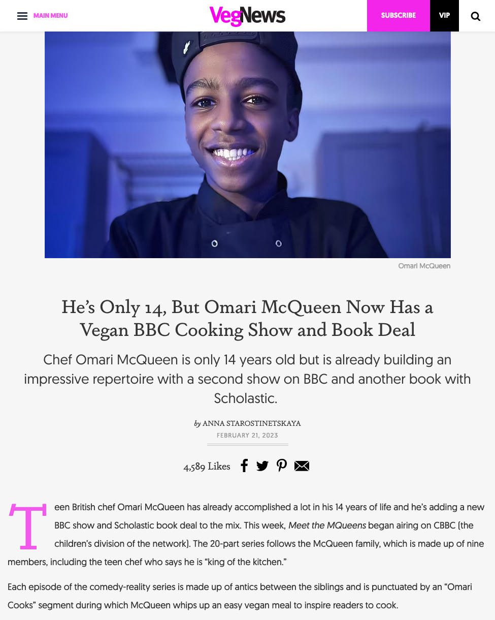 The VegNews logo is based on Erik Spiekermann’s FF Meta Bold. The type palette is perfected by Born Ready, a spirited script by Nicky Laatz which is used for subheads on the recipe pages as well as for other bits like the “Let’s connect!” call to action in the footer.