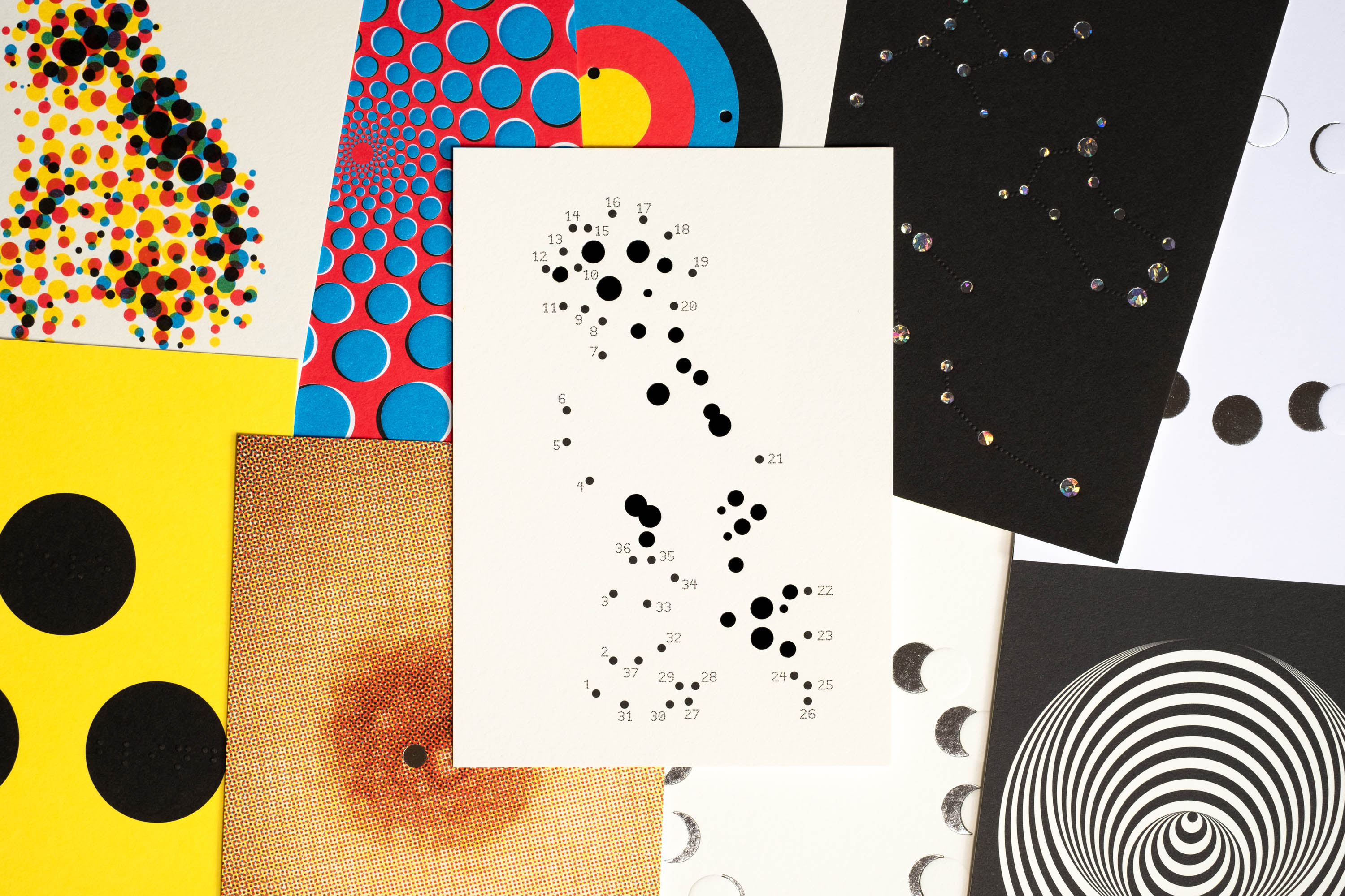 Graphic designer Götz Gramlich has chosen BVH BDot to typeset his greeting cards for 2023. He made a deck of 35 joyful and playful cards, some with iridescent hot foil stamping, embossing, punching, to wish a round and colorful new year for 2023. BVH BDot is the perfect match to play around circles and explore all its graphical shapes!