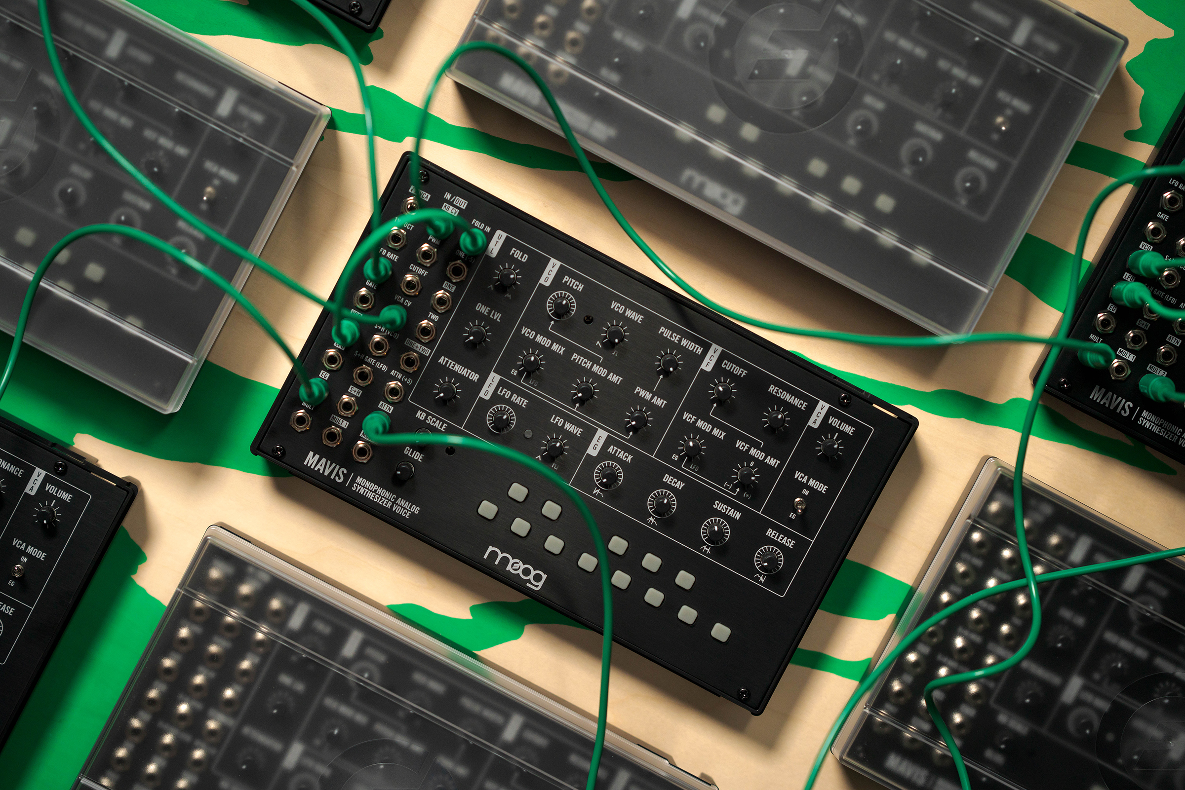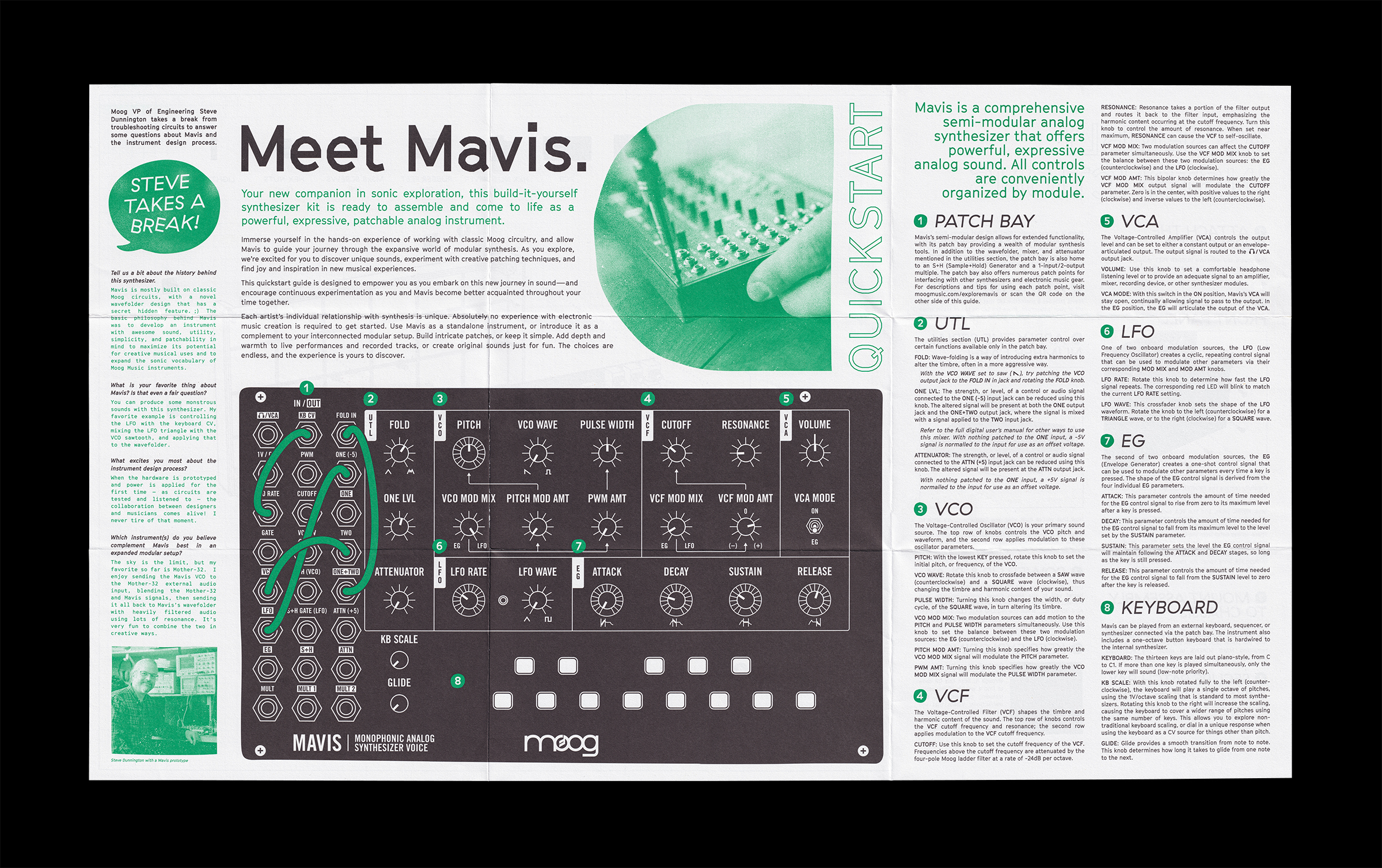 Released in June 2022, Mavis is a build-it-yourself analog synthesizer kit from Moog Music Inc. The identity for this synthesizer is anchored by Cinetype and Haptik—both released by Grilli Type—alongside Gotham and Trade Gothic, two mainstays of Moog’s core branding and product design. Art direction and design by Erik Pedersen and Emory Brandon.