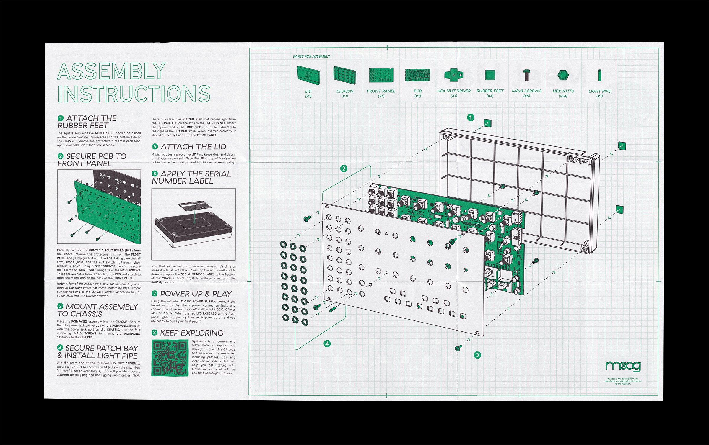 The straight-lines-only design of Cinetype speaks to the collaborative nature of Mavis’ design process and the stack of curve-free CAD drawings produced by the engineering team along the way. Haptik’s tactile uppercase letters and numbers were chosen to reflect the hands-on process of assembling this synthesizer yourself.
