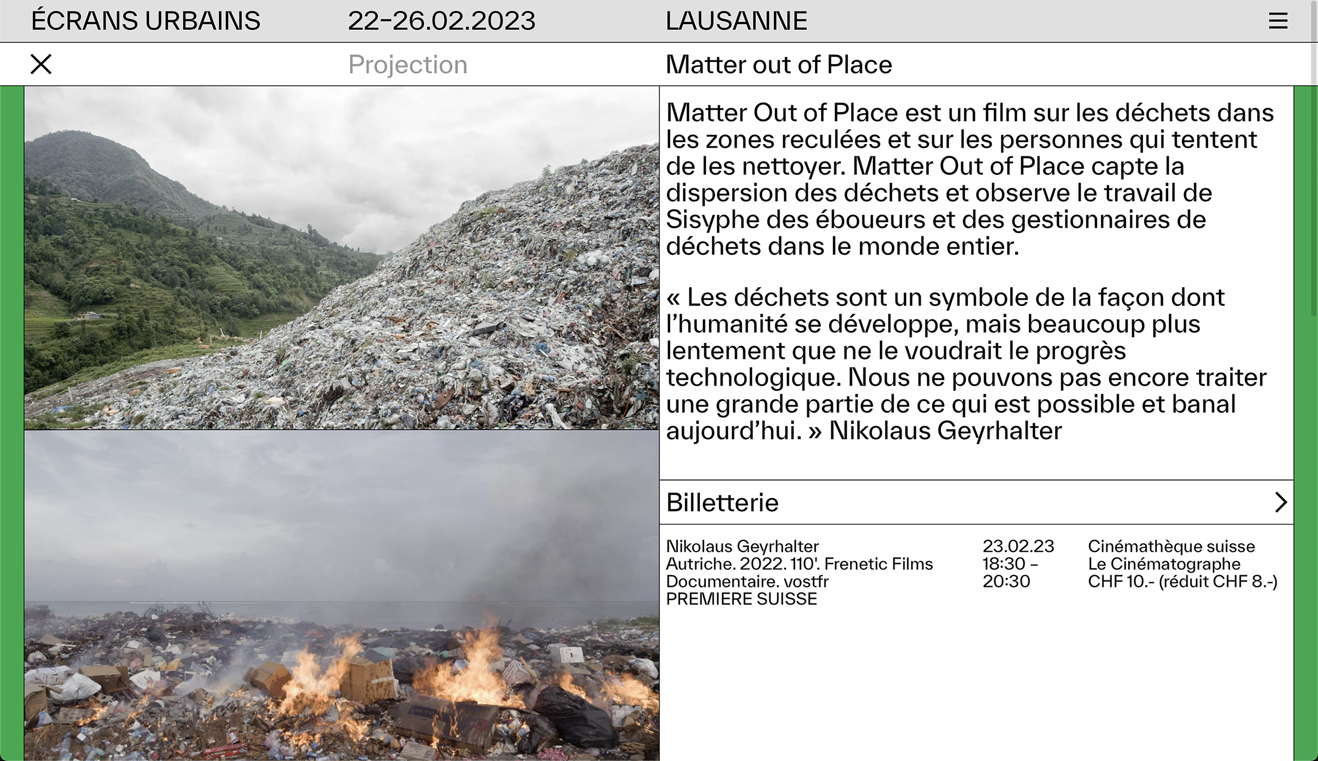 Everett in use for Écrans Urbains in Lausanne since 2020. Graphic design by Notter + Vigne, web development by About Blank.