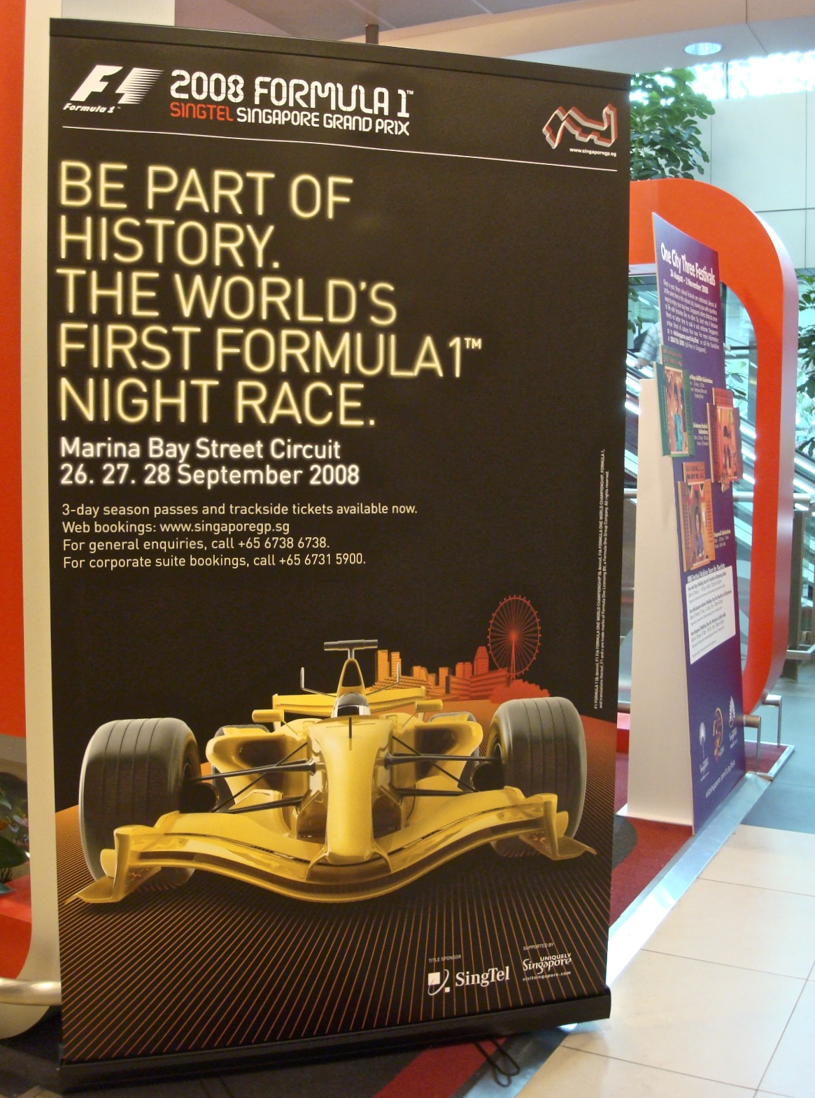 At Singapore’s Changi Airport, a poster for the forthcoming premier Singapore Grand Prix. Sadly, I would miss it as I had to fly out to The Philippines.