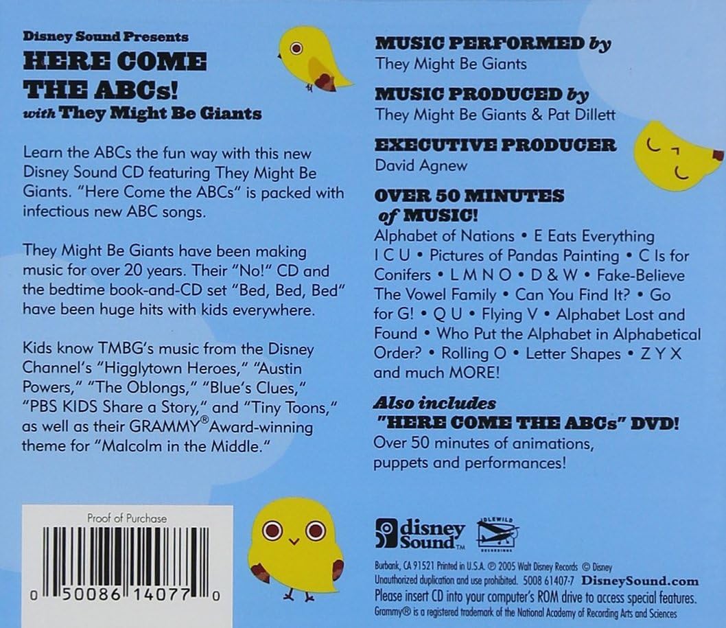 Here Come the ABCs is the second children’s album and eleventh studio album by alternative rock band They Might Be Giants, aimed at young children learning the alphabet.