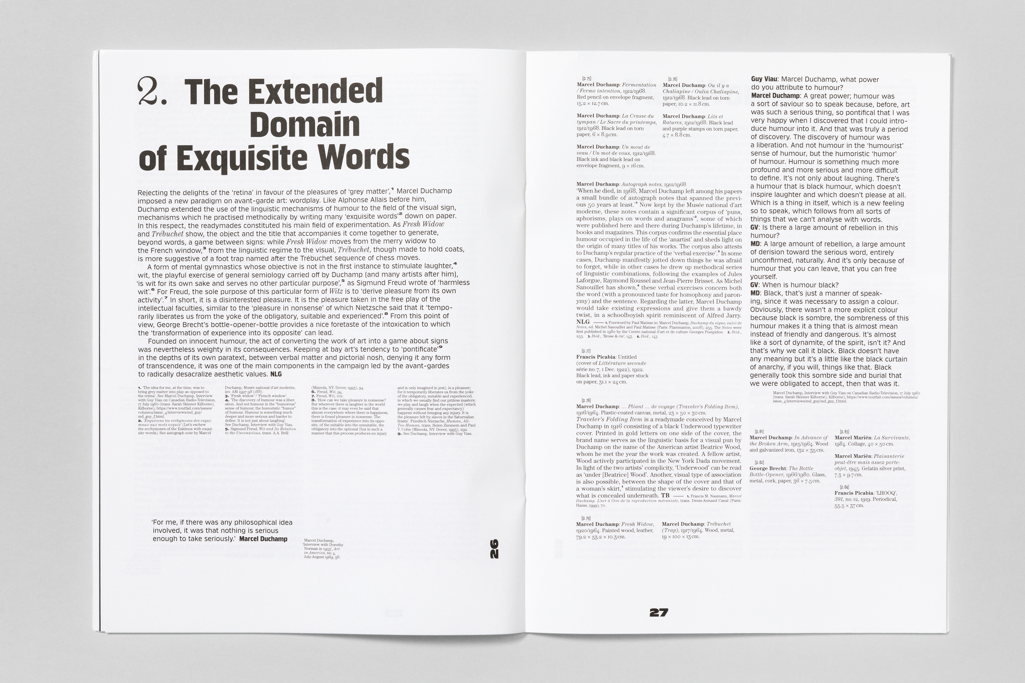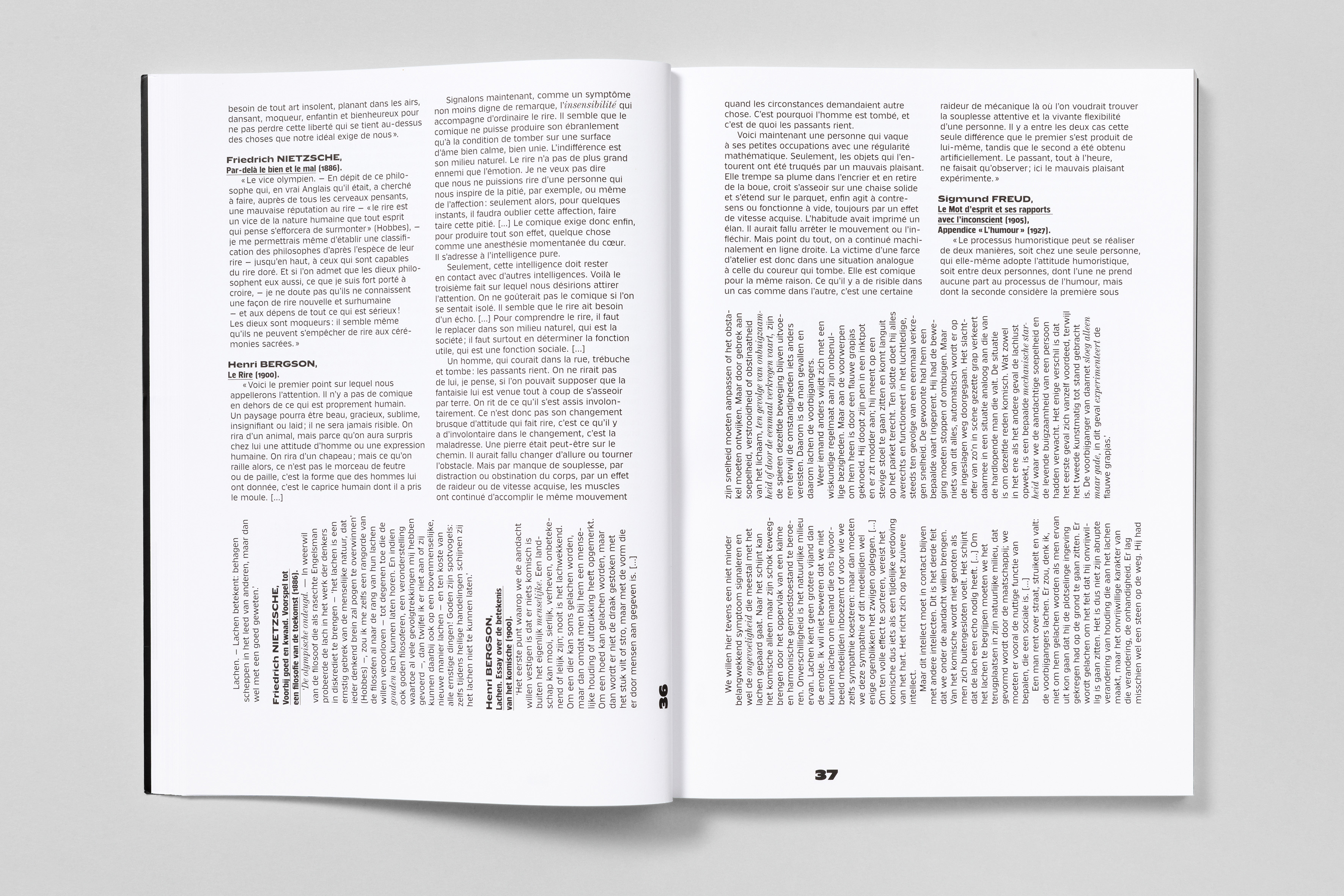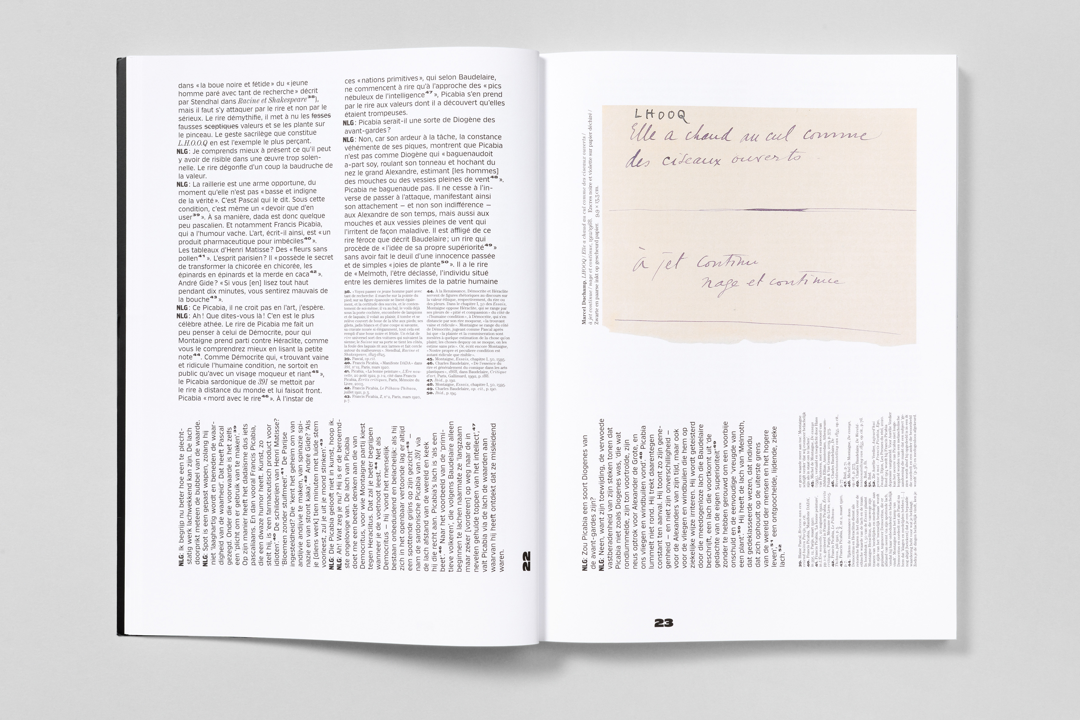 Klub is used in all its capabilities to its full extent: from straight body copy, visually-loud chapter openers and for typographical hierarchies like footnotes. Throughout the catalogue Klub 04 Medium, Klub 06 Bold, Klub 08 Medium as well as all styles of Klub 11 are paired with ITC Century. The result is powerful and strong design on the basis of a strict book architecture. In addition the catalogue comes with a booklet with English translations in which the typographic motive is repeated.