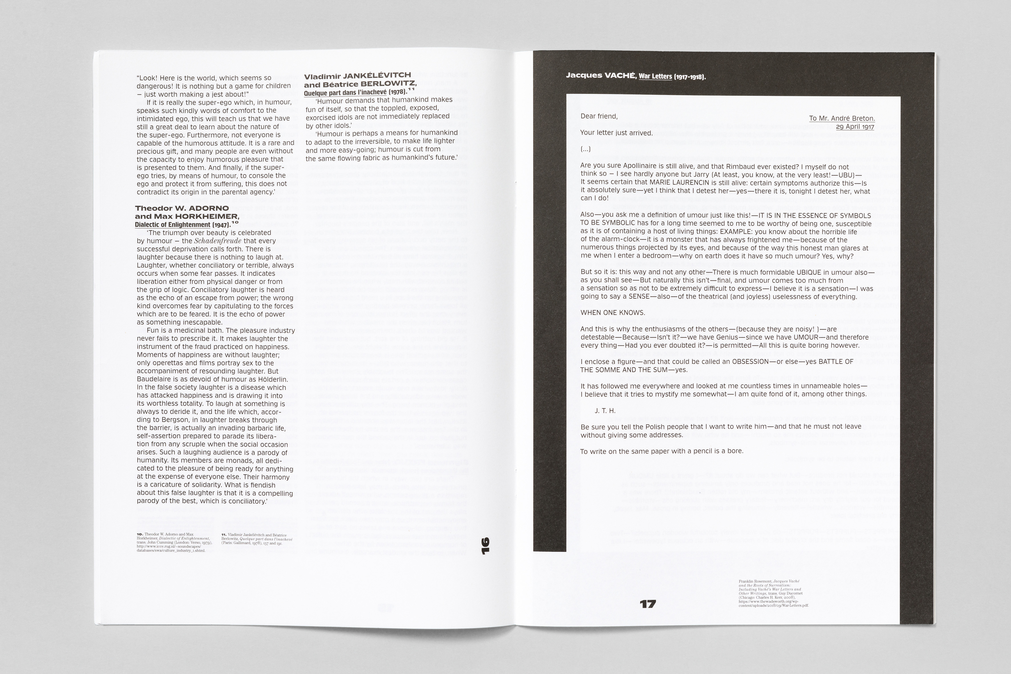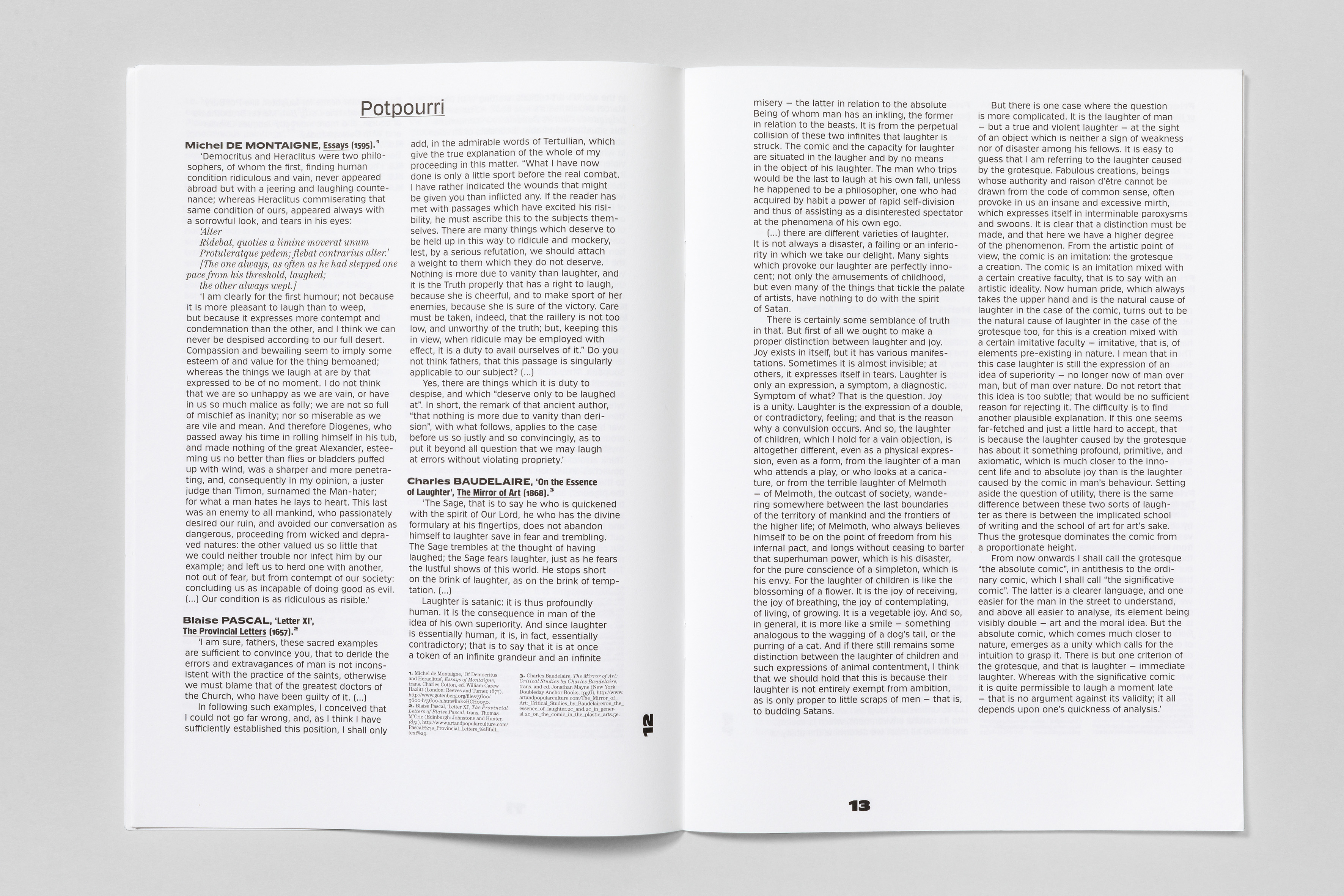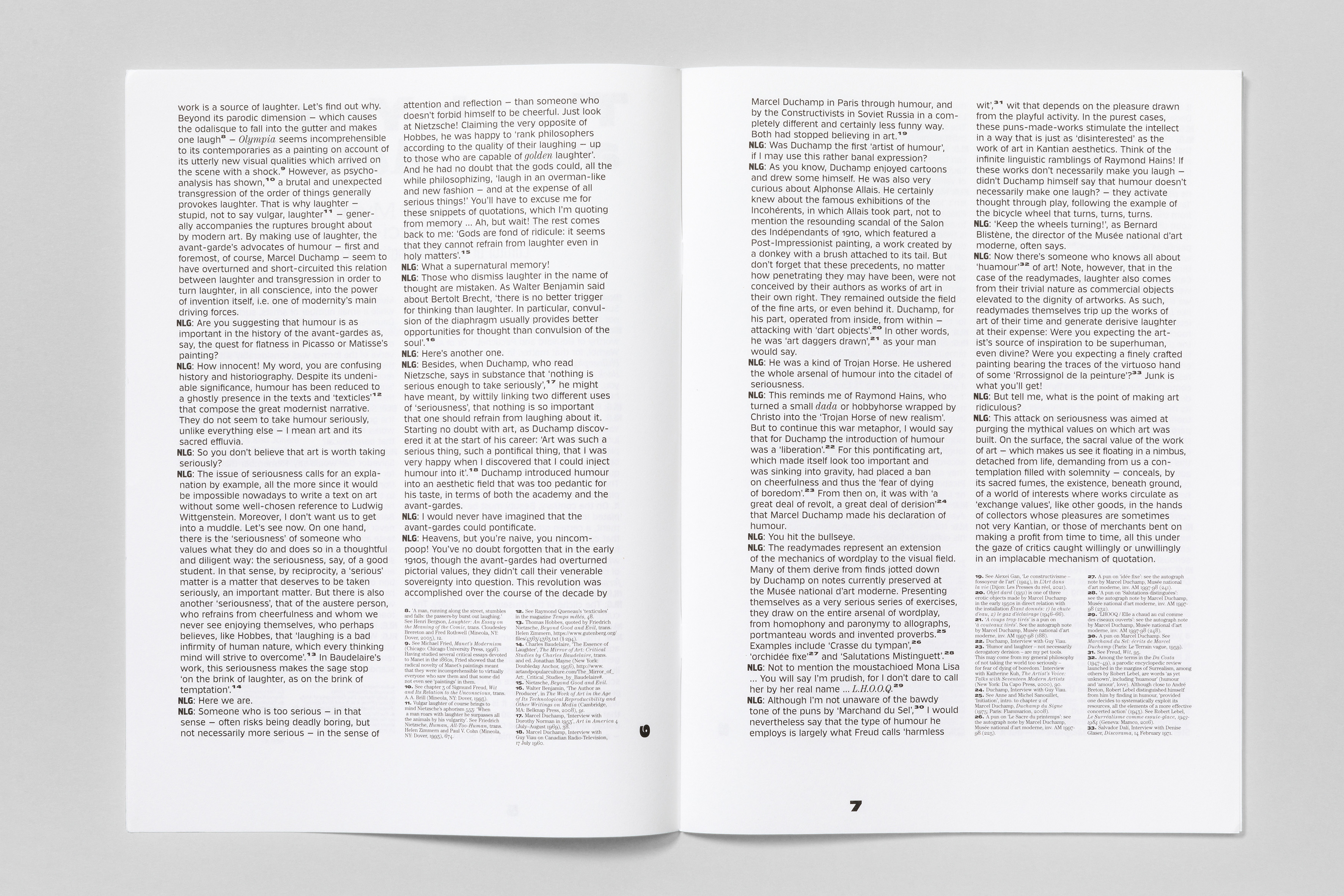 Klub is used in all its capabilities to its full extent: from straight body copy, visually-loud chapter openers and for typographical hierarchies like footnotes. Throughout the catalogue Klub 04 Medium, Klub 06 Bold, Klub 08 Medium as well as all styles of Klub 11 are paired with ITC Century. The result is powerful and strong design on the basis of a strict book architecture. In addition the catalogue comes with a booklet with English translations in which the typographic motive is repeated.