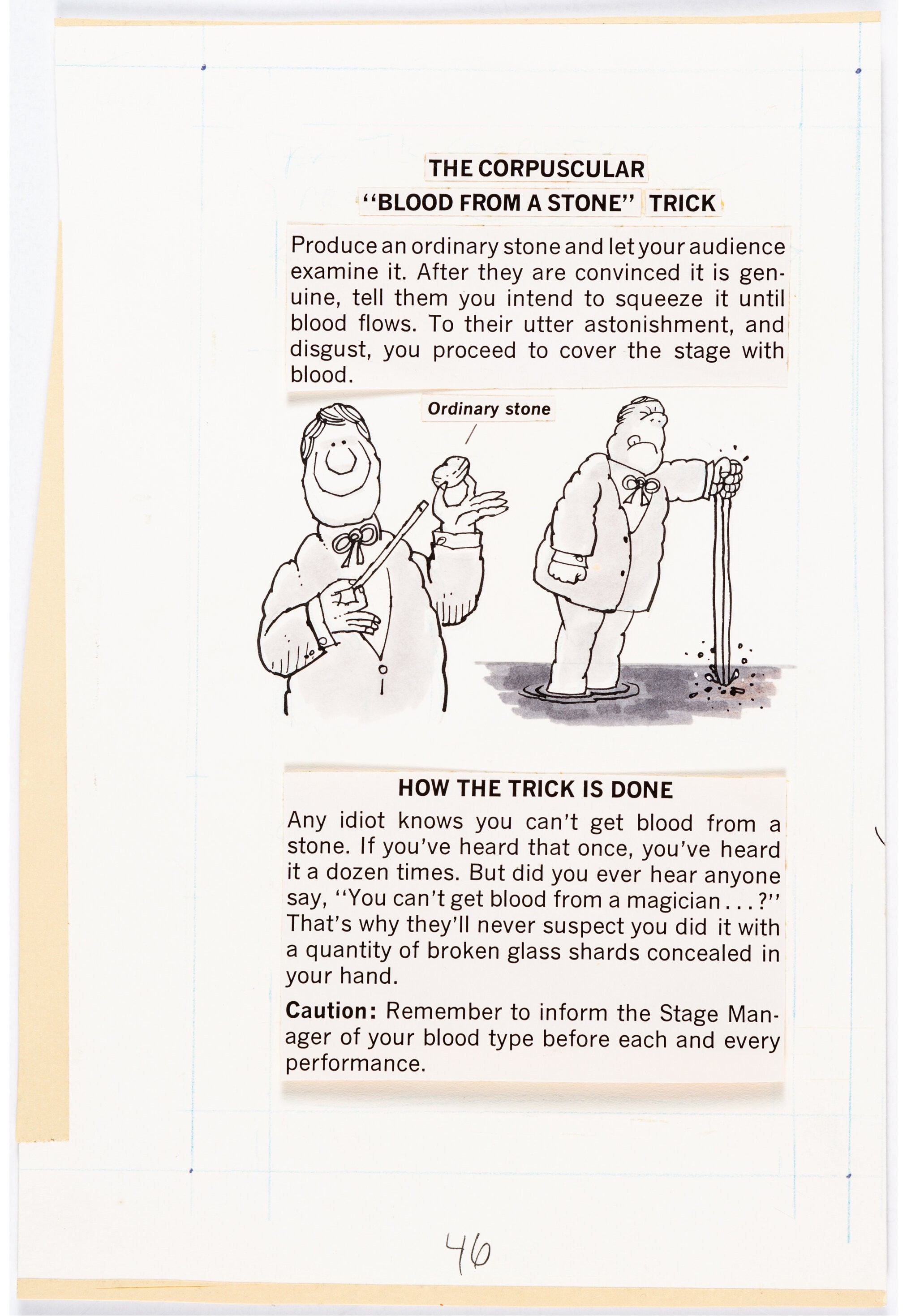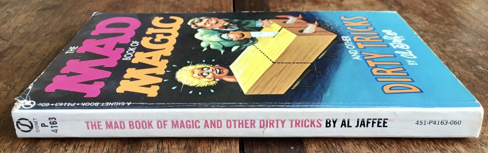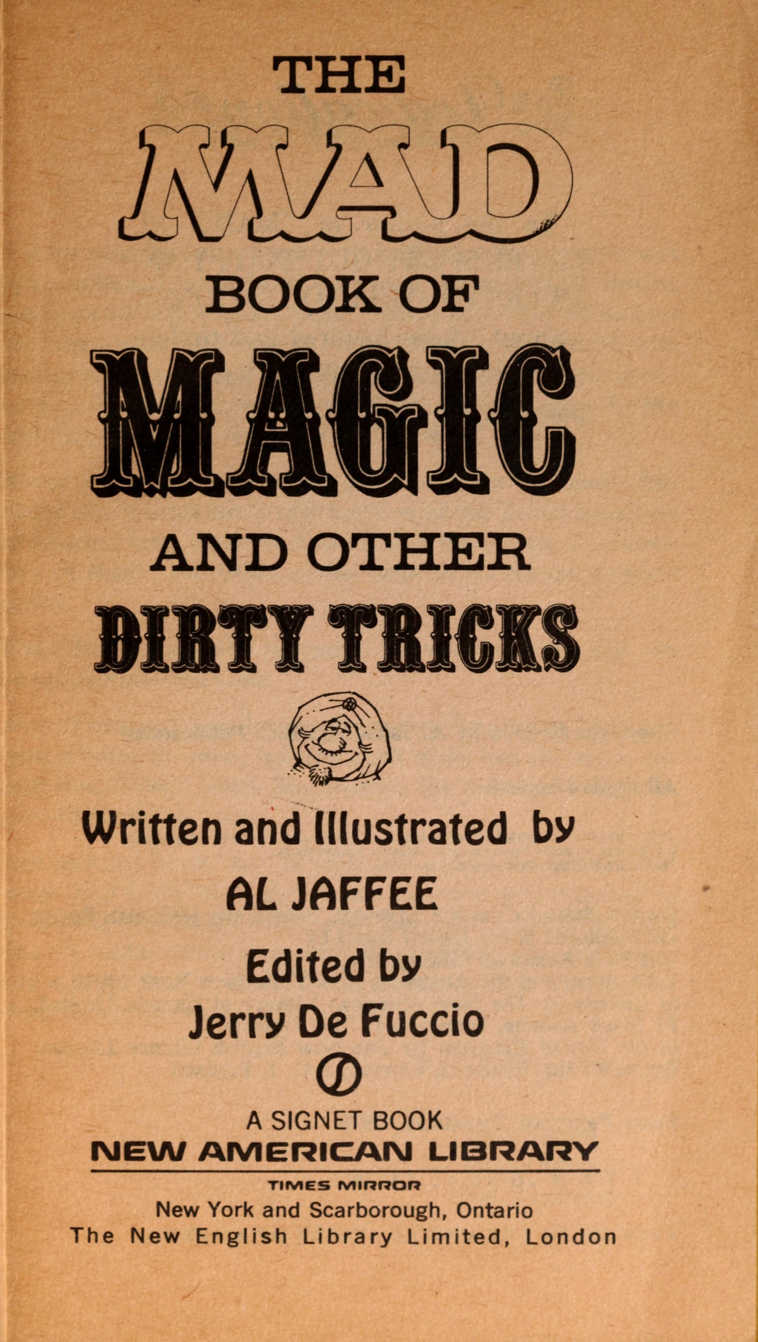 Master cartoonist Al Jaffee (1921–2023) of Mad magazine, who is best known for his Mad Fold-Ins and Snappy Answers to Stupid Questions series, created this classic book of wild and psychotic magic tricks. Edited together with Jerry De Fuccio and published by Signet in 1970, it became a hit through North America and Europe, becoming a household item for many growing up in the 1970s.