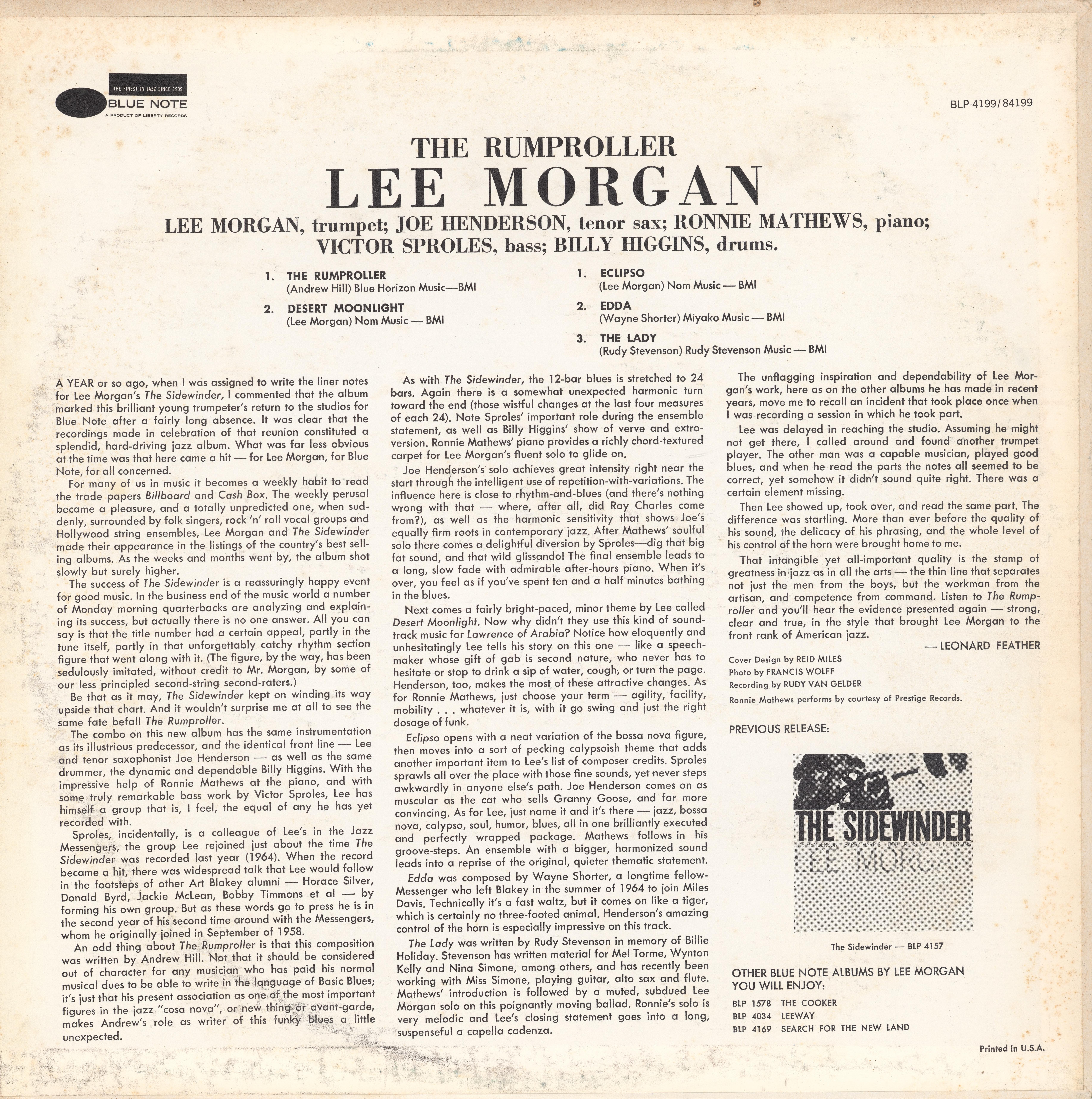 The Rumproller is a 1966 album from trumpeter Lee Morgan (1938–1972) released on the Blue Note label. The album cover was designed by Reid Miles, and features the title and artist name in Franklin Gothic Extra Condensed, highly distorted to the point it’s reminiscent of funhouse mirror.