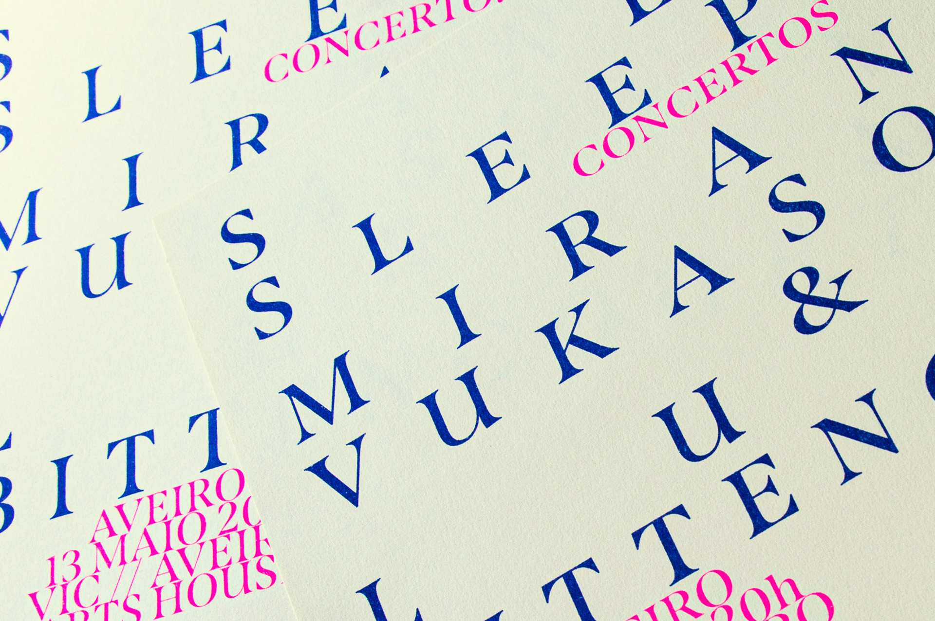 Risograph printed poster for Sea Sleepers, a musical project by Miranda Vukasović & Luís Bittencourt that explores the boundaries between water (element), architecture (practice and matter) and place (space and concept). Prints by Tina Siuda at Not So Fast Press.