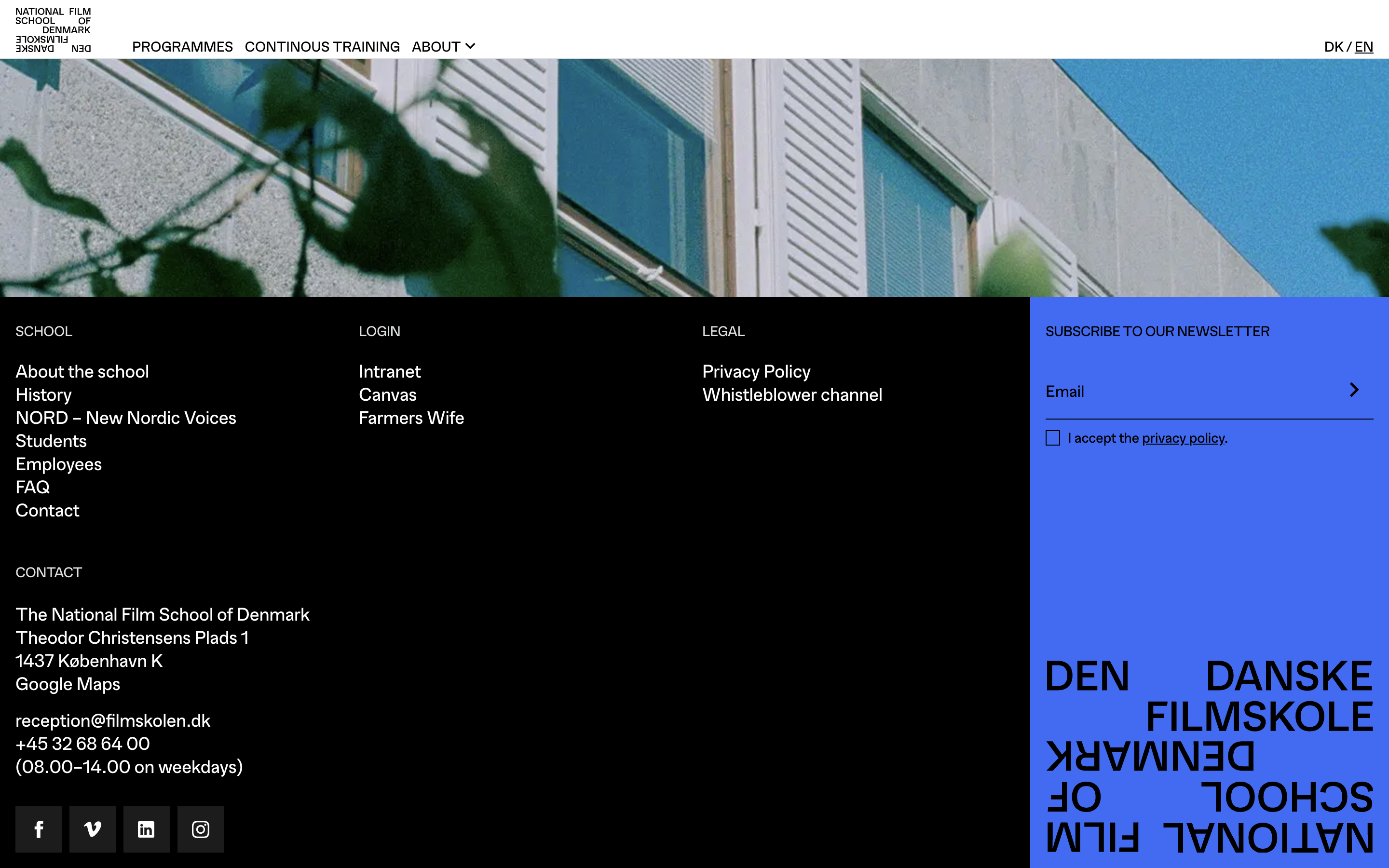 Independent creative company Barkas (Denmark/Sweden) created the new visual identity for the school. The typeface used is Reply by Kasper Pyndt, a Danish graphic designer and founder of Approximate Type.