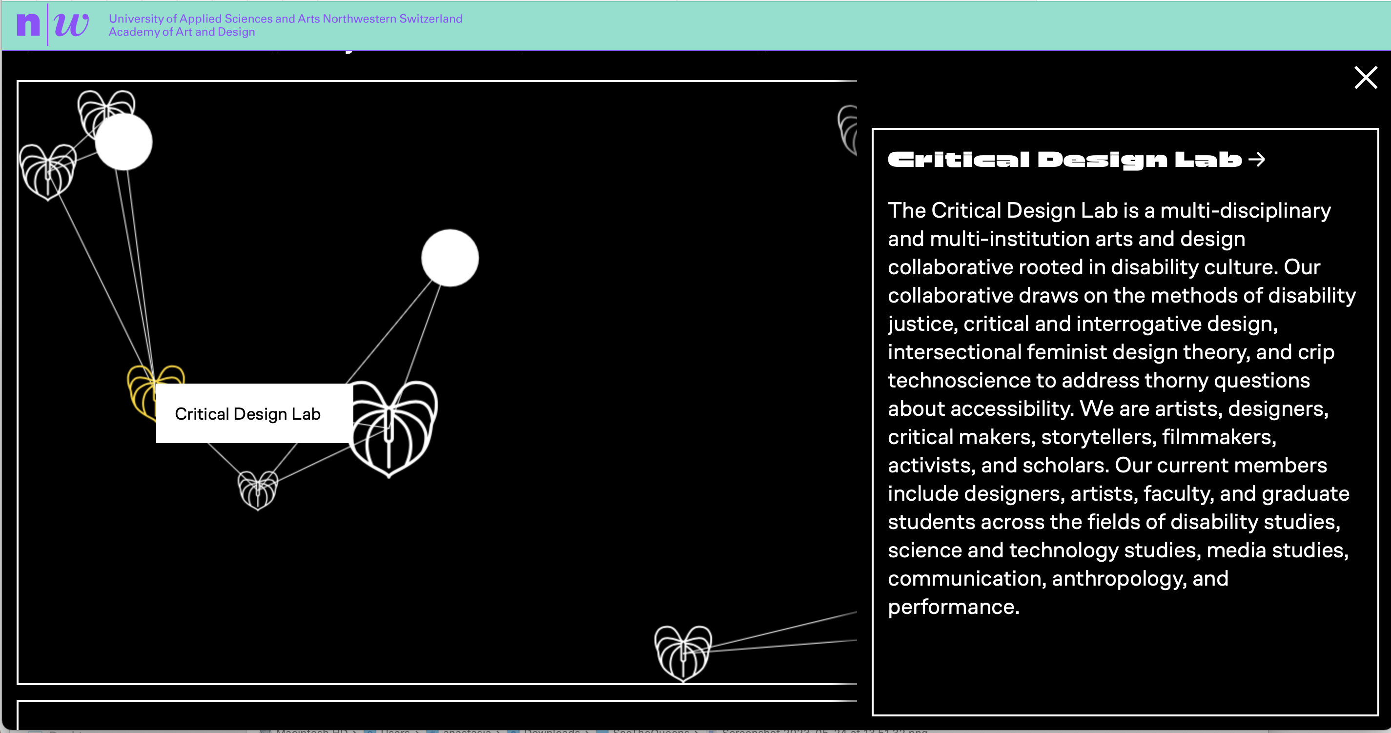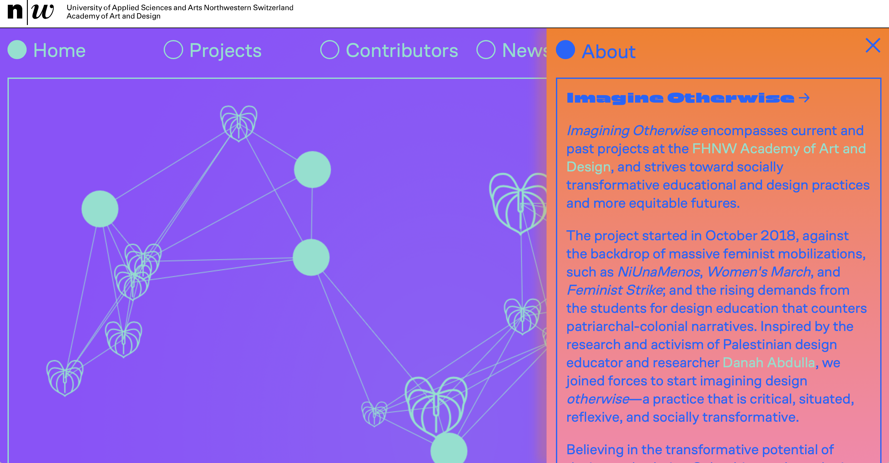 Imagining Otherwise “encompasses current and past projects at the FHNW Academy of Art and Design, and strives toward socially transformative educational and design practices and more equitable futures”. FHNW is the University of Applied Sciences and Arts Northwestern Switzerland (Hochschule für Gestaltung und Kunst) in Münchenstein near Basel, Switzerland.