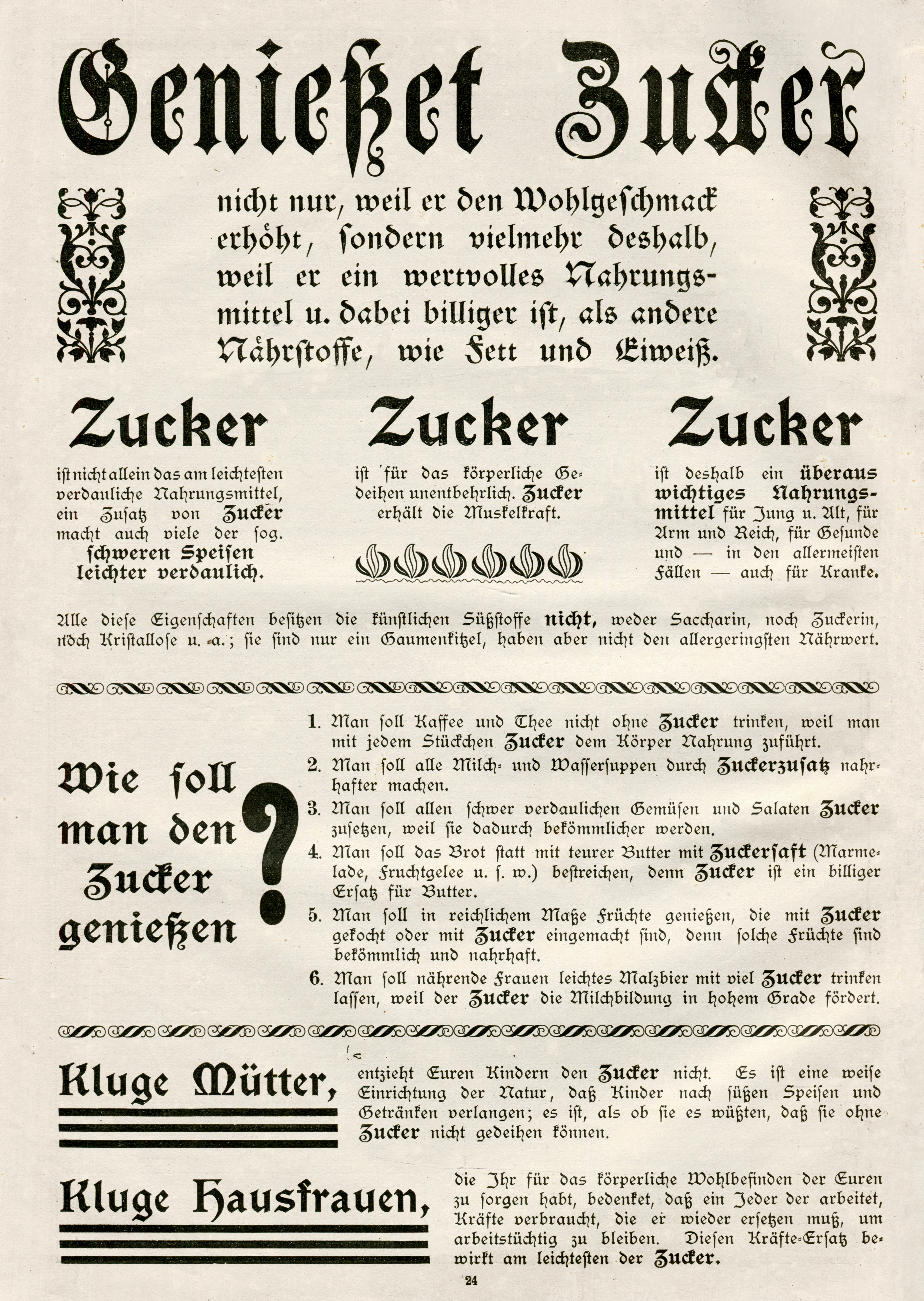 The bottom part addresses “smart mothers” and “smart housewives”. The former are asked not to deprive their children of sugar: