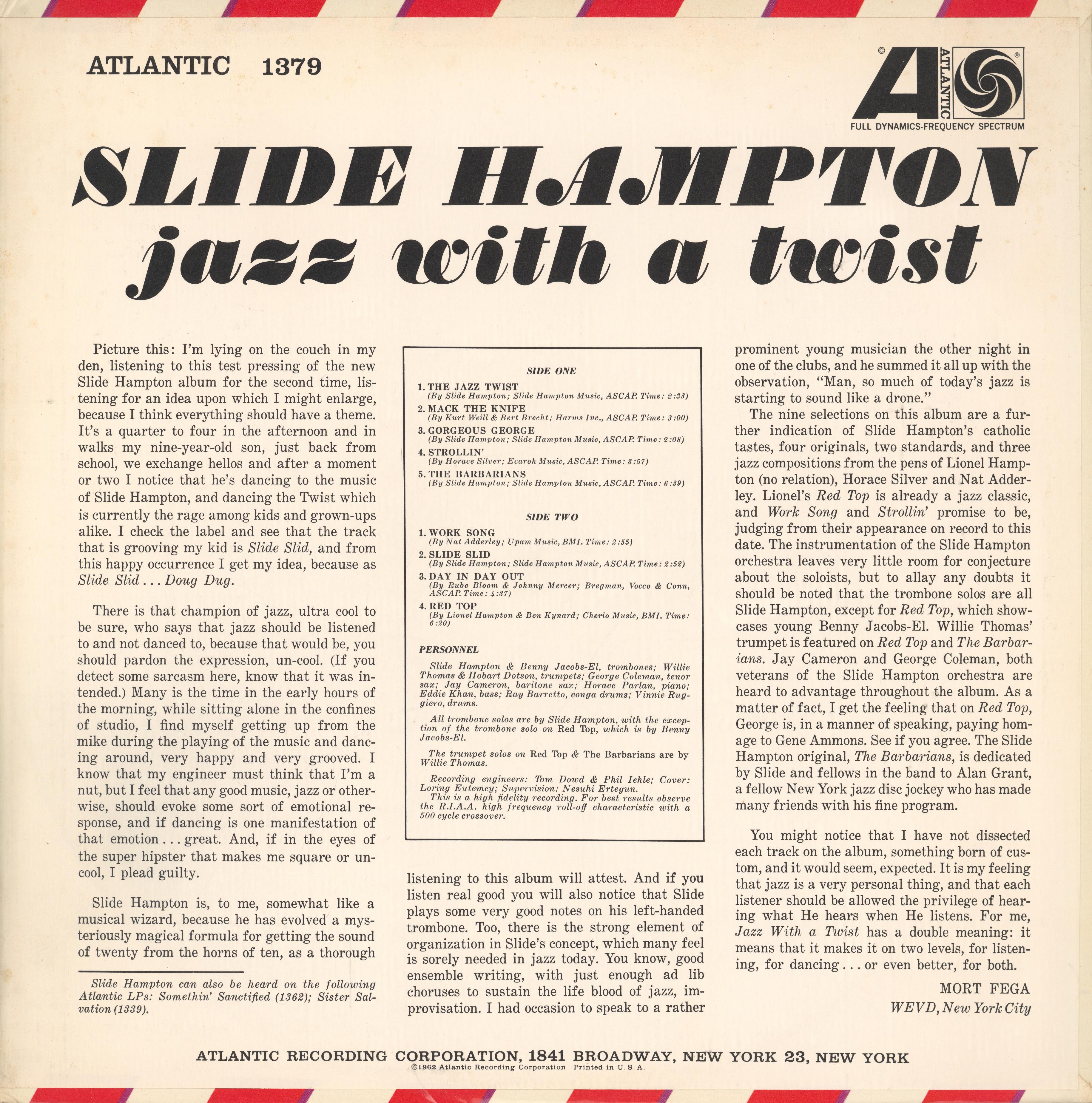 Jazz with a Twist is a 1962 album by American jazz trombonist Locksley Wellington “Slide” Hampton (1932–2021).