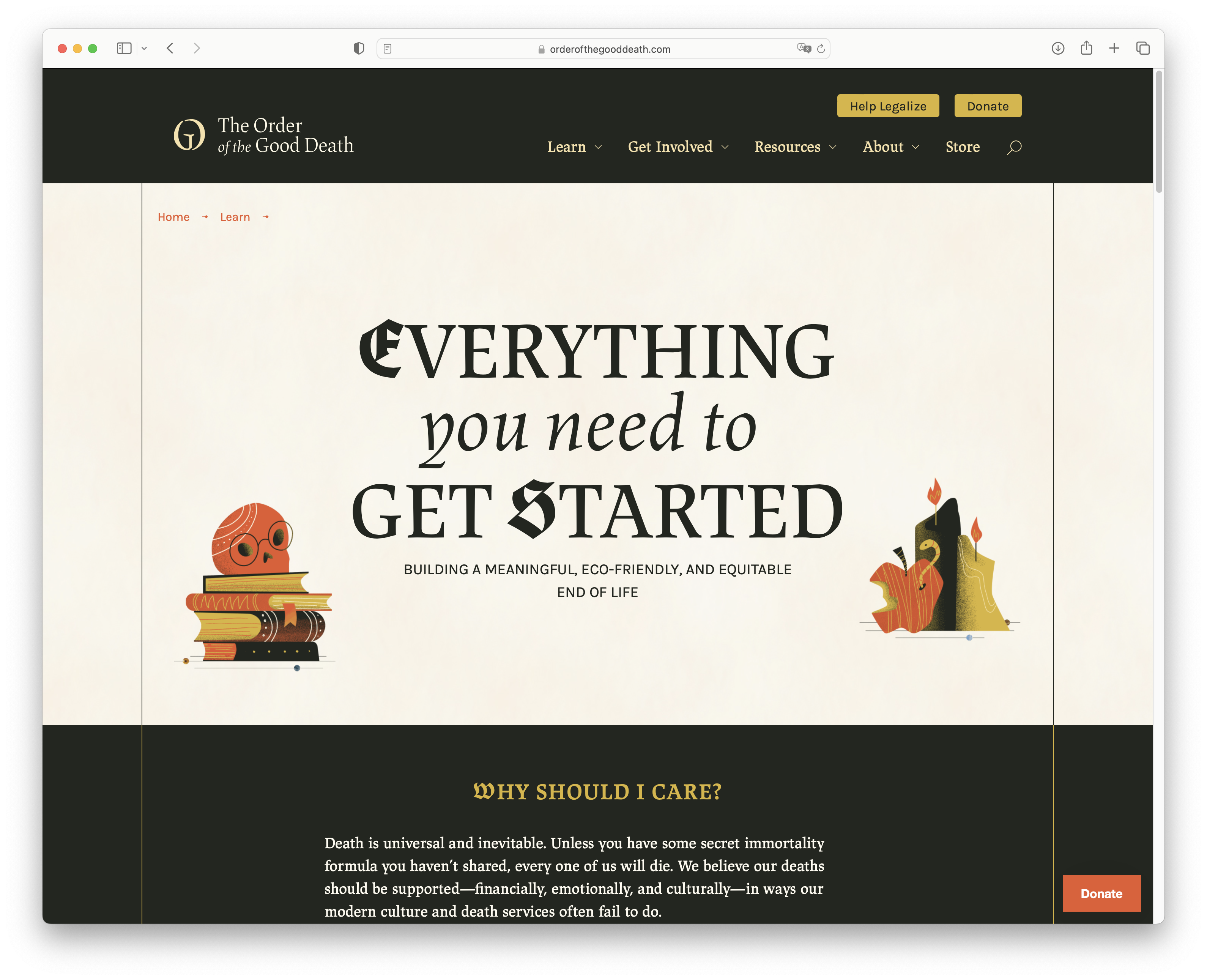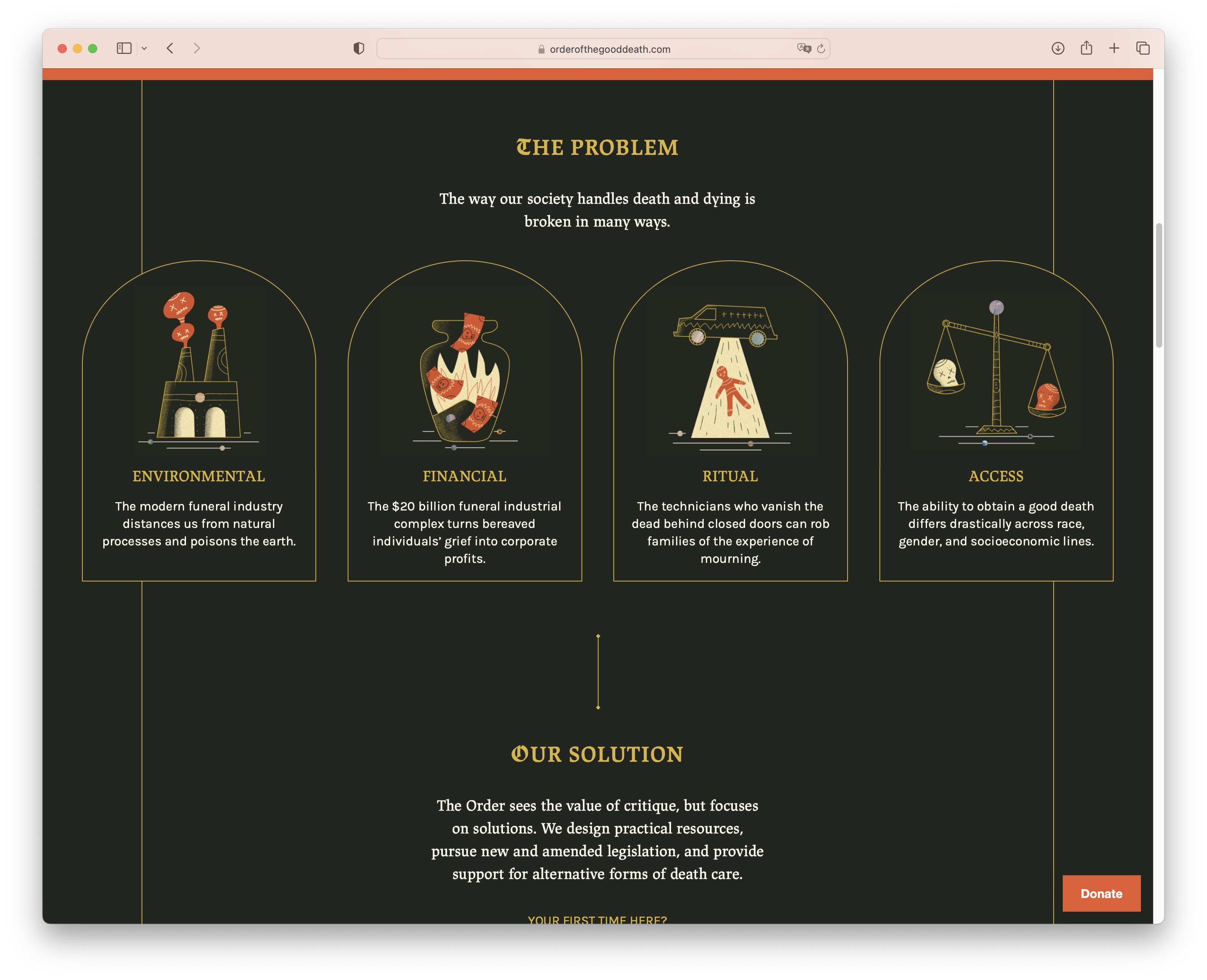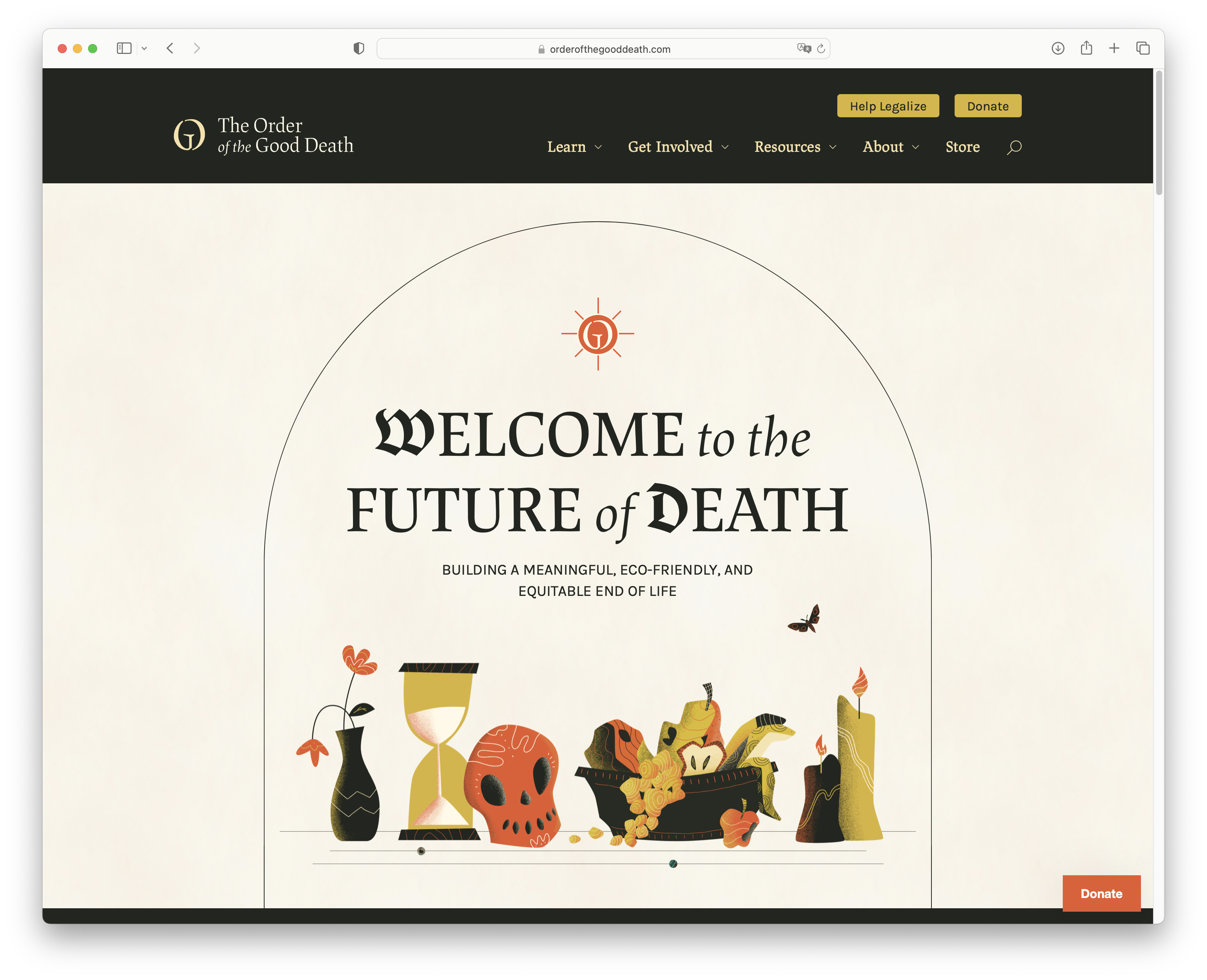 The Order of the Good Death is an organisation that addresses issues arising from highly industrialised modern funeral practices. It promotes a more environmentally friendly and equitable approach to the end of life.