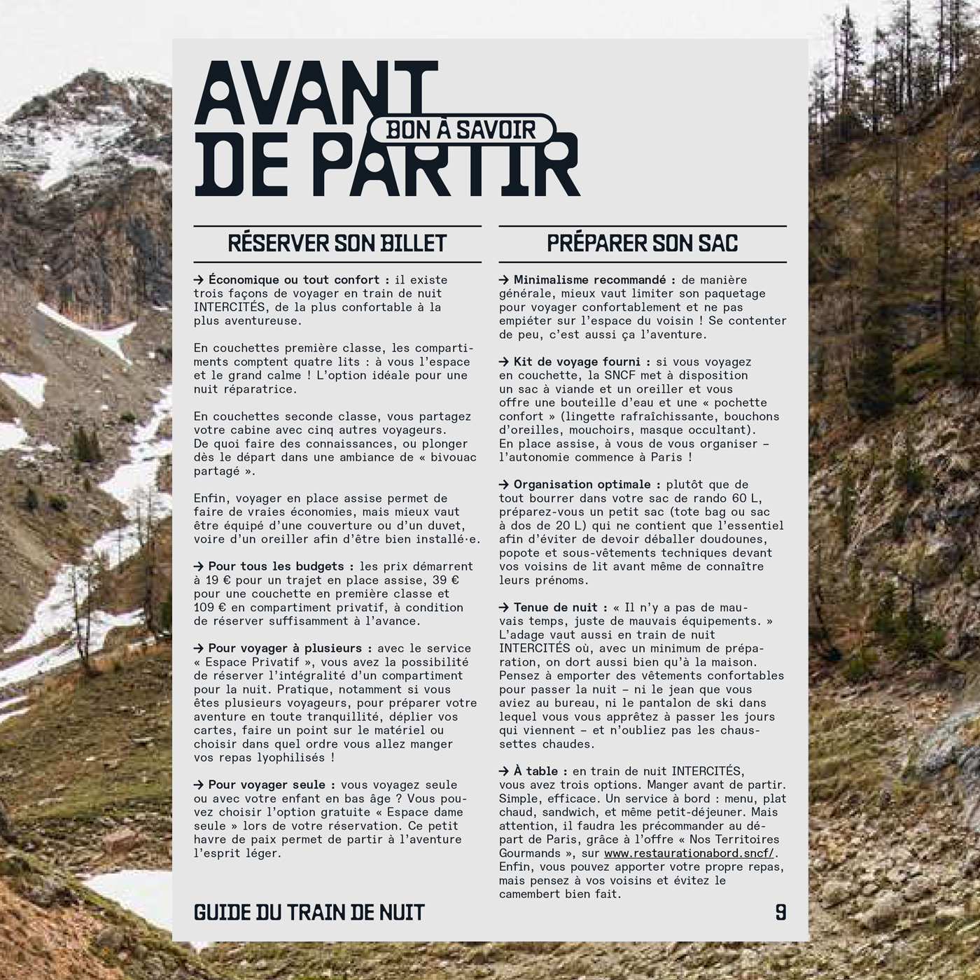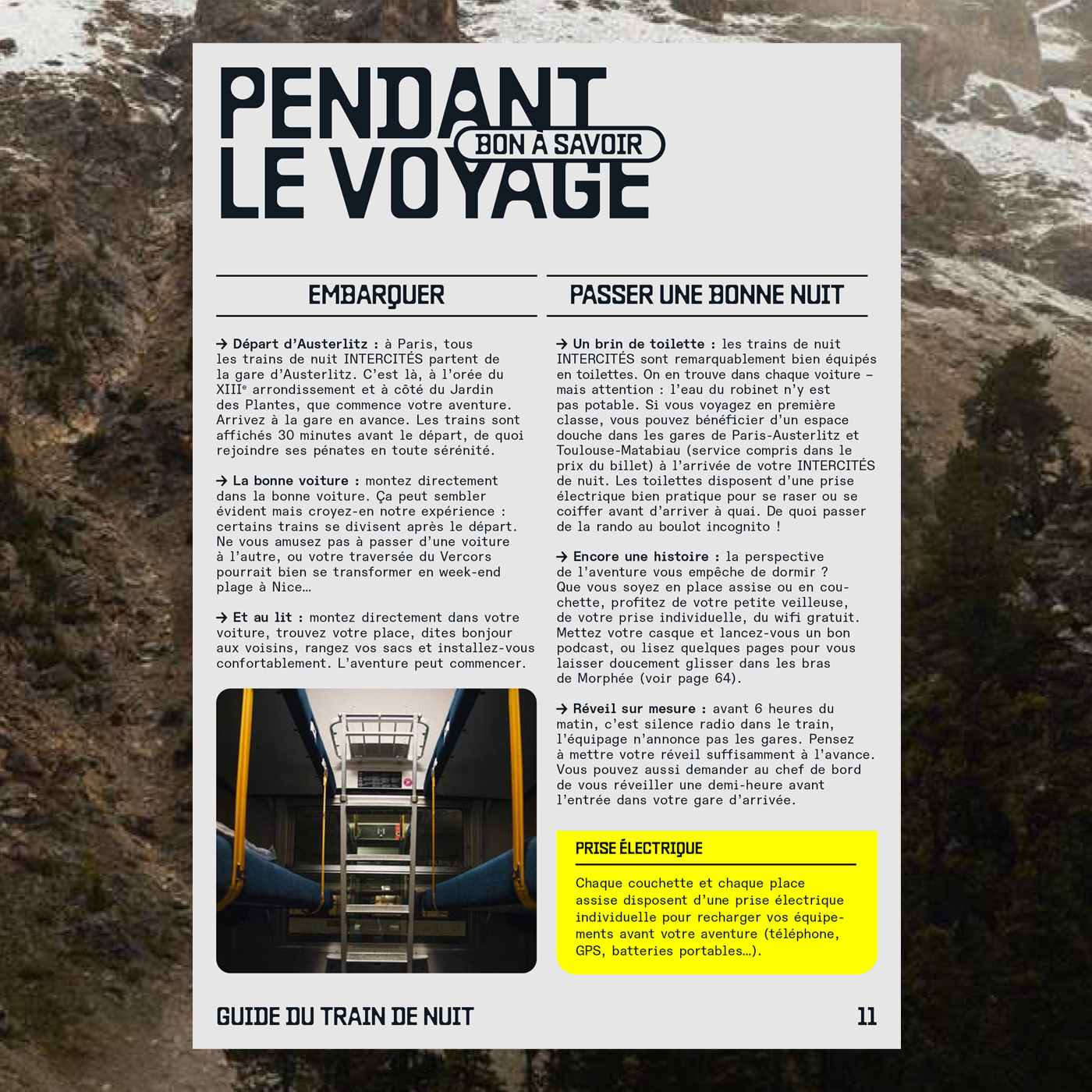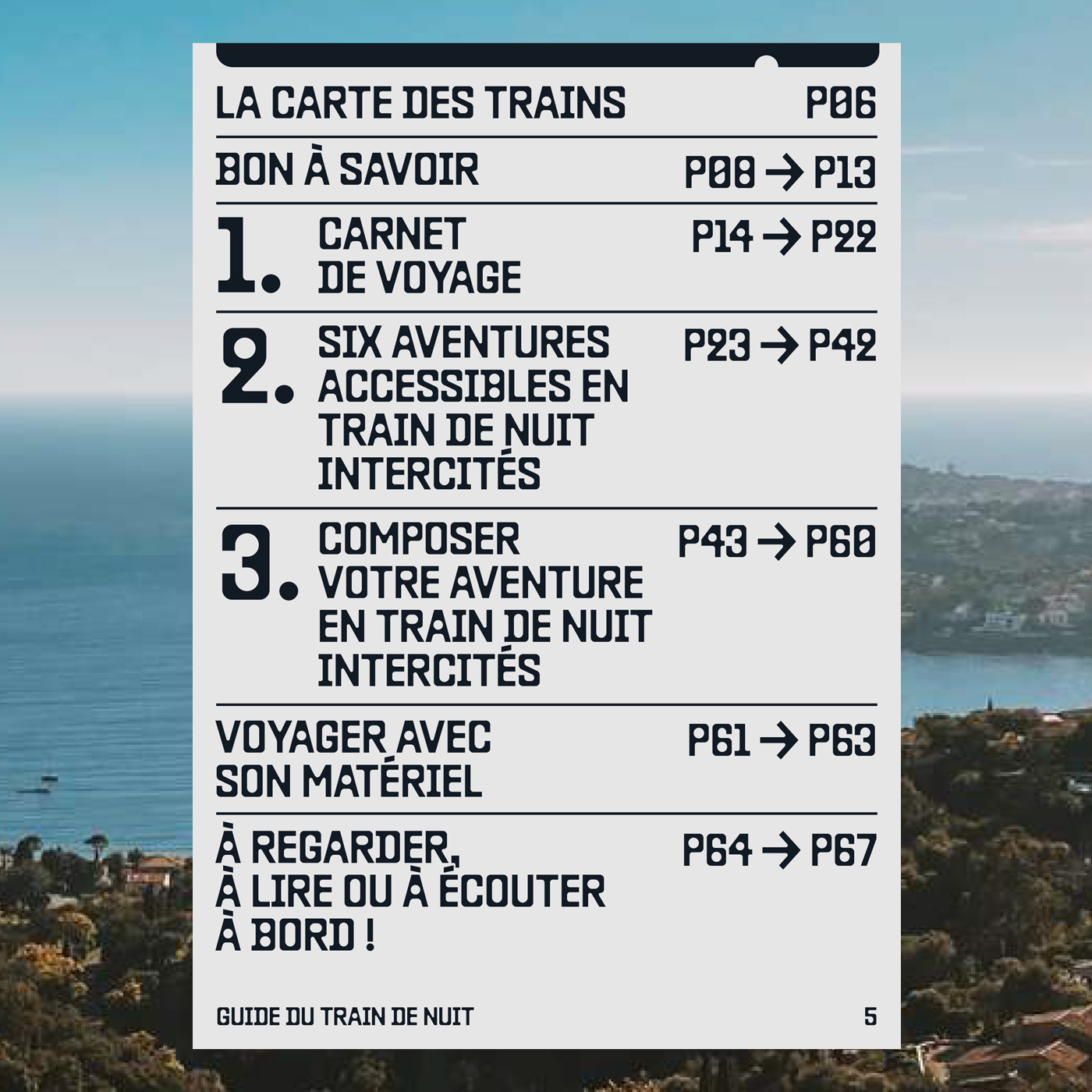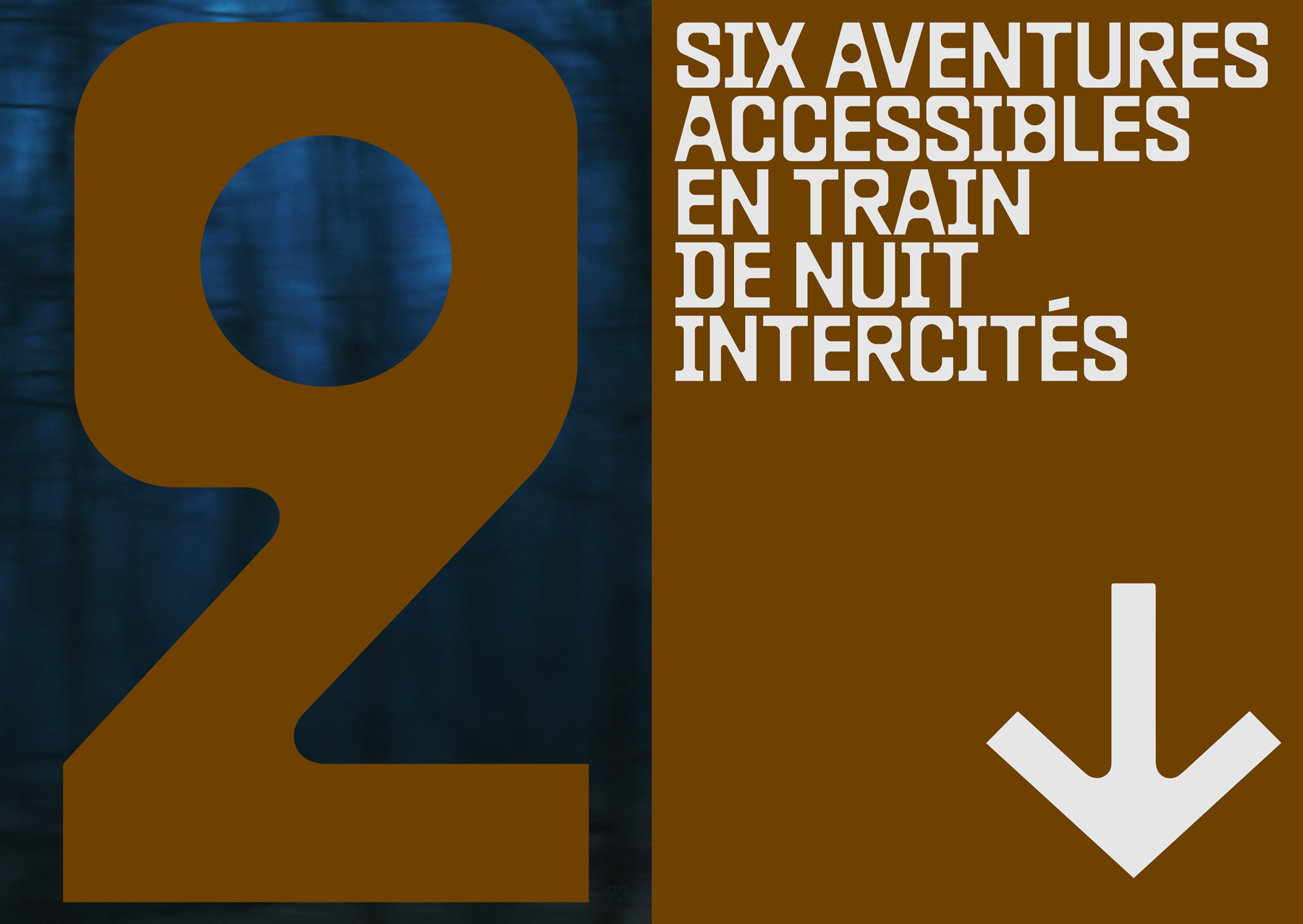 L’aventure en train de nuit (“Night Train Adventure”) is an e-book in pdf format designed by Les Others. Baste B (available at Lift Type) is used for all titles, running headings and page numbers. ABC Diatype and Diatype Semi-Mono (including a yet unreleased Semi-Mono Condensed) by Dinamo as well as LL Catalogue by Lineto are used for text and small information.