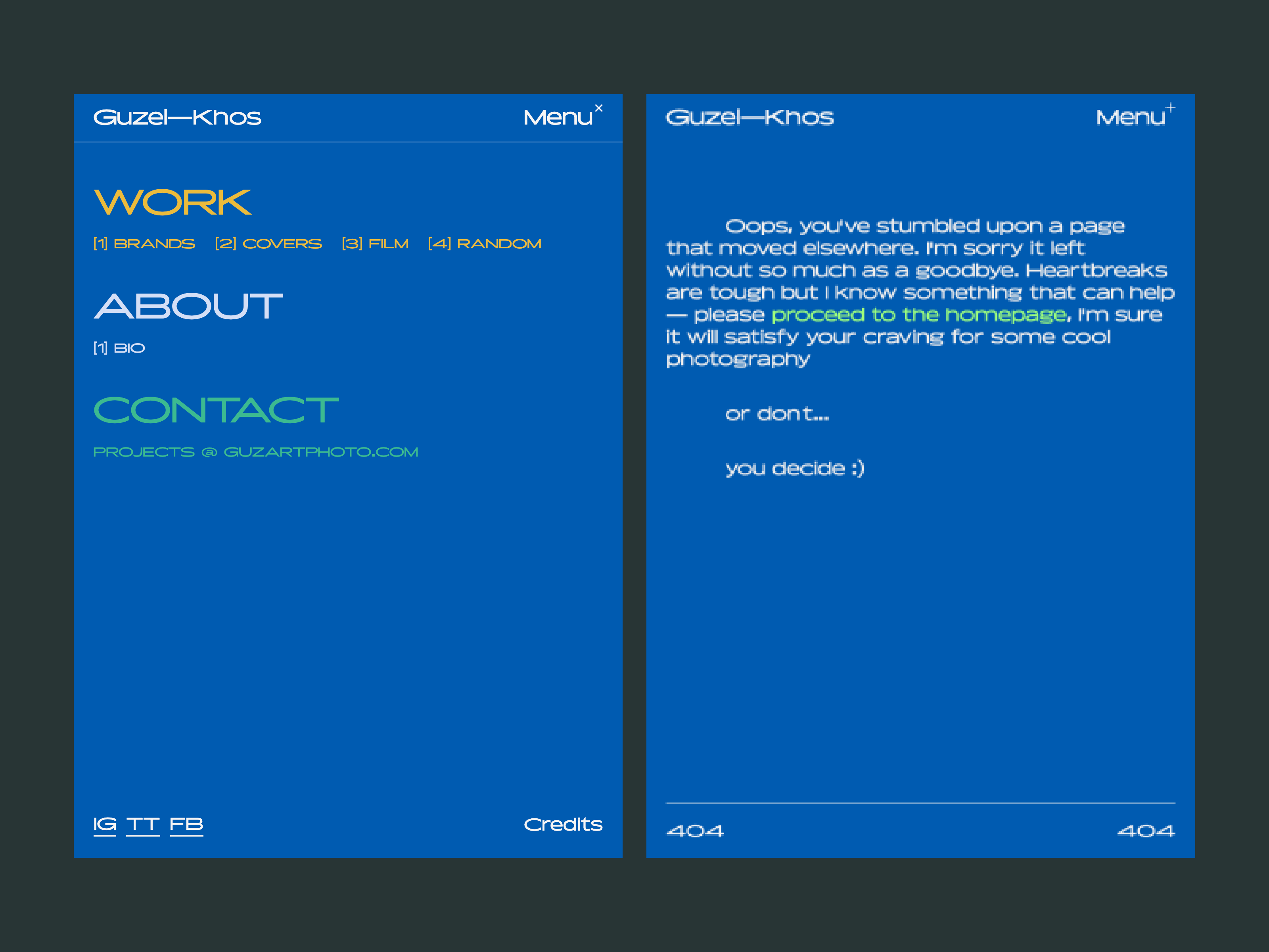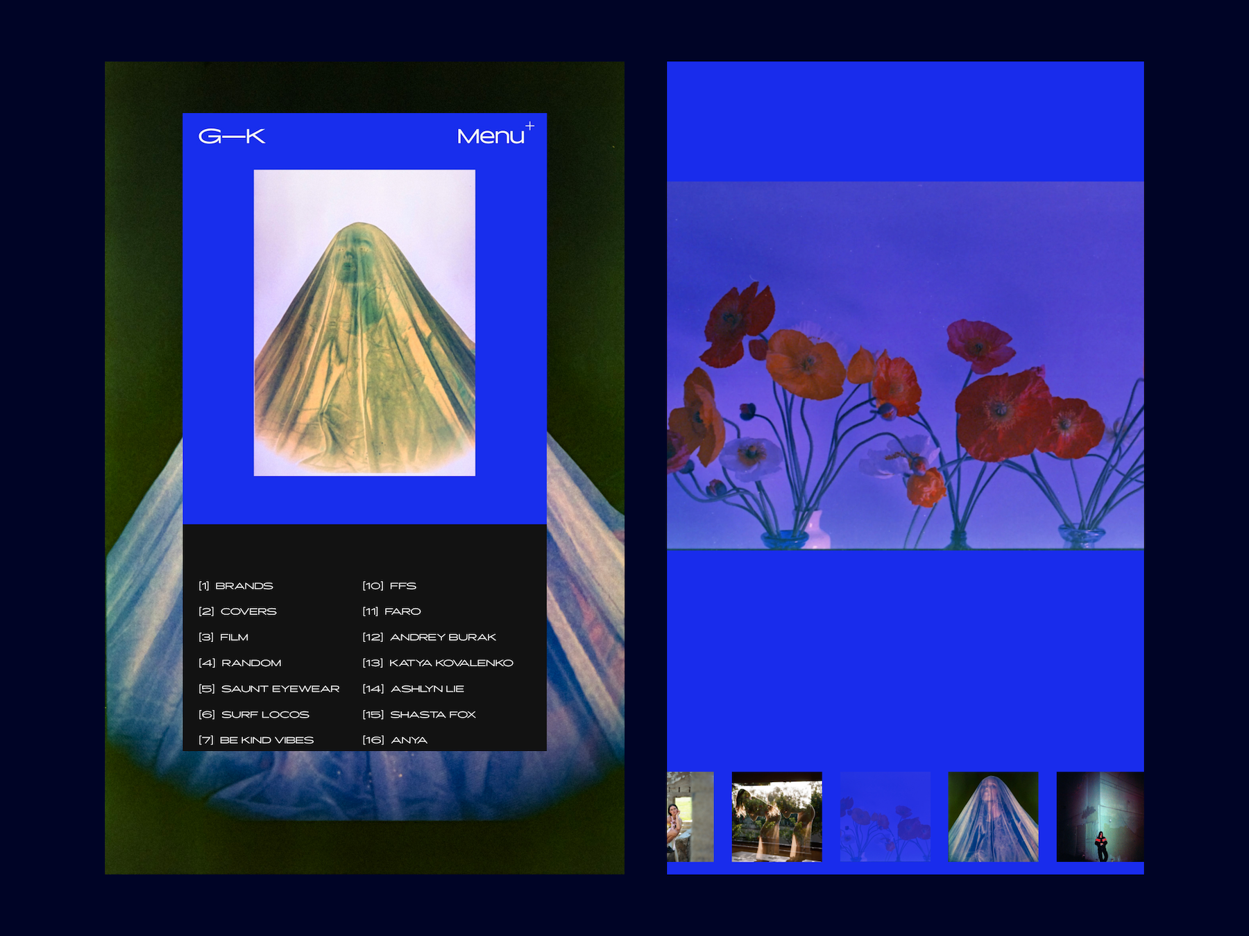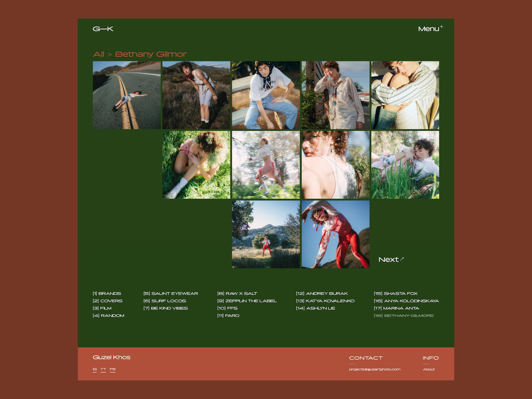 Designed by Alena Pankratova, San Diego based designer and brand strategist, the new website for photographer Guzel Khos is set in Rigatoni.