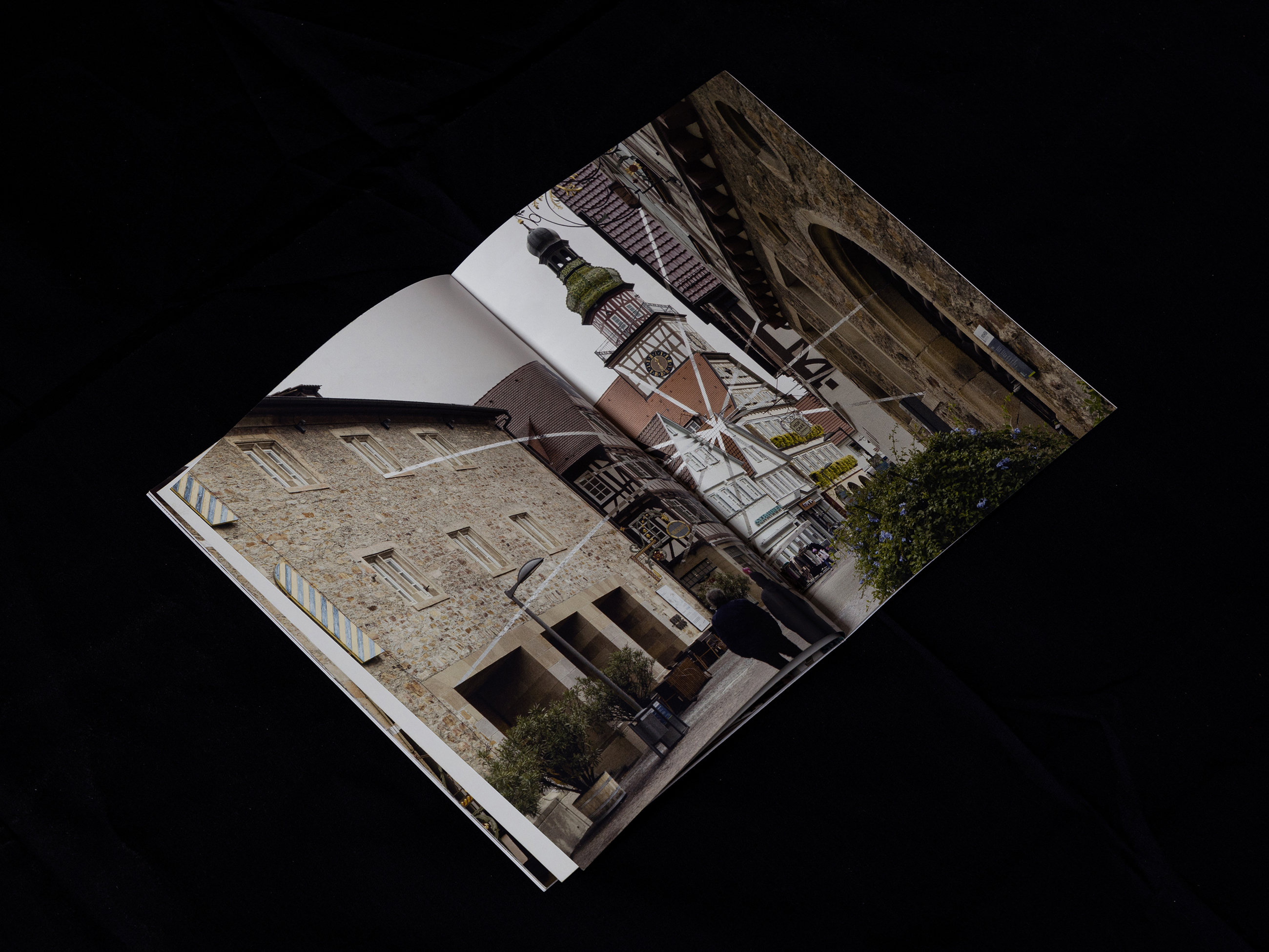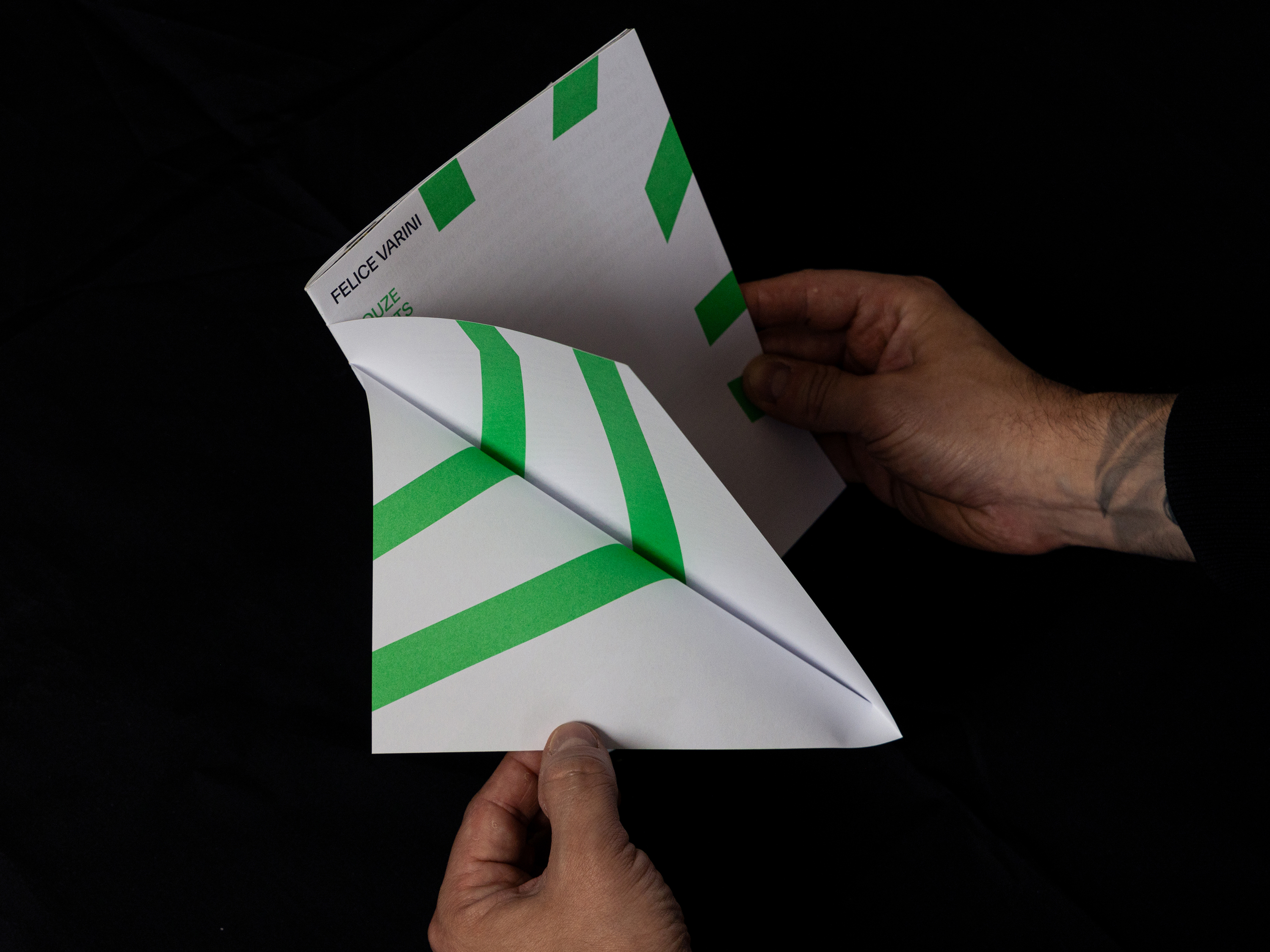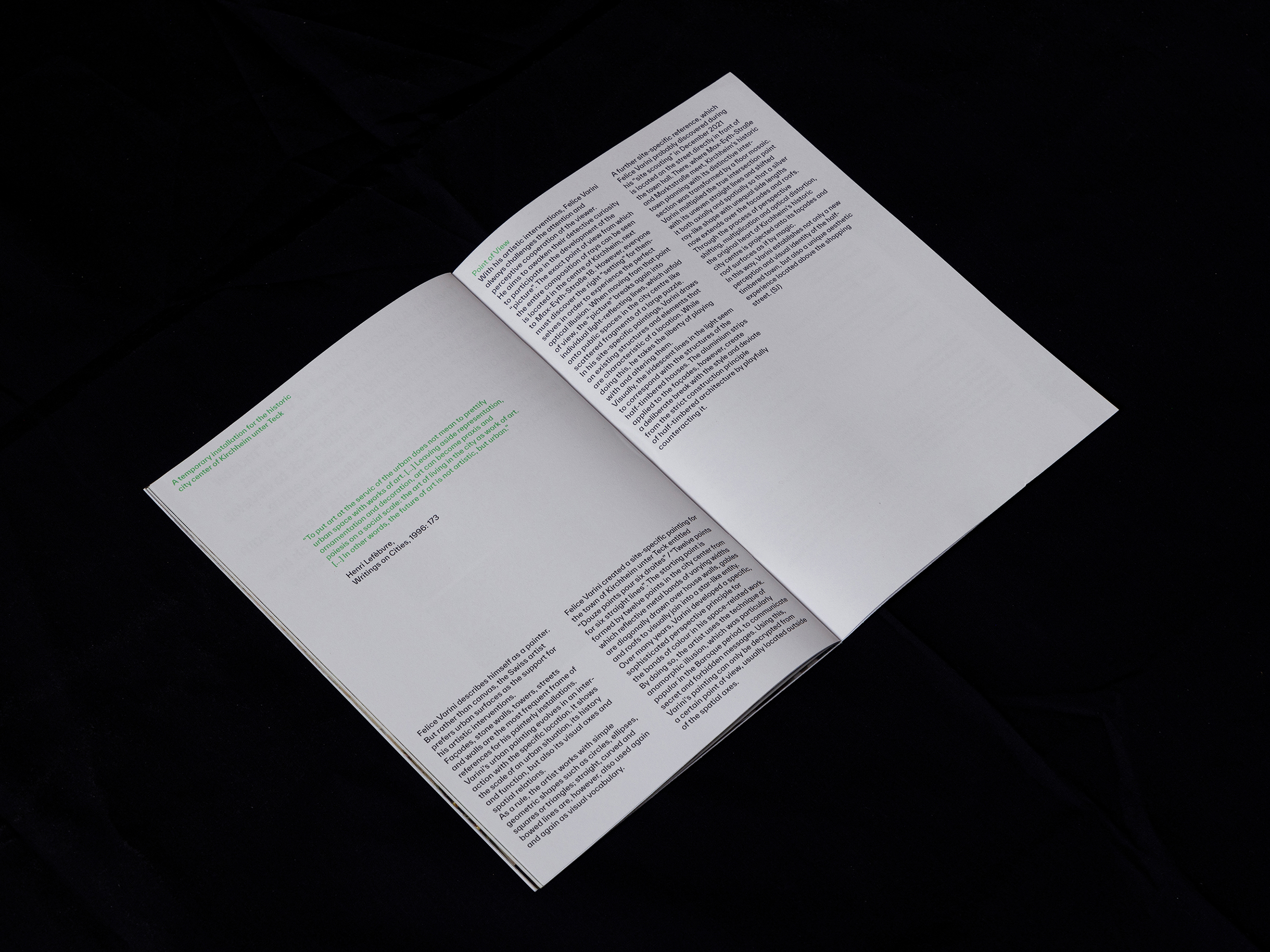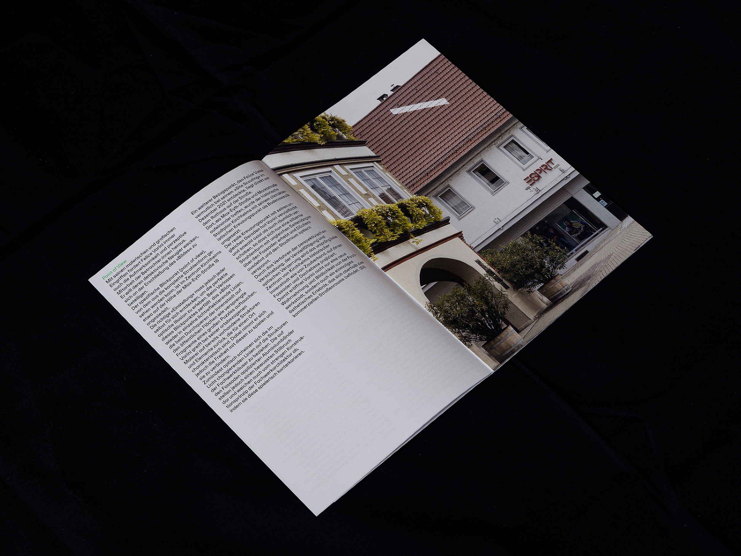 Small publication we’ve designed on the occasion of the Felice Varini’s opening at the Städtische Galerie Kirchheim [municipal gallery of Kirchheim]. Similar to Varini’s work the lines crossing the cover and the backcover are connected and visible from a special point of view, while continuing on the pages in between.
