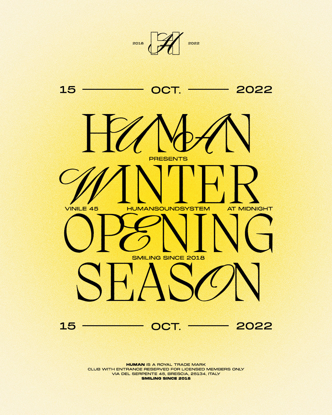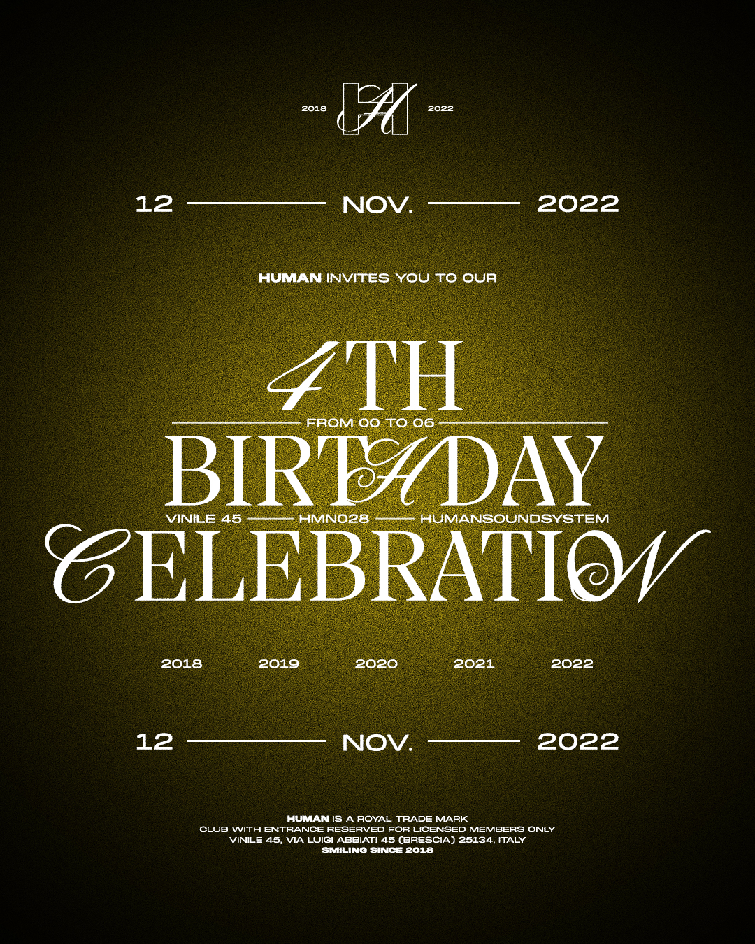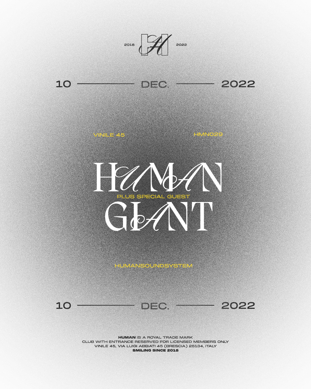 HUMAN is an electronic party that was born in Brescia, Italy, in 2018 at Vinile 45. The project is completely self-produced and organized by six artists, DJs and music lovers, who come together trying to make a significant contribution to the local nightlife.