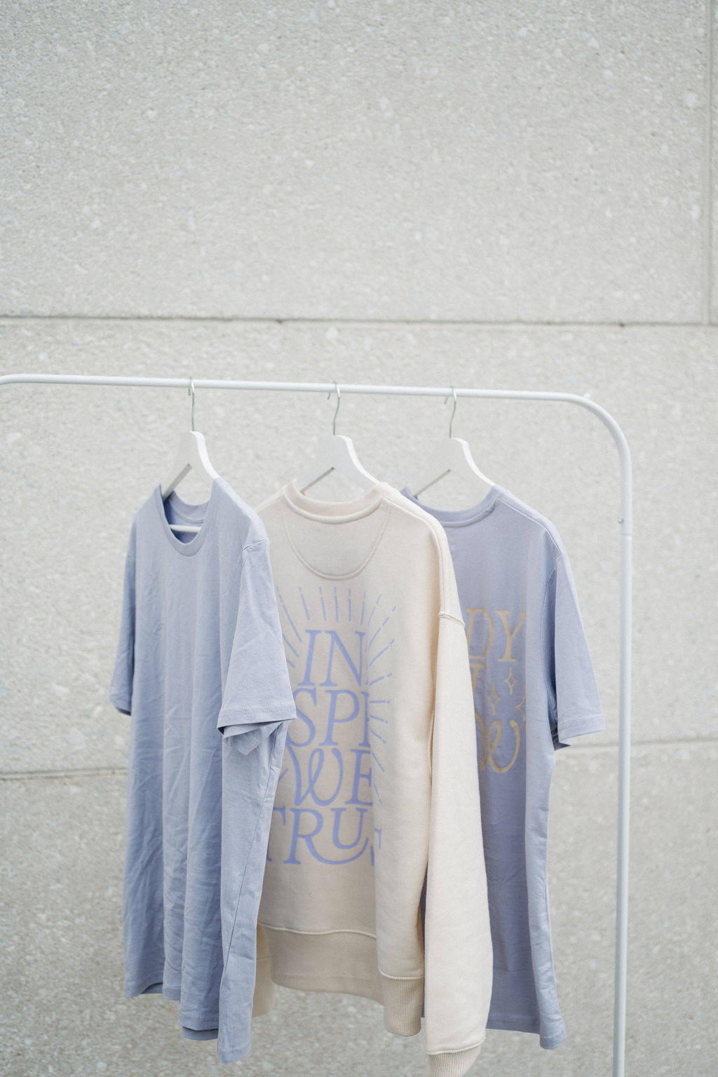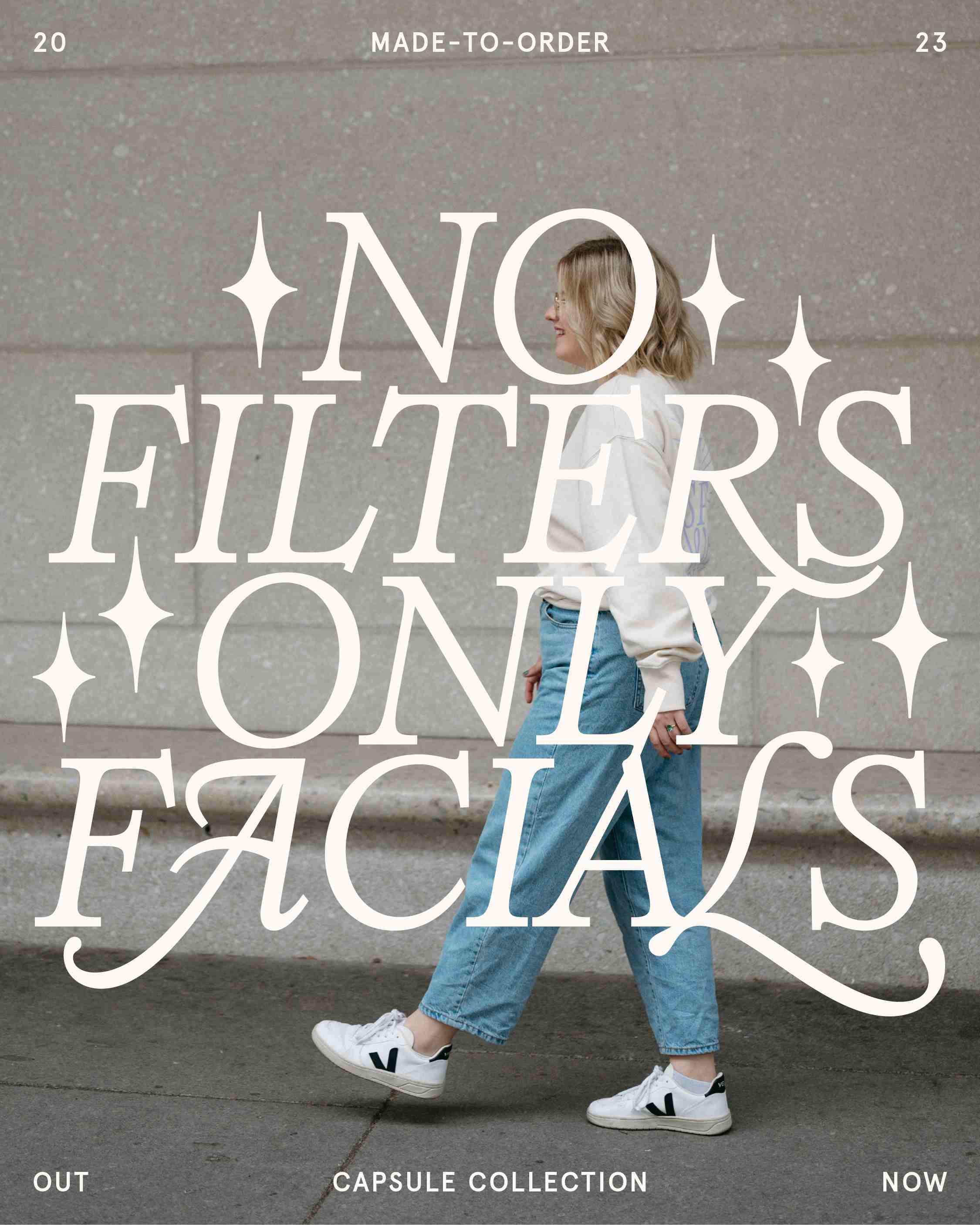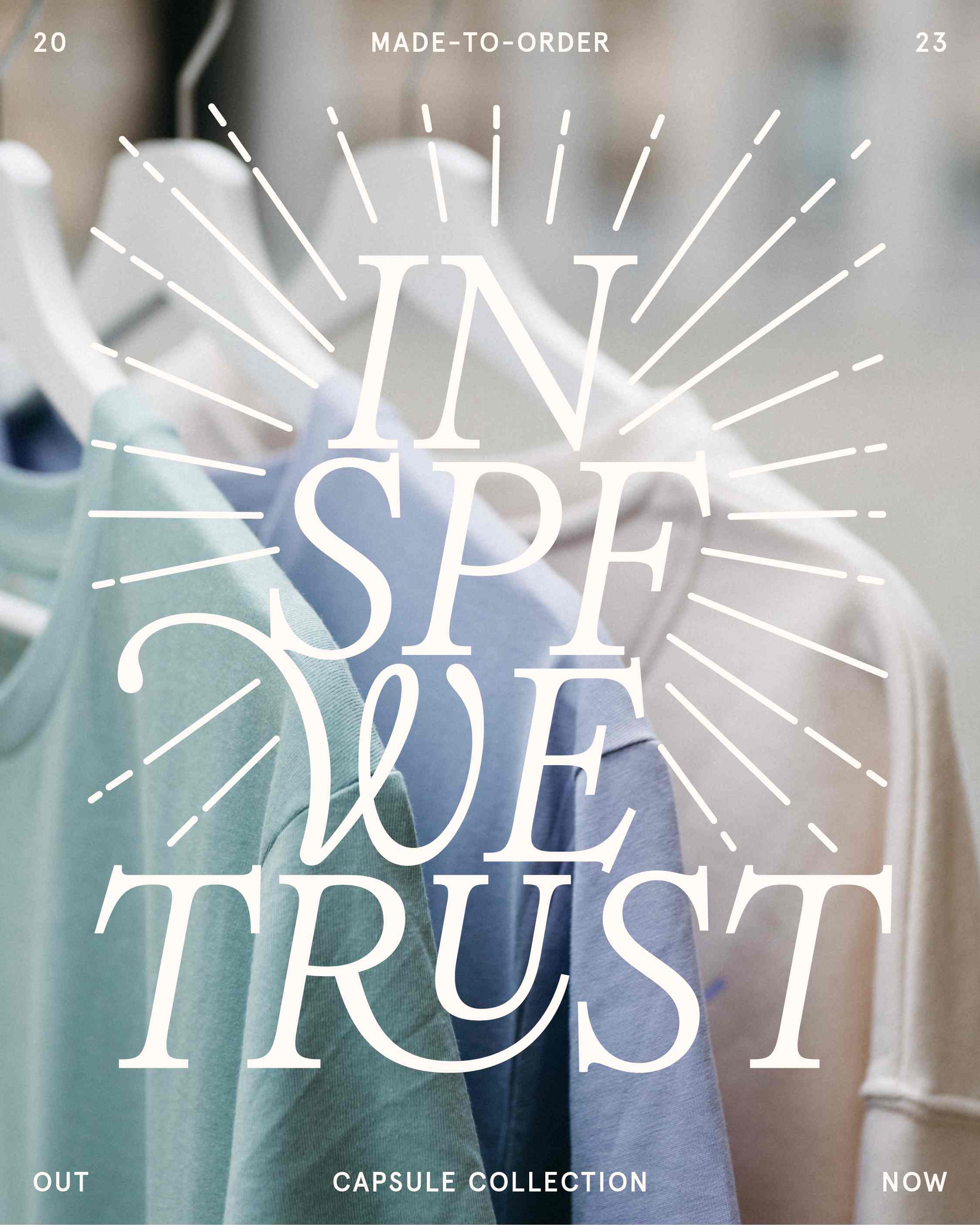 Both the apparel and the promotion for the collection was designed with the typeface Romie Italic by Margot Lévêque. The font has been vectorized and customized, with additional outlines added by the designer. The approval for such a customization had to be granted beforehand. The accompanying sans is Aperçu by Colophon.