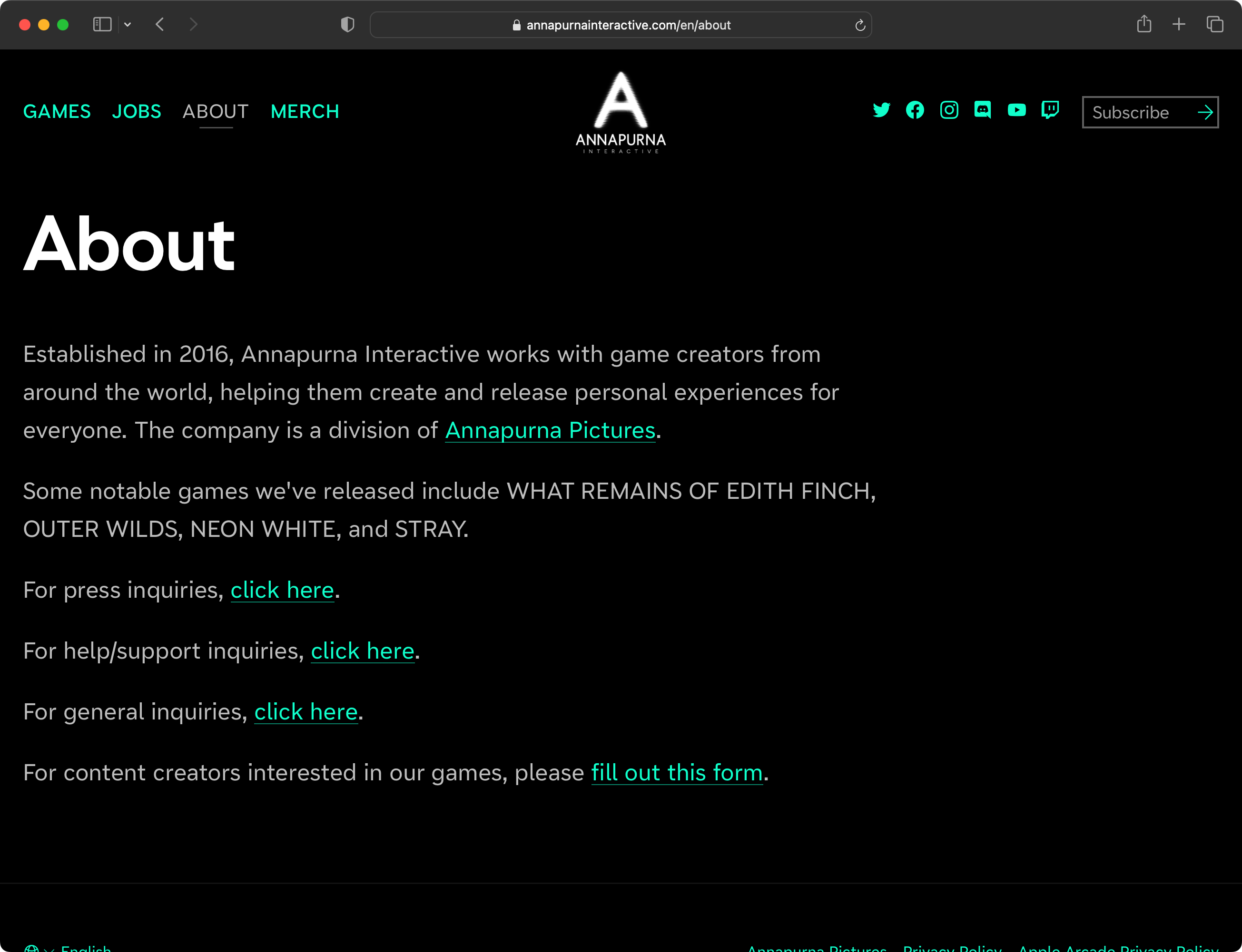 From Annapurna Interactive’s About page: