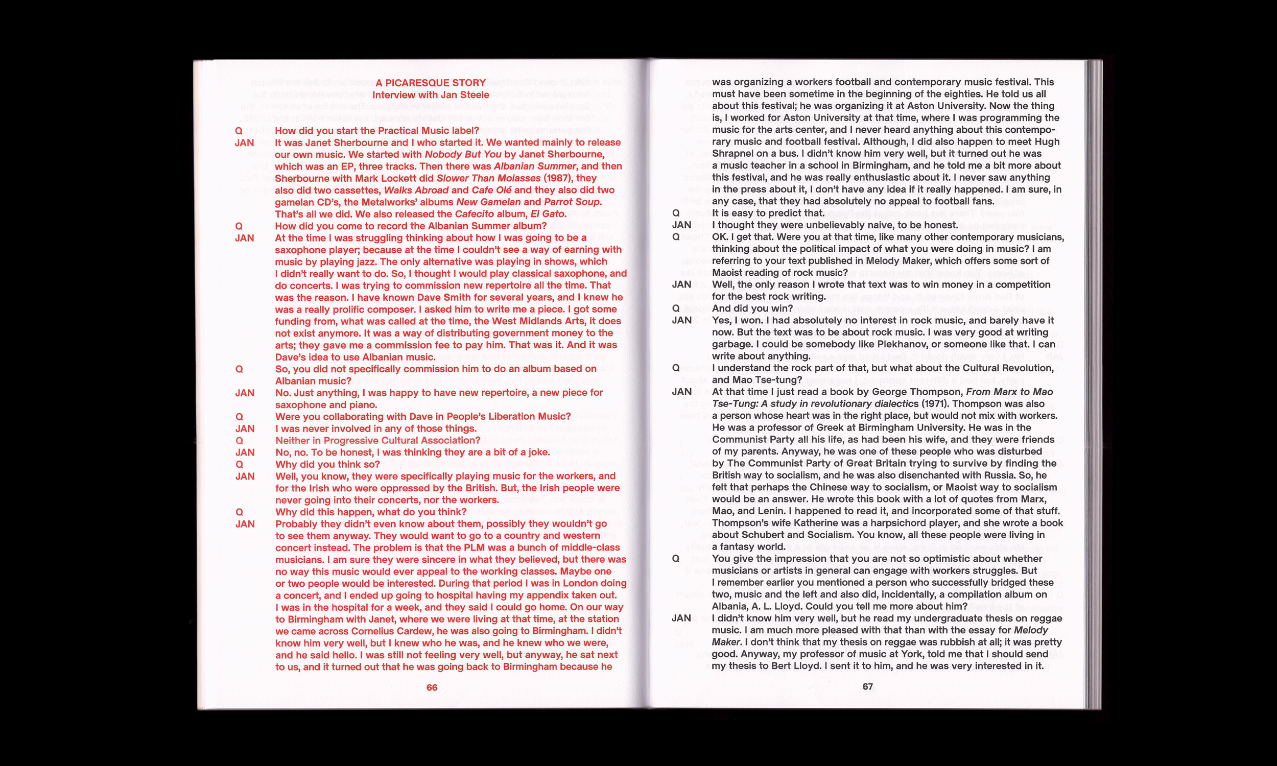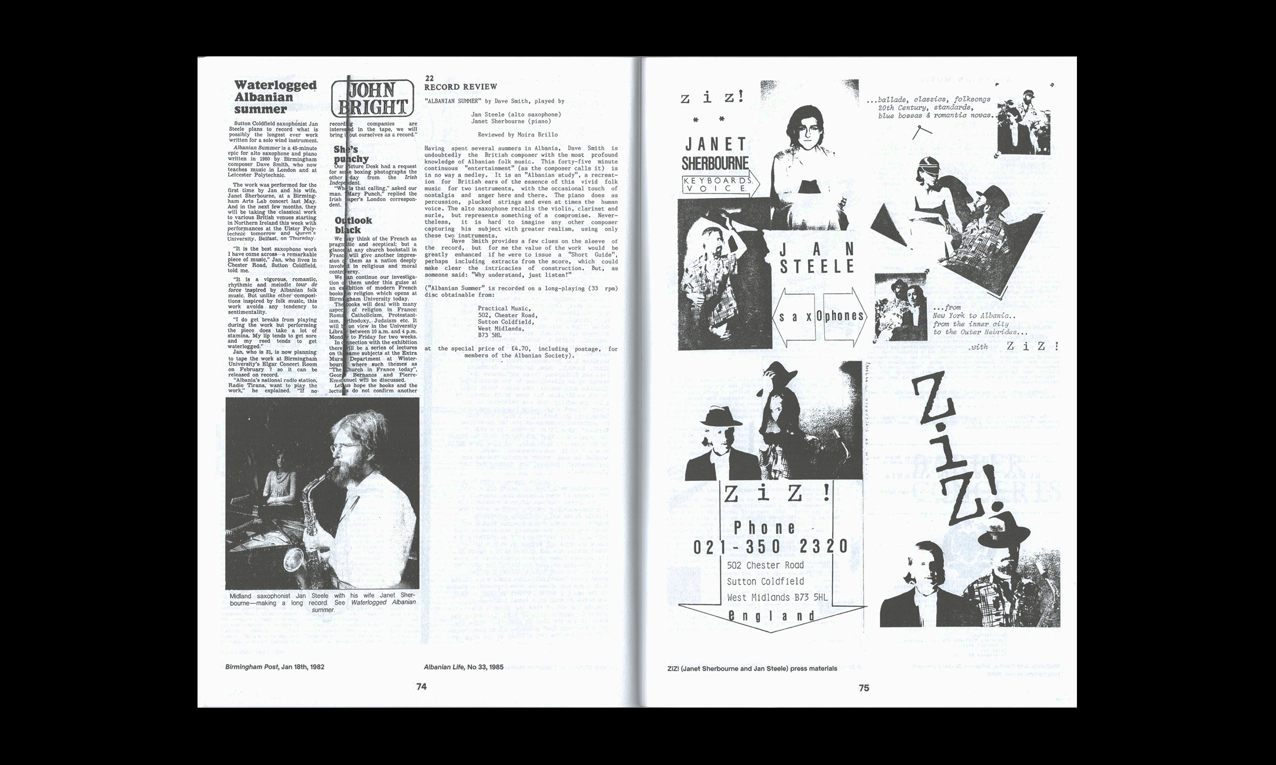 From Scratch is a story of Albanian Summer: An Entertainment, an LP album released by Practical Music in London in 1984. The album was composed by Dave Smith, musician and a member of The Scratch Orchestra, and performed by Janet Sherbourne and Jan Steele, improvised and classical musicians. Through interviews, archival materials, and hard-to-find essays the publication contextualizes the background of British experimental musicians’ interest in socialist Albania. It includes new interviews with Dave Smith and Jan Steele, three essays by Smith on Albanian music and culture, an essay by Gavin Bryars on Smith’s music, discussions on the influence of A.L. Lloyd and Cornelius Cardew, and the role of the Albanian Society in the UK.
