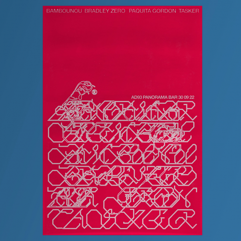 AD93 Label Party at Panorama Bar Contributed by Victor Gérard on Aug 10th, 2023. Artwork published in 2022. Source: ad93.ltd License: All Rights Reserved. Poster for a label party by AD 93, a London-based record label run by Nic Tasker. The party took place at Panorama Bar, Berlin, in September 2022. Design by Nicola Tirabasso, using Aldiviva and a yet unidentified sans. Typefaces More about AldivivaMore about unidentified typeface Formats Posters/Flyers (5780) Topics Music (6371) Designers/Agencies Nicola Tirabasso (1) Tagged withelectronic music (587)AD93 (1)experimental (90)concert & gig posters (514)only type (1284)overlayered type (167) Artwork location Germany (3882) Berlin (1152) In SetsLM (Amy Chen) (66)PHANTA (Leonardo de la Fuente) (285)music (Kirstin) (92) Post a comment Name Email – will not be published Website Your response Submit Comment More Aldiviva in use “Trust Truth” poster2020Specht StudioContributed by Victor Gérard El Hardwick – 8 album art2020Samara JundiGareth HornerContributed by Victor Gérard Mikey Sibson press kit 20222022Giulia BoggioContributed by Giulia Boggio Sponsor More in Music Mongo Santamaria – Mongo’s Way album art1971Stanisław ZagórskiContributed by Florian Hardwig Ingranaggi 20242024Cobra StudioContributed by Cobra Studio Walter Wanderley – Rain Forest album art1966Acy LehmanContributed by Nathan Prost Raveena – Lucid album art2019FISKBijan BerahimiContributed by Stephen Coles Staff Pick More in Posters/Flyers J’habite ici, à Saint-Ouen!2020Eddy TerkiContributed by Production Type 25 Years Tresor2016Vanja GolubovicContributed by Stephen Coles Staff Pick Brussels Museums Nocturnes 20182018Specht StudioContributed by Stephanie Specht Staff Pick Sam Fox fall events calendar2017Audrey Taylor PalmerContributed by Audrey Taylor Palmer More Fonts In Use New Zealand banknotes (Series 7)2015Canadian Banknote Company Ltd.Contributed by Florian Hardwig Blog Klaus Johann Grobe concert poster2018Michael SallitContributed by Michael Sallit Staff Pick Luxemburg Philharmonic Orchestra2012PentagramContributed by Indra Kupferschmid Staff Pick Théâtre Olympia, Saison 24/252024Cylindre StudioContributed by Formagari Staff Pick