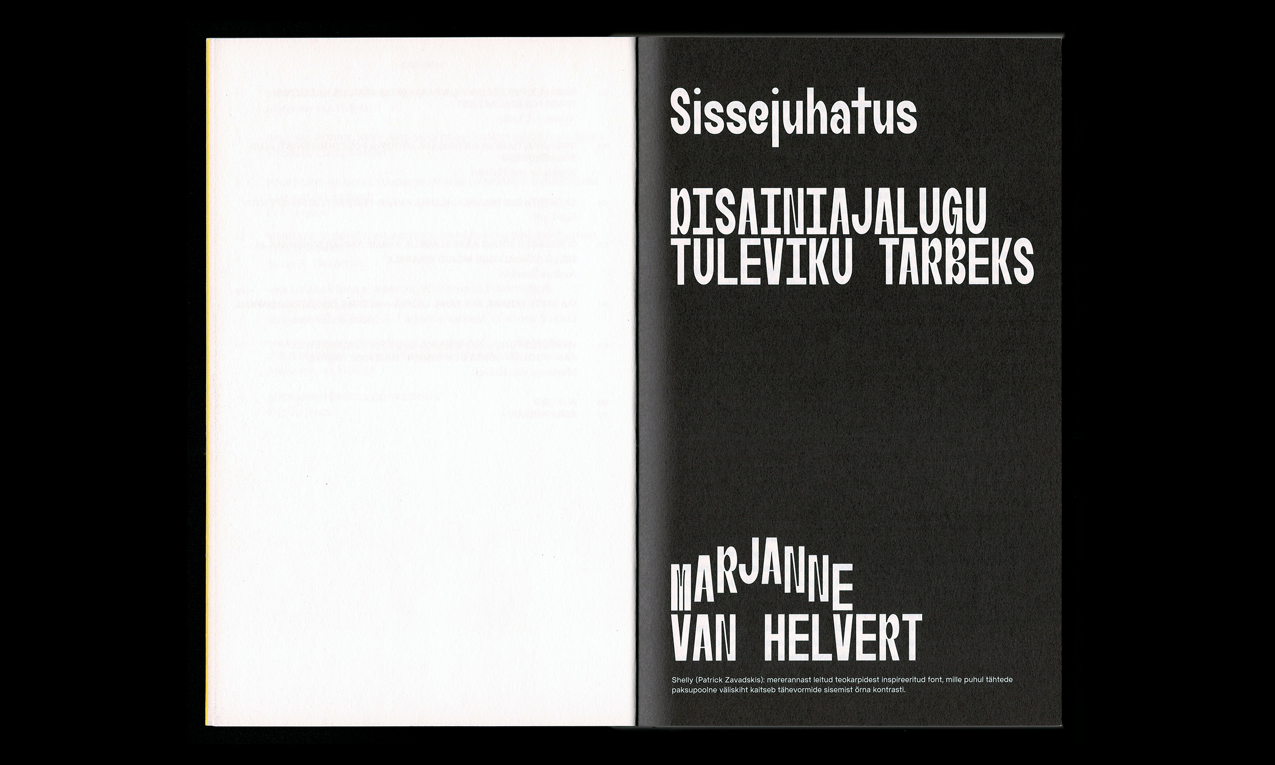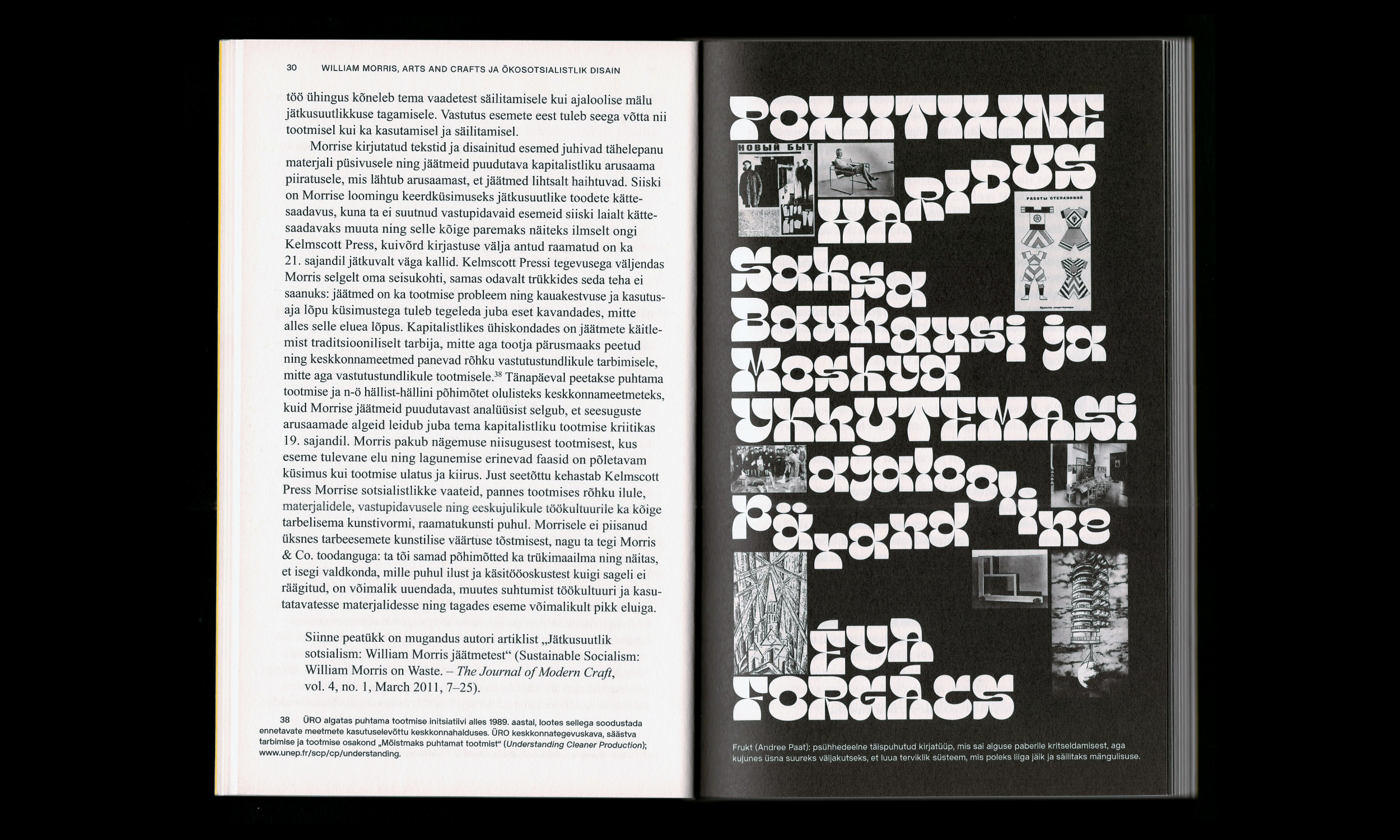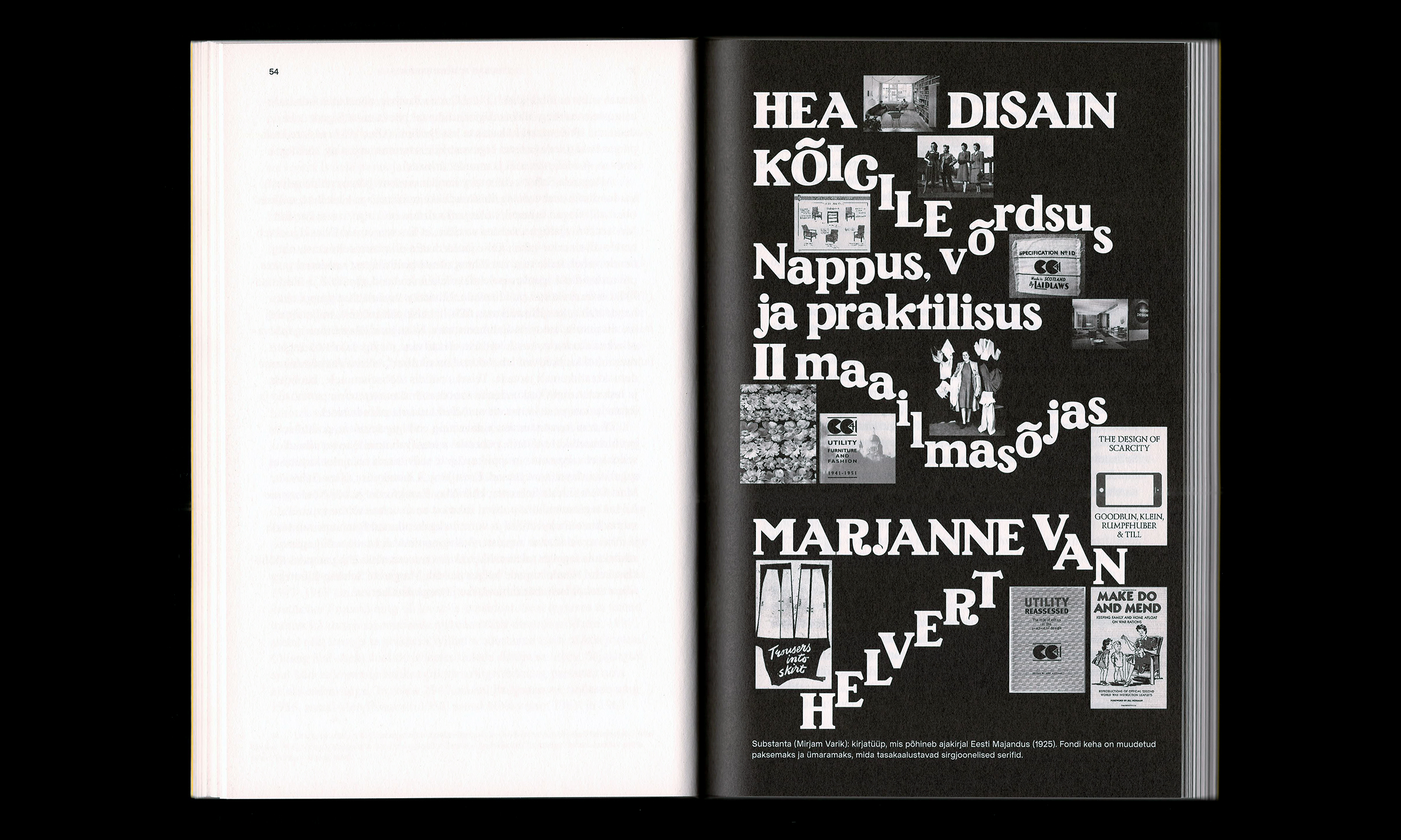 Estonian translation of The Responsible Object. A History of Design Ideology for the Future by Marjanne van Helvert (originally published in 2016 by Valiz), published in 2022 by EKA Press (Eesti Kunstiakadeemia Kirjastus), translated by Keiu Krikmann and designed by Ott Kagovere. The title page of each chapter of the book features a different typeface by an Estonian designer.
