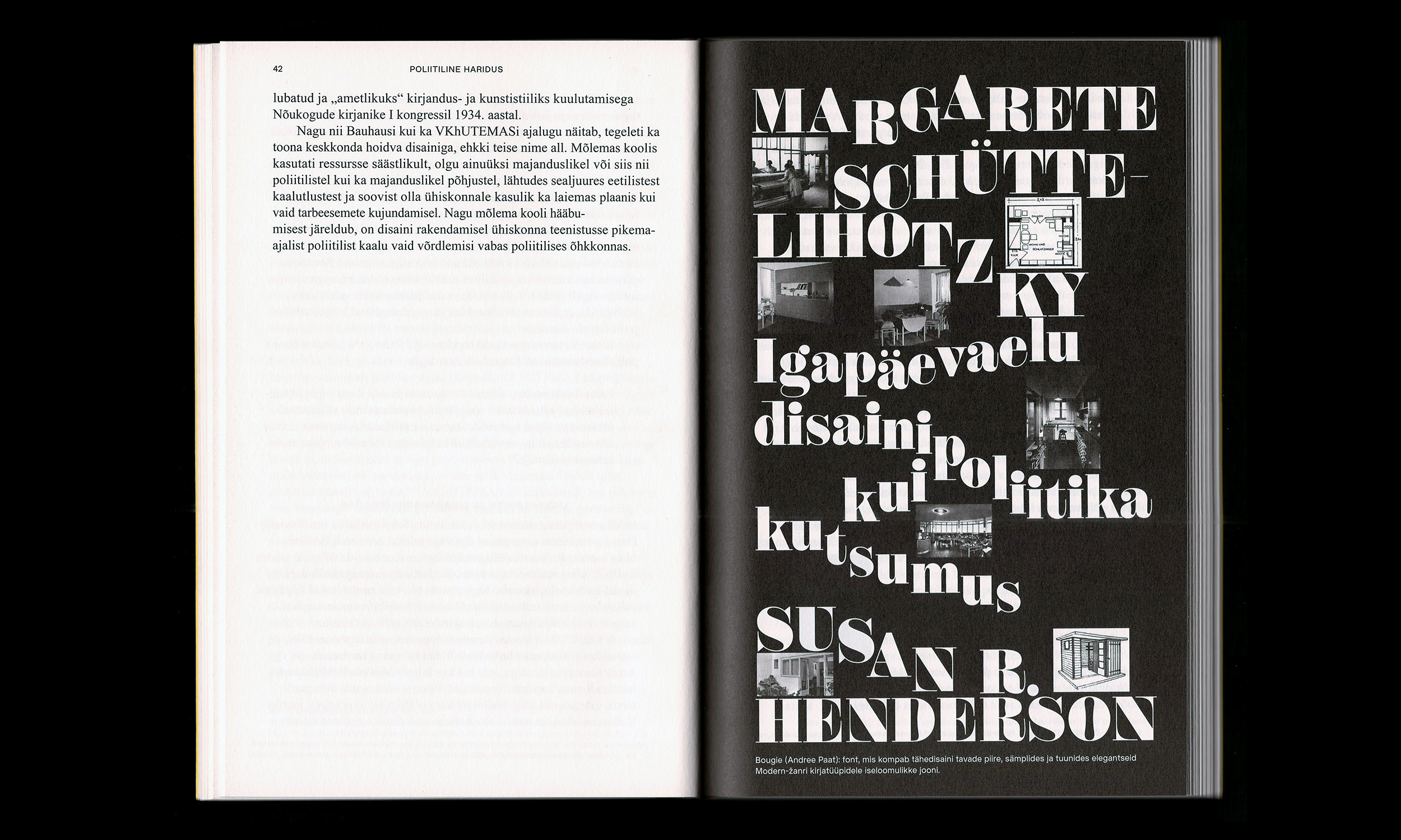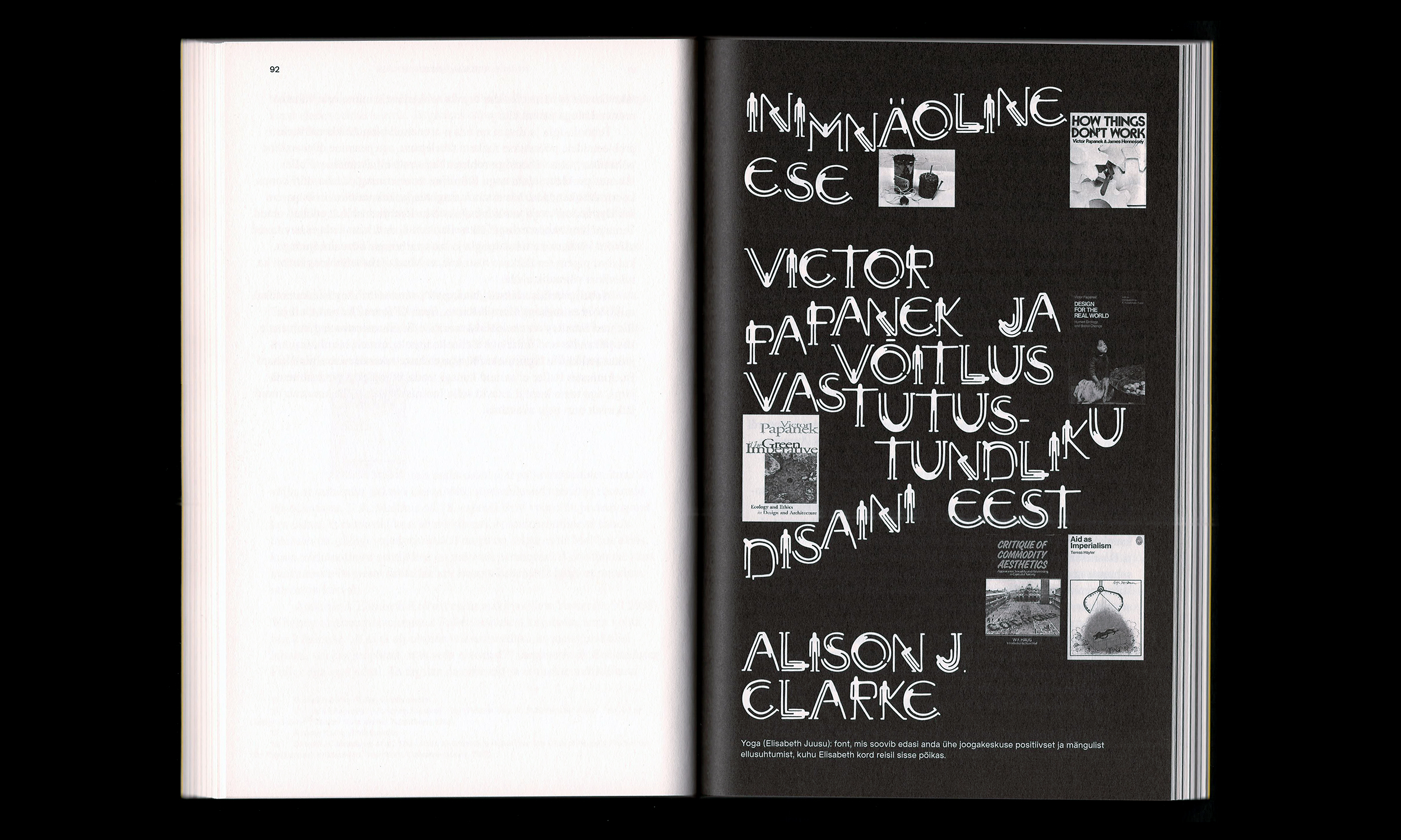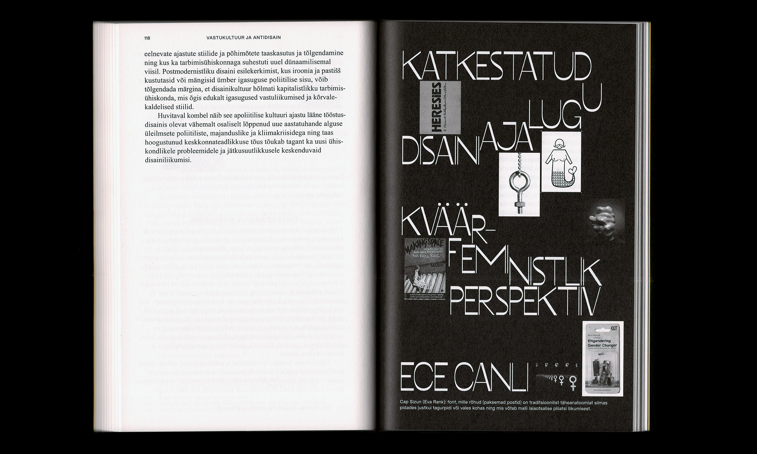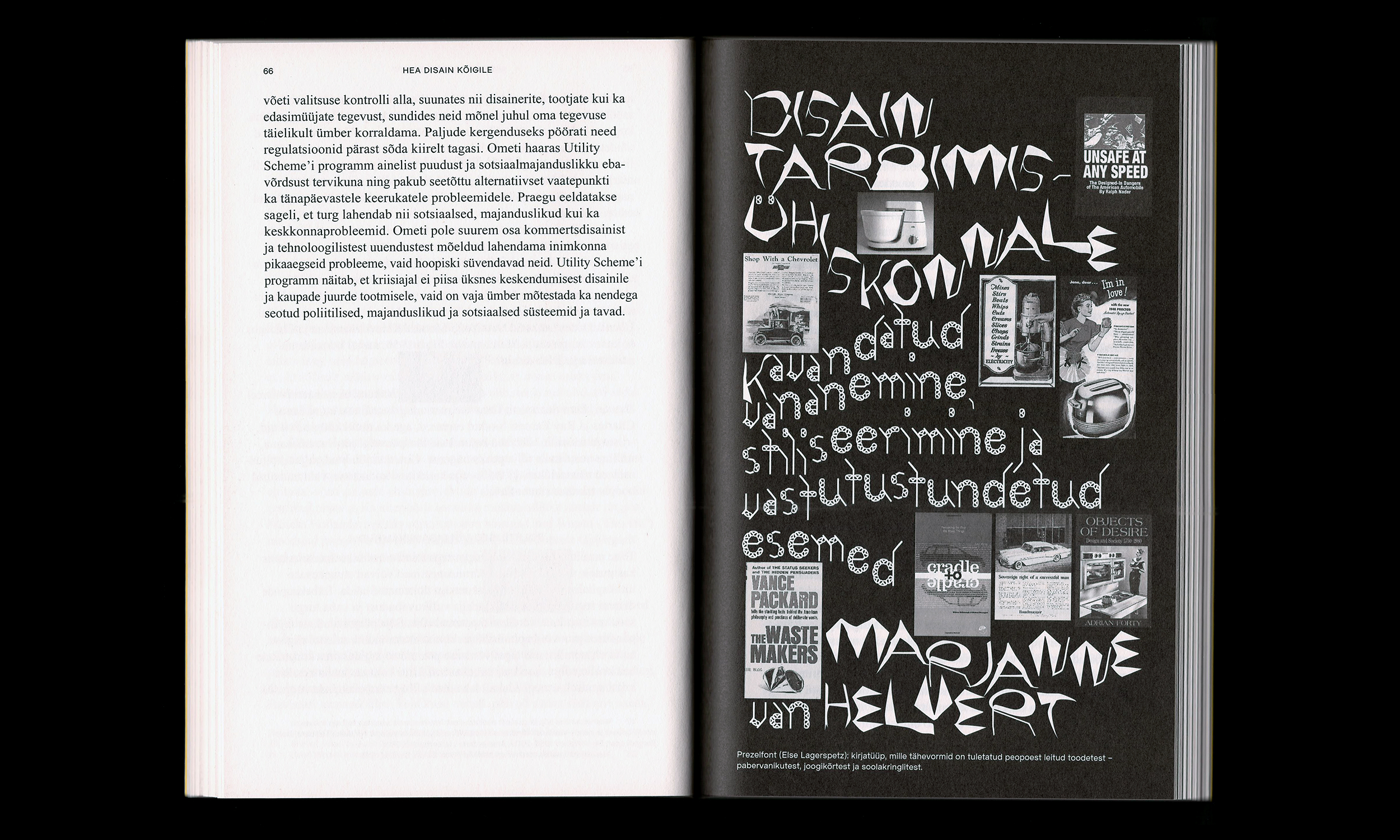 Estonian translation of The Responsible Object. A History of Design Ideology for the Future by Marjanne van Helvert (originally published in 2016 by Valiz), published in 2022 by EKA Press (Eesti Kunstiakadeemia Kirjastus), translated by Keiu Krikmann and designed by Ott Kagovere. The title page of each chapter of the book features a different typeface by an Estonian designer.