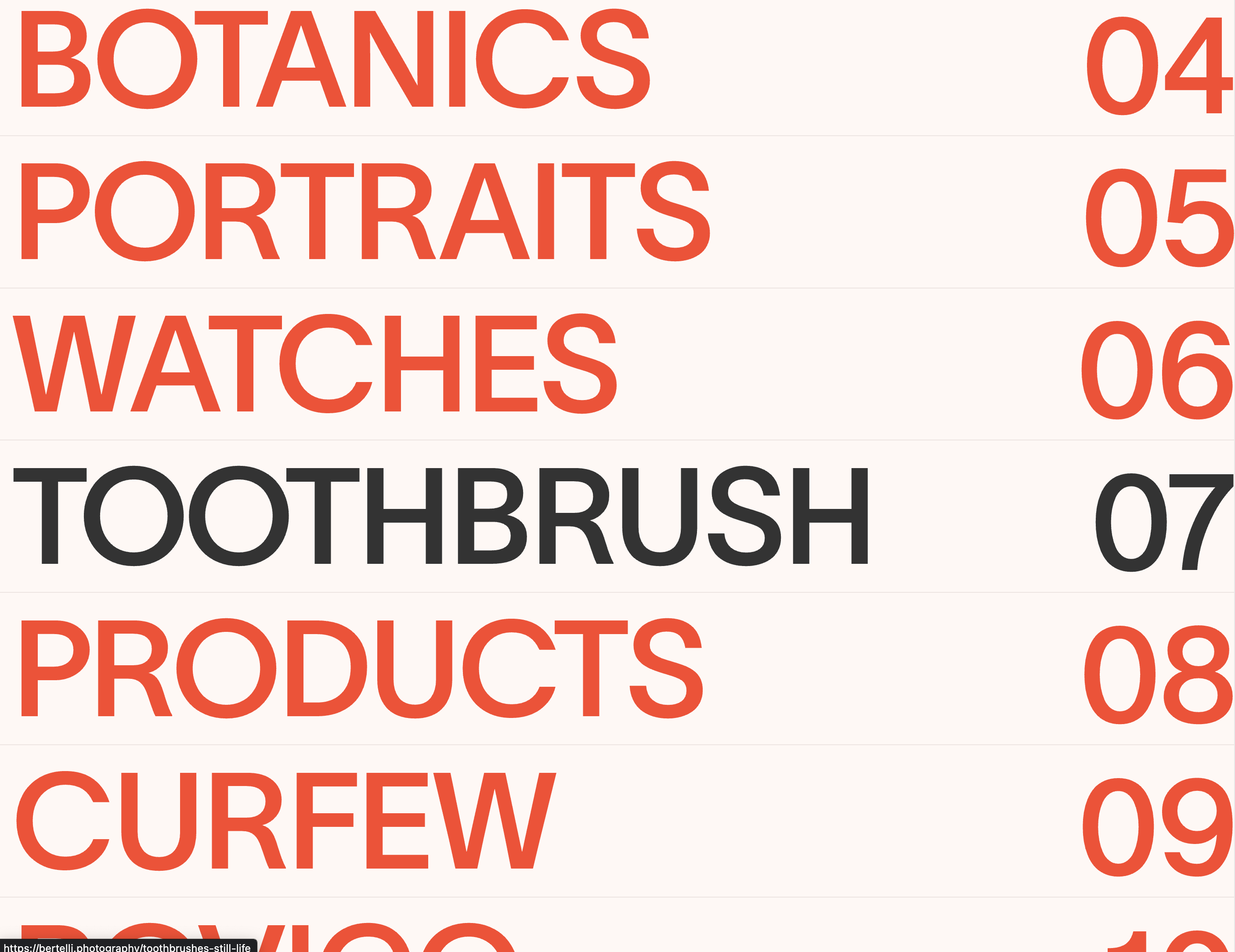 Francesco Bertelli website Contributed by Francesco Bertelli on Sep 1st, 2023. Artwork published in circa 2023. Source: bertelli.photography Francesco Bertelli. License: All Rights Reserved. A super simple but bold use of TWK Lausanne for my portfolio website. Source: bertelli.photography Francesco Bertelli. License: All Rights Reserved. Source: bertelli.photography Francesco Bertelli. License: All Rights Reserved. Typefaces More about TWK LausanneGet TWK Lausanne Formats Web (5527) Topics Services (1530) Art (4581) Designers/Agencies Francesco Bertelli (2) Tagged withphotography (946)minimalist (521)websites (3482)portfolios (756)photographers (183)self promotion (318)big type (1709)one typeface (1741)all caps (7426)menus (UI) (548)red (816) Artwork location United States (9784) Brooklyn (255) New York City (2870) Post a comment Name Email – will not be published Website Your response Submit Comment More TWK Lausanne in use “Doing Finance” campaign by Rampc. 2023unknownContributed by WELTKERN® Typefaces Orka Beverage Company2024unknownContributed by WELTKERN® Typefaces “Fuzzy Buzzy” in feeeels magazine, No. 12019Ji Kimfeeeels magazineContributed by feeeels magazine Sponsor More in Services WhereverSimc. 2025HyperfocusContributed by Daniel McQueen (TDF) Türk Telekom logo (1995–2016)c. 1995unknownContributed by Alp Atalan Pasta Social Clubc. 2021Giulia BoggioContributed by Giulia Boggio Staff Pick Artware2024ArtwareContributed by TypeType More in Web Godfrey Dadich Partners website2017Godfrey Dadich PartnersContributed by Stephen Coles Staff Pick Łukasiewicz2020unknownContributed by TypeType Chronicle of Garage Museum of Contemporary Art2021Pavel KedzichContributed by Pavel Kedzich Staff Pick Studio HMVD2019Studio HMVDHeather-Mariah Violet DixonContributed by Ryan Leichty More Fonts In Use Enso magazine: Peter Behrens2017Anton HerasymenkoPavel KedzichContributed by Peiran Tan Staff Pick Inner Bloom2024GRUND—Creative StudioContributed by NaN Staff Pick Paul Simon – One-Trick Pony album art and movie poster1980Alan PeckolickLubalin, Peckolick AssociatesContributed by Stephen Coles Staff Pick Loretta’s New OrleansunknownContributed by Florian Hardwig Staff Pick