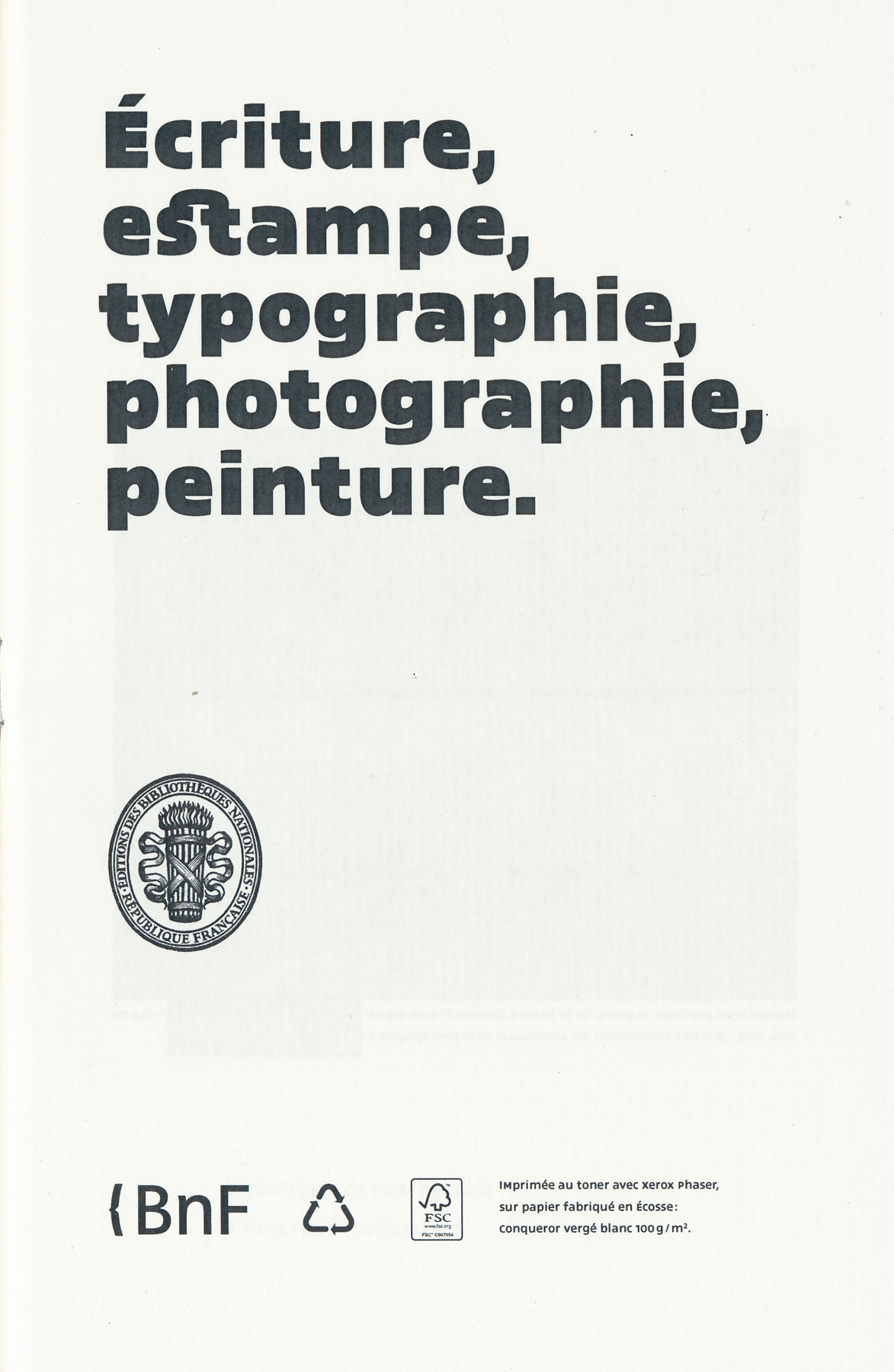 Écriture, estampe, typographie, photographie, peinture.
