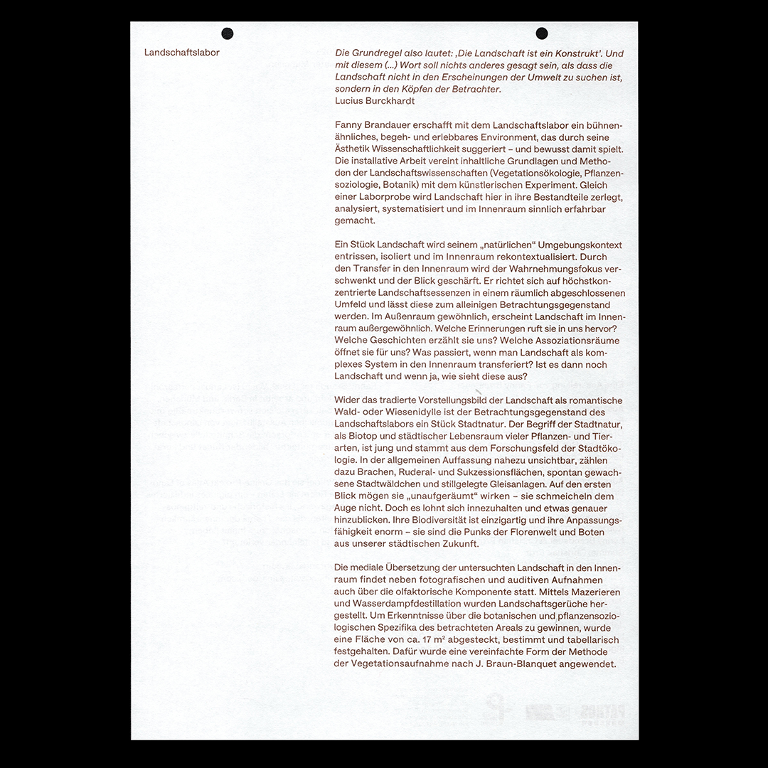 Landschaftslabor by Fanny Brandauer Contributed by HAL Typefaces on Oct 19th, 2023. Artwork published in March 2023. Source: fannybrandauer.com Fanny Brandauer. License: All Rights Reserved. Poster and pamphlet design for Fanny Brandauer's installation work Landschaftslabor (“landscape lab”), exhibited at Pathos Theater, Munich. Design by Carina Güttler and John Haag, set in HAL Four Grotesk by studio hanli, available from HAL Typefaces. Source: fannybrandauer.com Fanny Brandauer. License: All Rights Reserved. Source: fannybrandauer.com Fanny Brandauer. License: All Rights Reserved. Source: fannybrandauer.com Fanny Brandauer. License: All Rights Reserved. Source: fannybrandauer.com Fanny Brandauer. License: All Rights Reserved. Typefaces More about HAL Four GroteskGet HAL Four Grotesk Formats Posters/Flyers (5690) Ephemera (1202) Topics Science/Nature (1107) Art (4620) Designers/Agencies Carina Güttler (1) John Haag (1) Tagged withGerman (language) (2479)poster series (841)stamps (52)handmade (65)process (178)mid-word linebreaks (747)installation art (63)Pathos Theater (1)Fanny Brandauer (1)early uses (2201)tables (215)exhibition posters (736) Artwork location Germany (3827) München (290) In SetsHAL Typefaces (HAL Typefaces) (85)poster (miguel anønimo) (52) Post a comment Name Email – will not be published Website Your response Submit Comment More HAL Four Grotesk in use MCA Artbar: Spring2023SUPERMEGA__Contributed by HAL Typefaces On My Belly, On My Back2022Wolfe HallContributed by HAL Typefaces Cursing Bookmarksc. 2024Maryna ZevakoContributed by HAL Typefaces Sponsor More in Science/Nature Starship Troopers by Robert Heinlein (Four Square)1967unknownKarel TholeContributed by Bryson Stohr Molecular House visual identity and website2022Antton UgarteClara Briones VediaHermes GrauContributed by Antton Ugarte Jacques Rougerie – Habiter avec la mer exhibition2024Marc ArmandContributed by Production Type The Roswell Incident1980unknownContributed by Jack Grimes More in Ephemera Canadian Journey series notes2001unknownContributed by Stephen Coles Vesper Paris2022AbmoContributed by Production Type Edion-Eduard Müller advertising letterc. 1926Photo(s) by altpapiersammler on Flickr. Ditchling Museum of Art & Craft2013Phil BainesNatalie BrauneContributed by Phil Baines Staff Pick More Fonts In Use Teatro Contatto 372018Think Work ObserveContributed by WELTKERN® Typefaces Staff Pick Grand Theft Auto III (Sony PlayStation 2)2001Stephen BlissRockstar GamesDMA DesignContributed by Patrick Concannon Staff Pick Legendary reality competition show (HBO Max, 2020)2020Sibling Rivalry StudioHBOContributed by Felipe Dário Staff Pick Erginoğlu & Çalışlar – Zaman Cetveli / Time Scale exhibition catalog2025Ali Emre DoğramacıContributed by Ali Emre Doğramacı Staff Pick