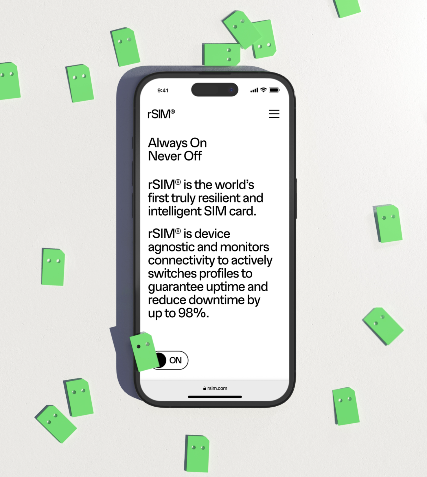 rSIM is the worlds first truly resilient SIM card. Resilience in technology is crucial for Security, Safety, Sales etc. We teamed up to help support rSIM’s mission and build a brand around the idea of being “Always On”.