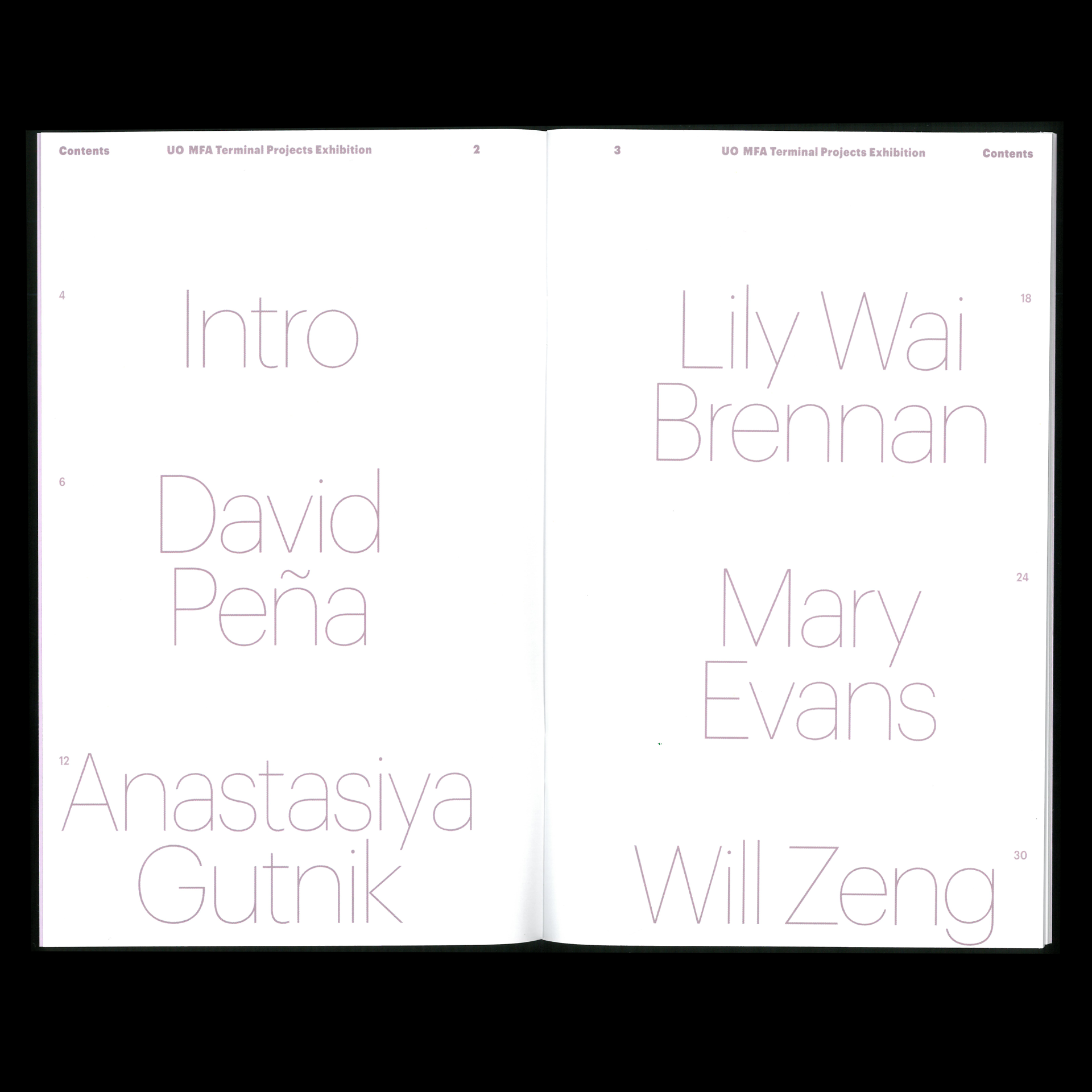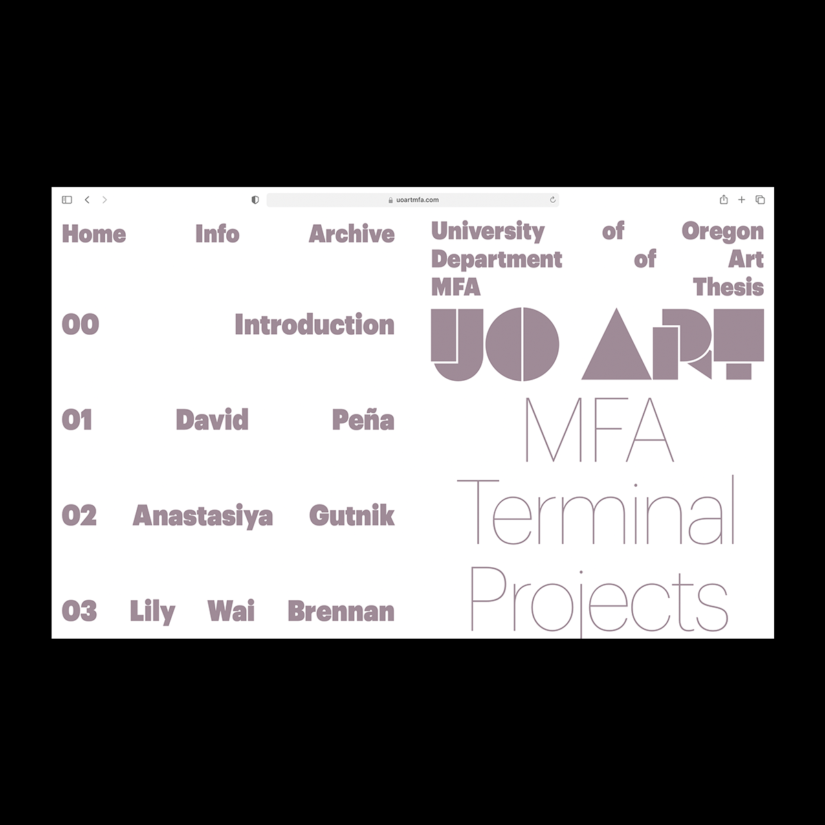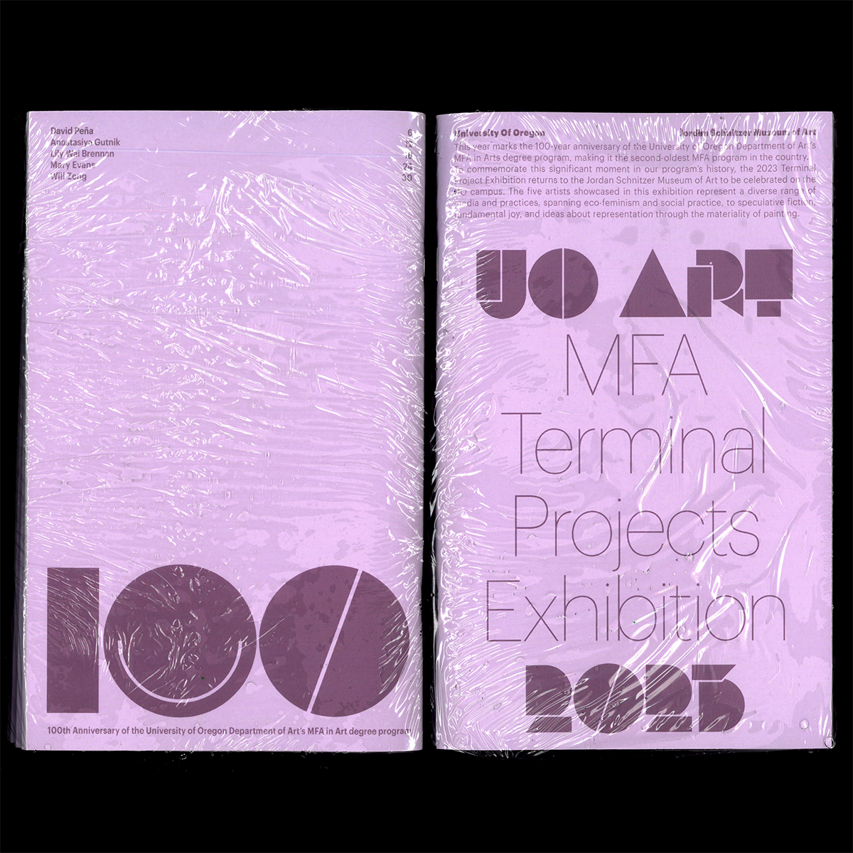 The booklet and website for the University of Oregon Department of Art’s 2023 MFA Terminal Projects Exhibition are designed by creative studio FISK, using Tifo Palermo by Romain Tronchin and Graphik by Christian Schwartz.