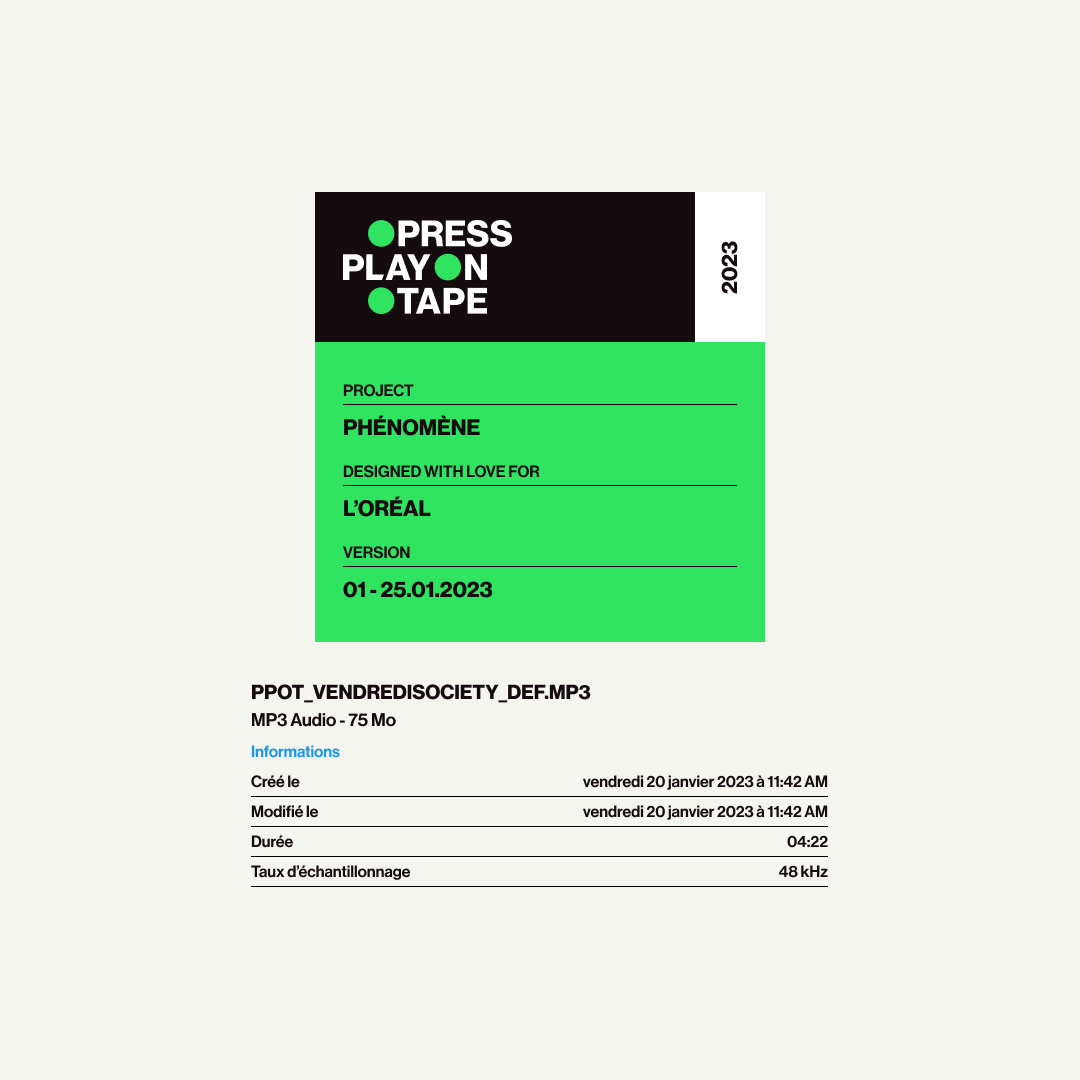 Press Play On Tape is a multidisciplinary sound studio based in Paris operating at the crossroads of sound design and composition. It was founded a few years ago by Loïc Bénart, known to some as a friend, to others as a dad, and to most fellows as “the sound guy”.