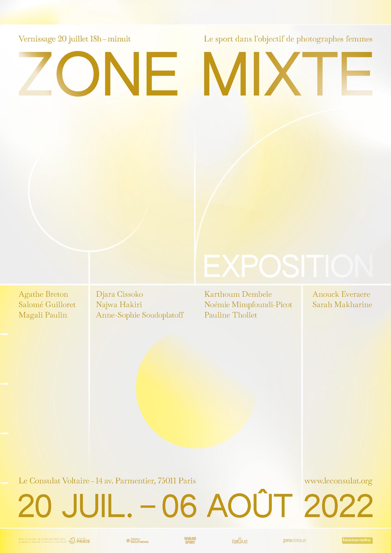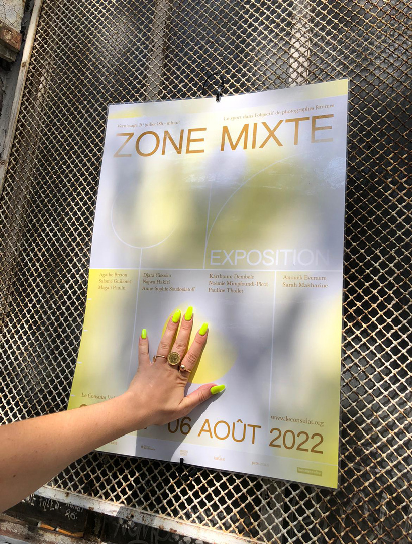 Zone Mixte. Le sport dans l’objectif de photographes femmes features the work of eleven women with a professional approach to photography. It took place at Le Consulat Voltaire in Paris, and we were commissioned to create both the event poster and the exhibition catalogue.