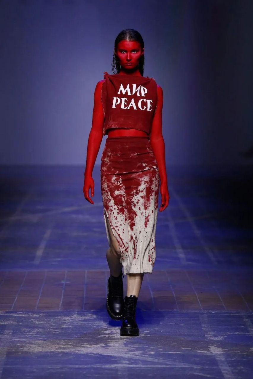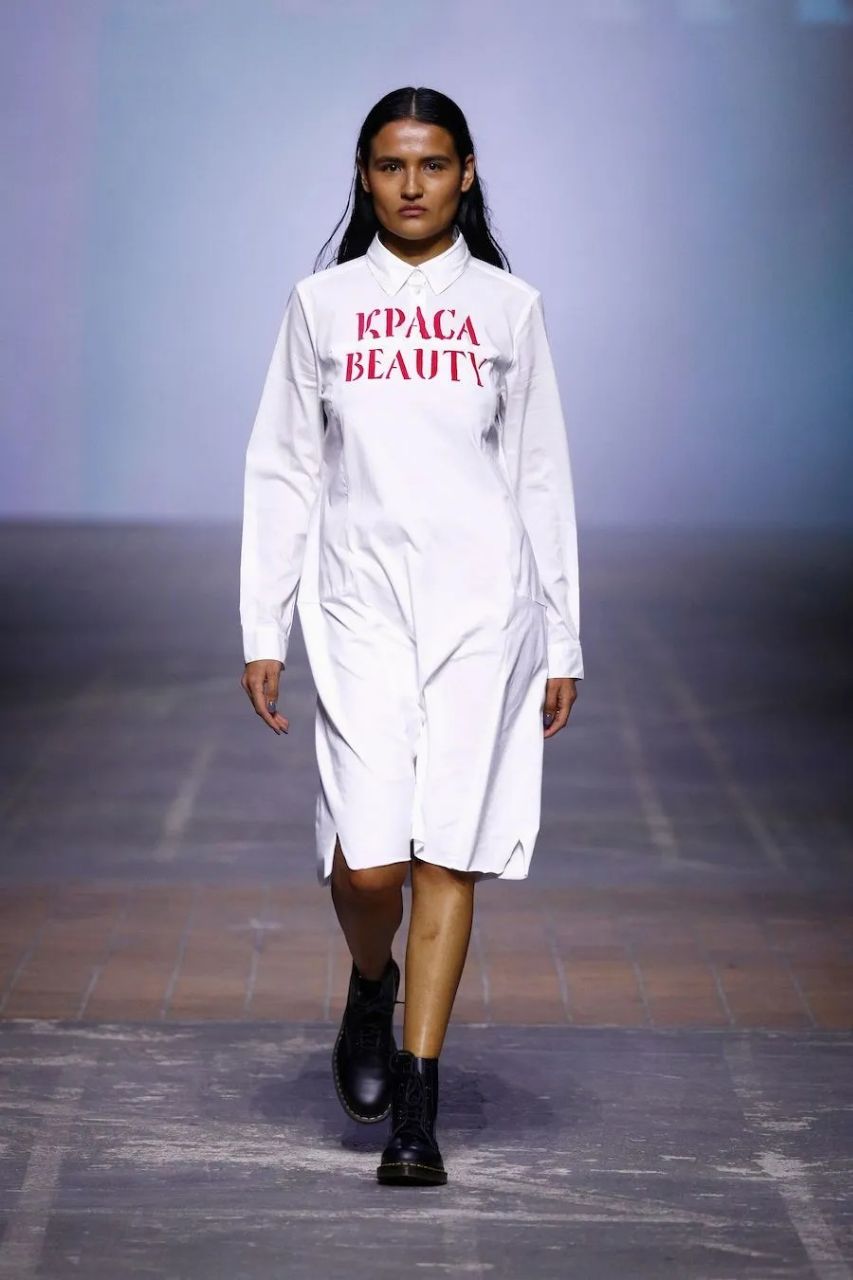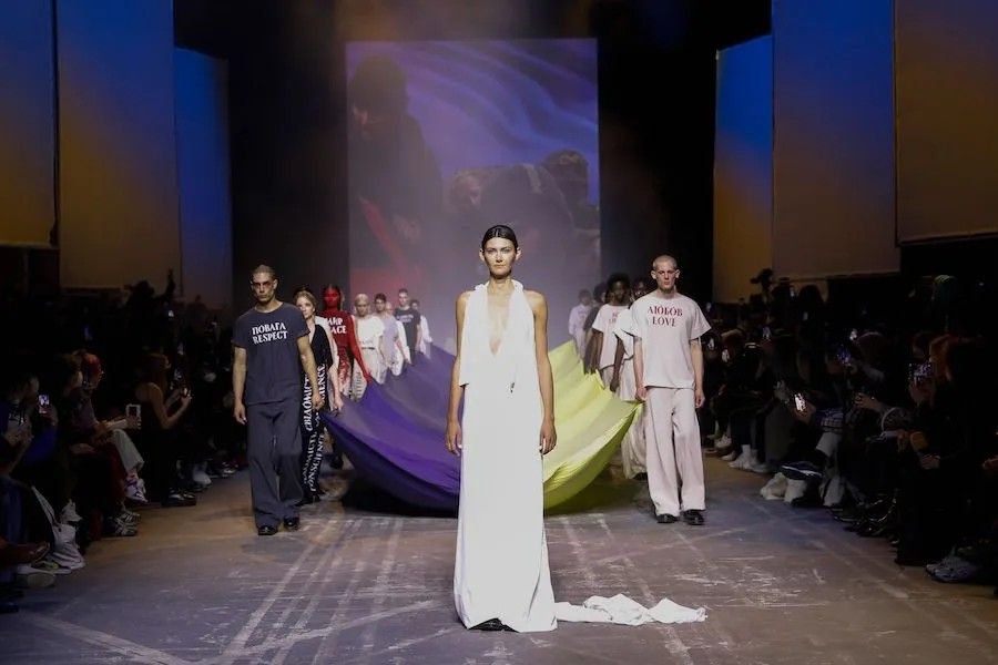 The show concluded with a model in a white dress carrying the Ukrainian flag during the joint exit of the models.